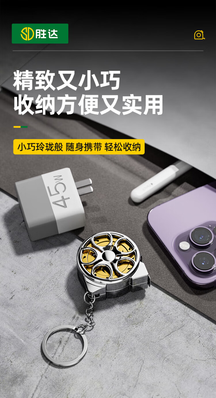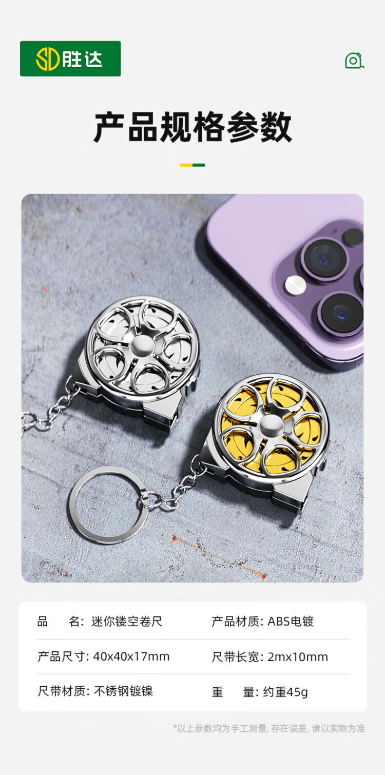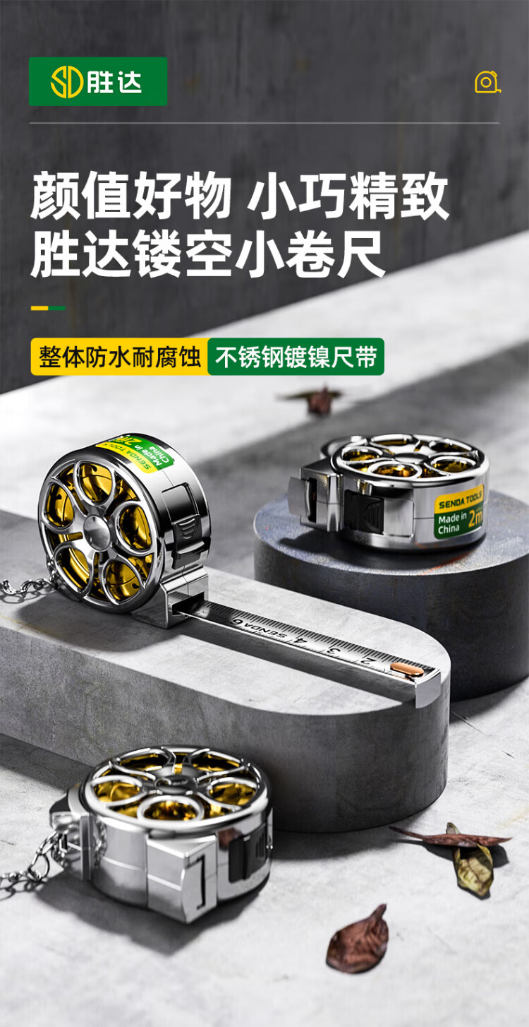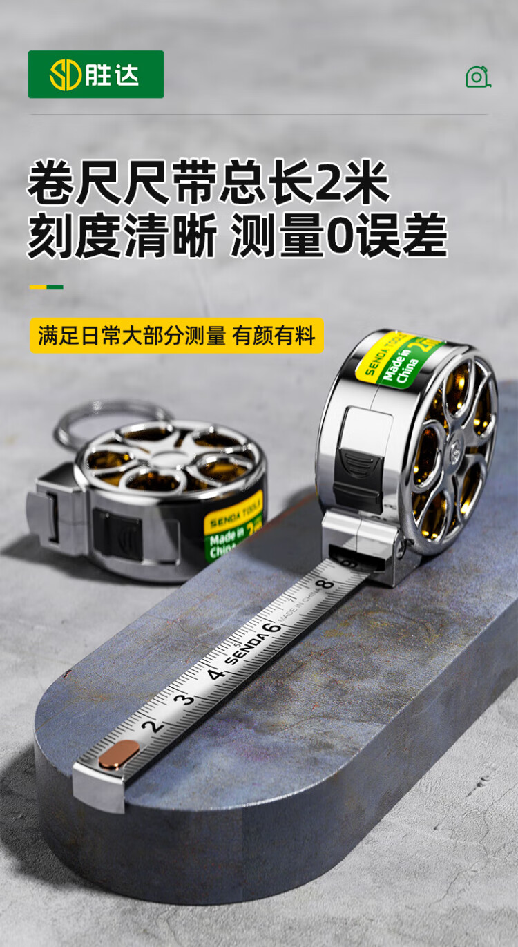Shengda mini small tape measure 2 meters small tape measure hollow steel tape measure high precision household keychain portable