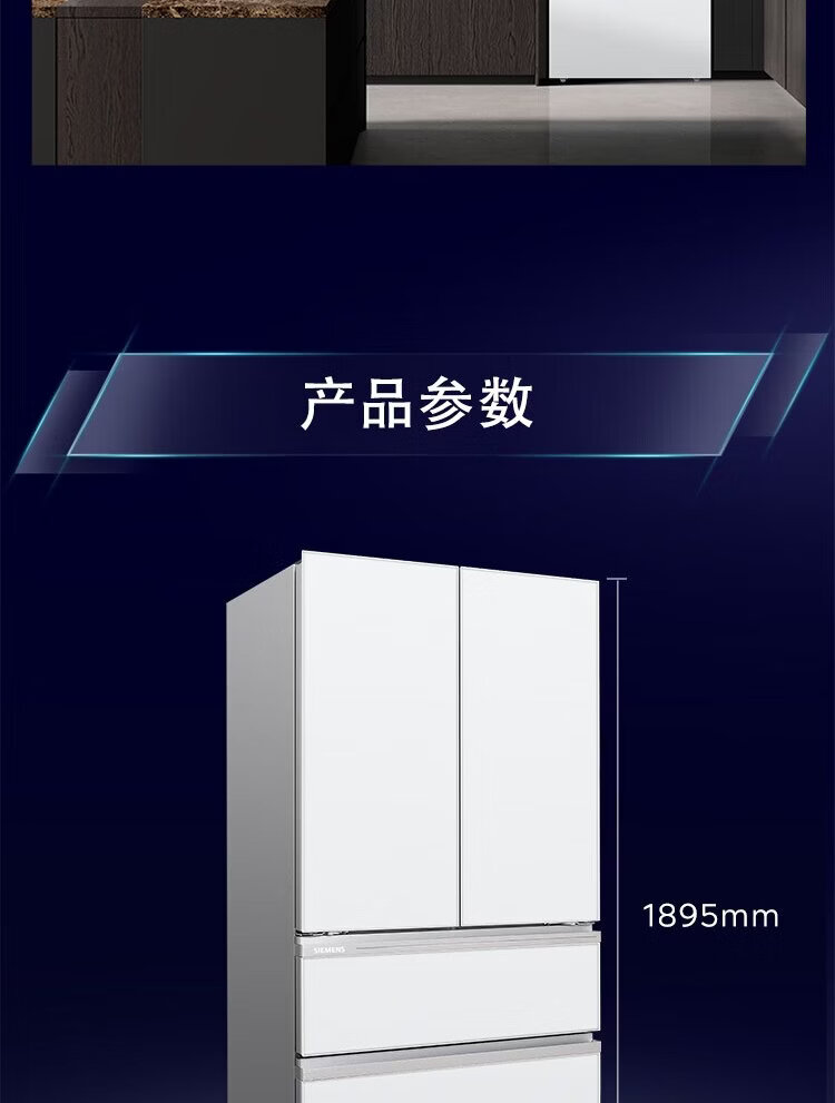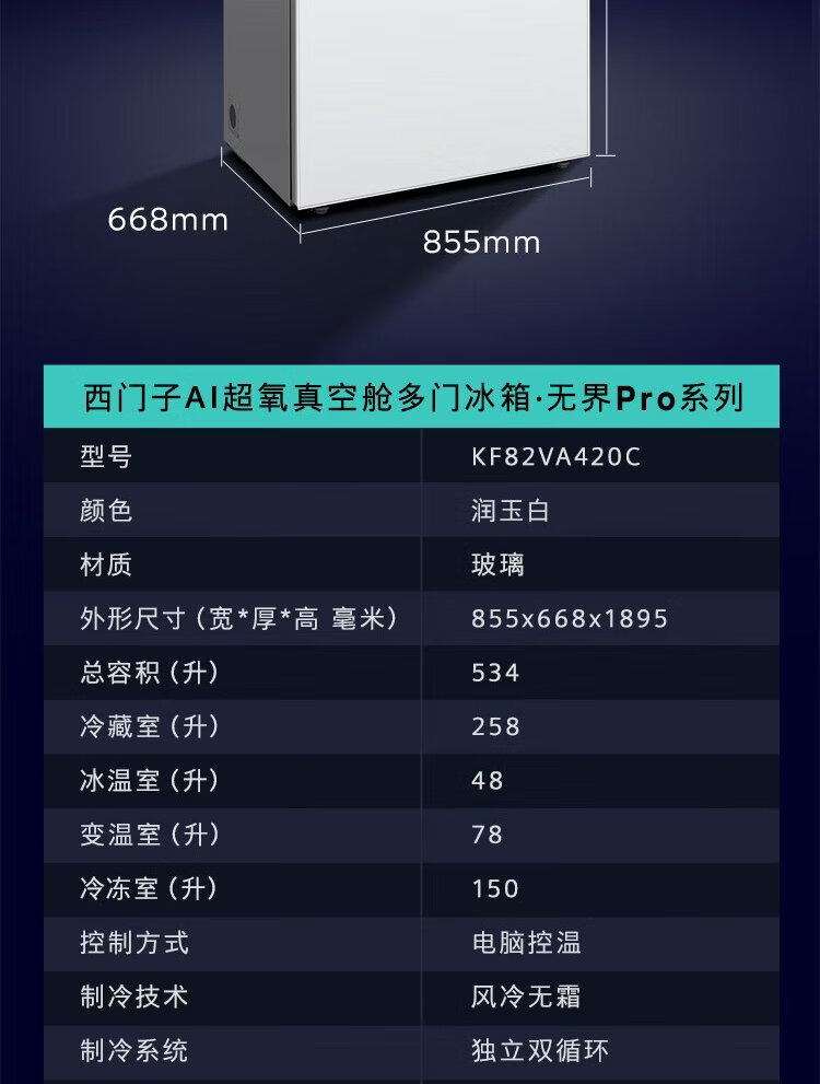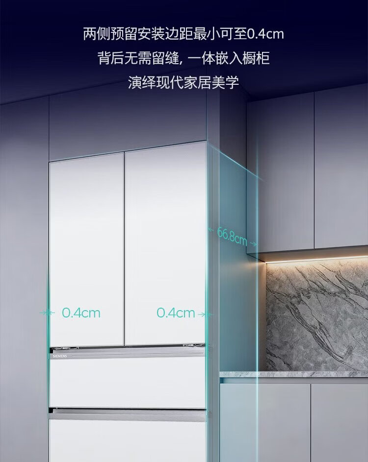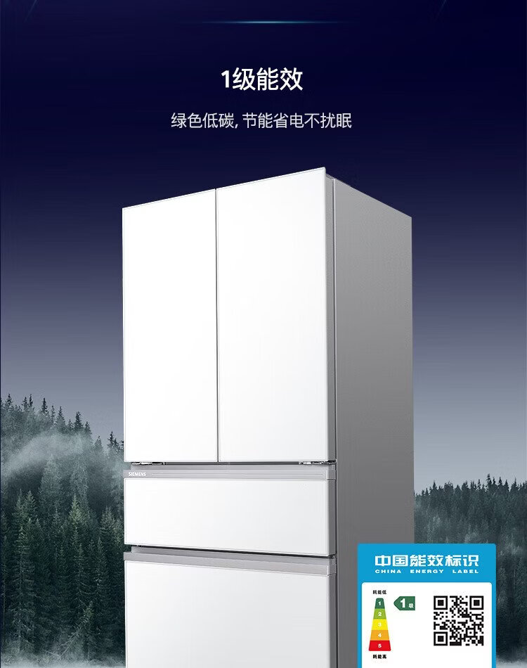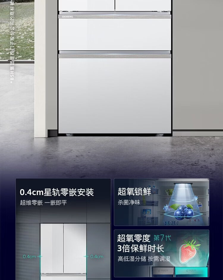 Siemens (SIEMENS) Unbounded Pro534L Refrigerador multipuerta estilo francés, súper cámara cero de oxígeno, sistema dual de doble circulación, panel de vidrio antibacteriano platino, Runyu White KF82VA420C, subsidio nacional