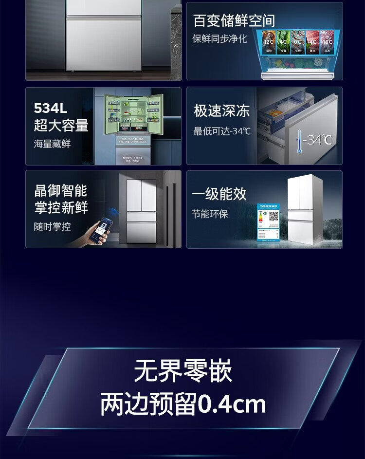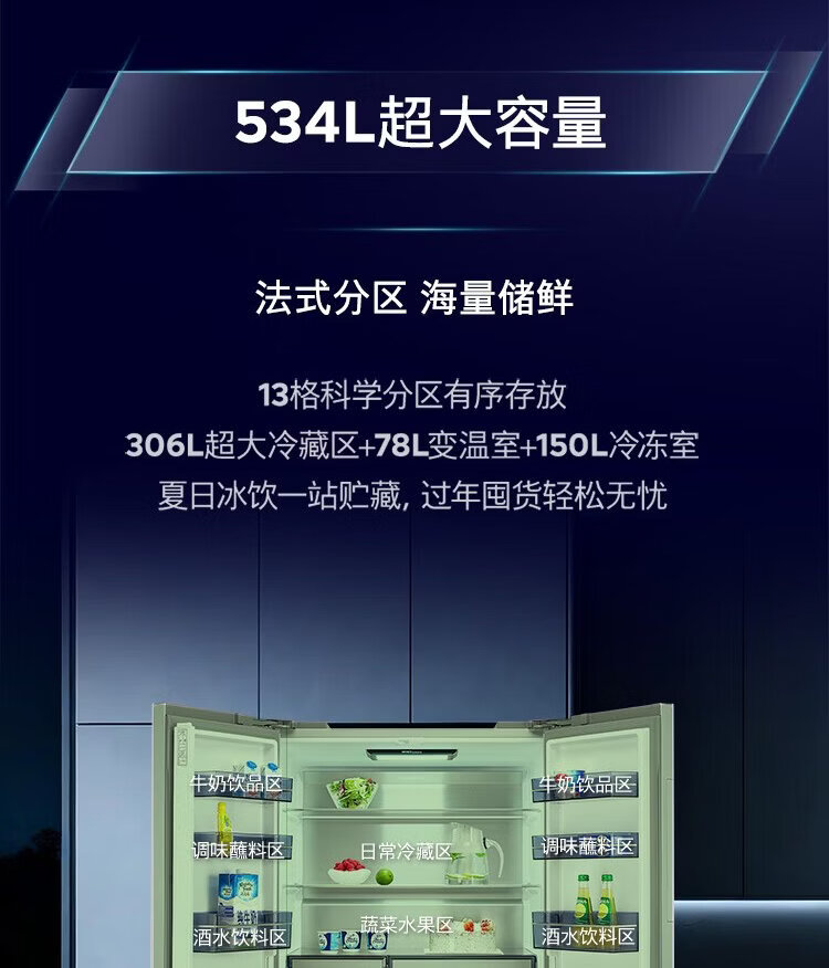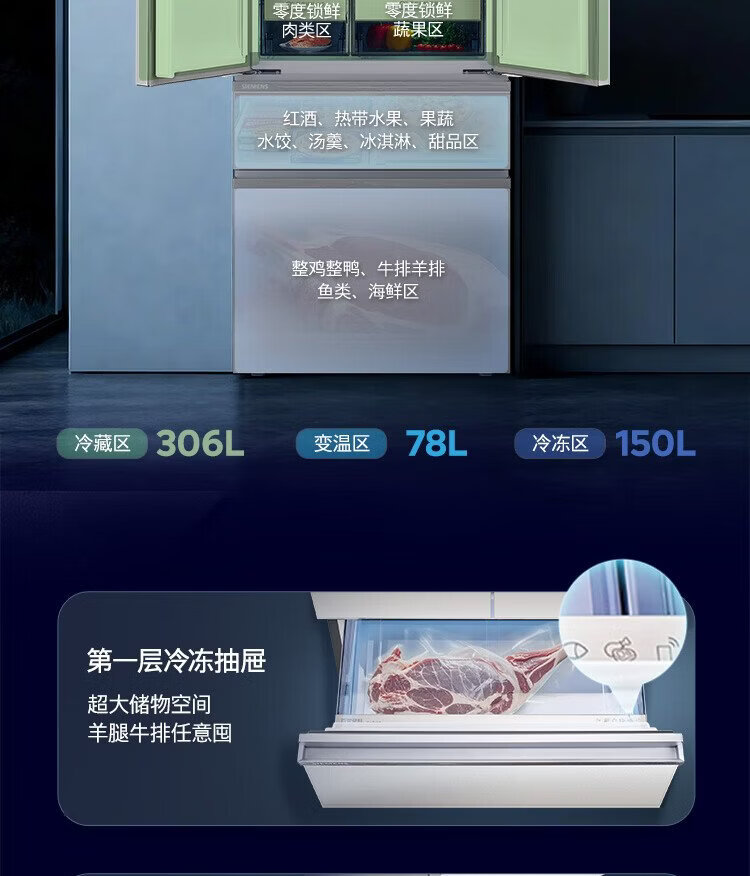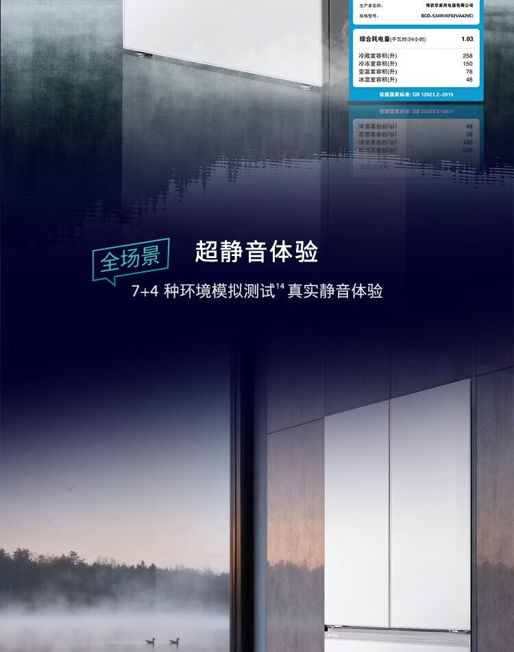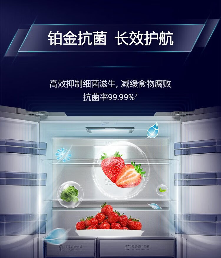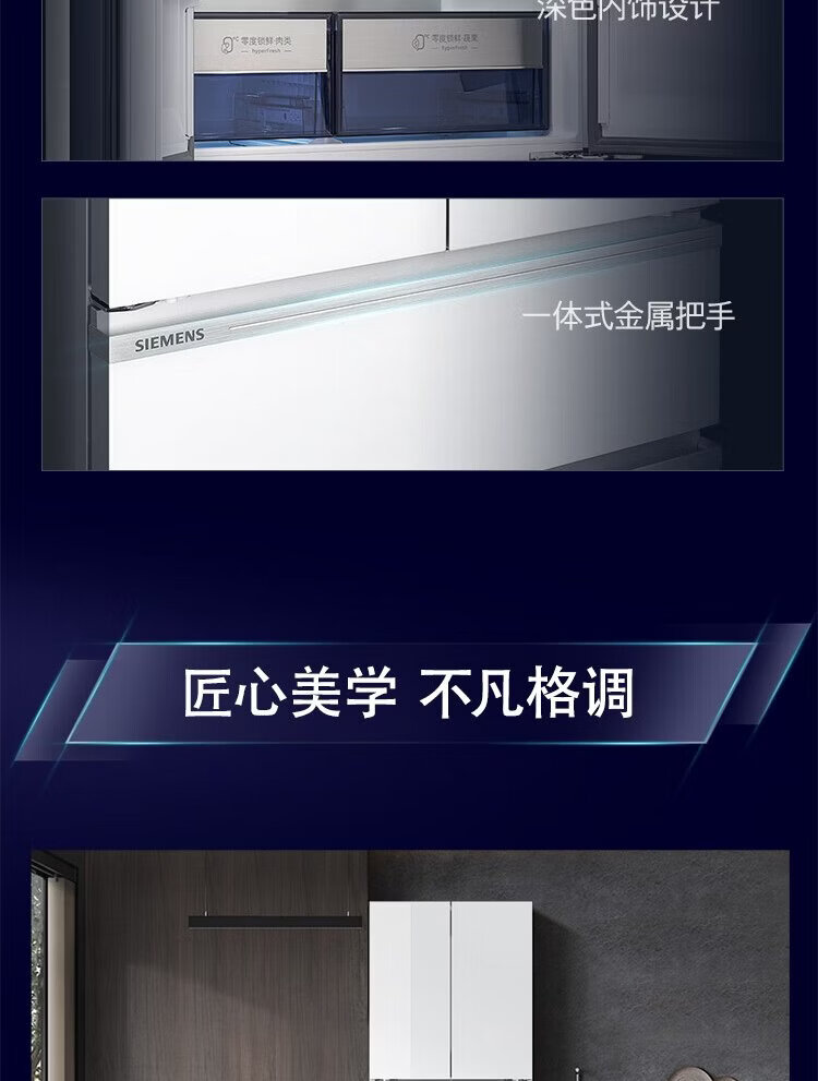 Siemens (SIEMENS) Unbounded Pro534L Refrigerador multipuerta estilo francés, súper cámara cero de oxígeno, sistema dual de doble circulación, panel de vidrio antibacteriano platino, Runyu White KF82VA420C, subsidio nacional