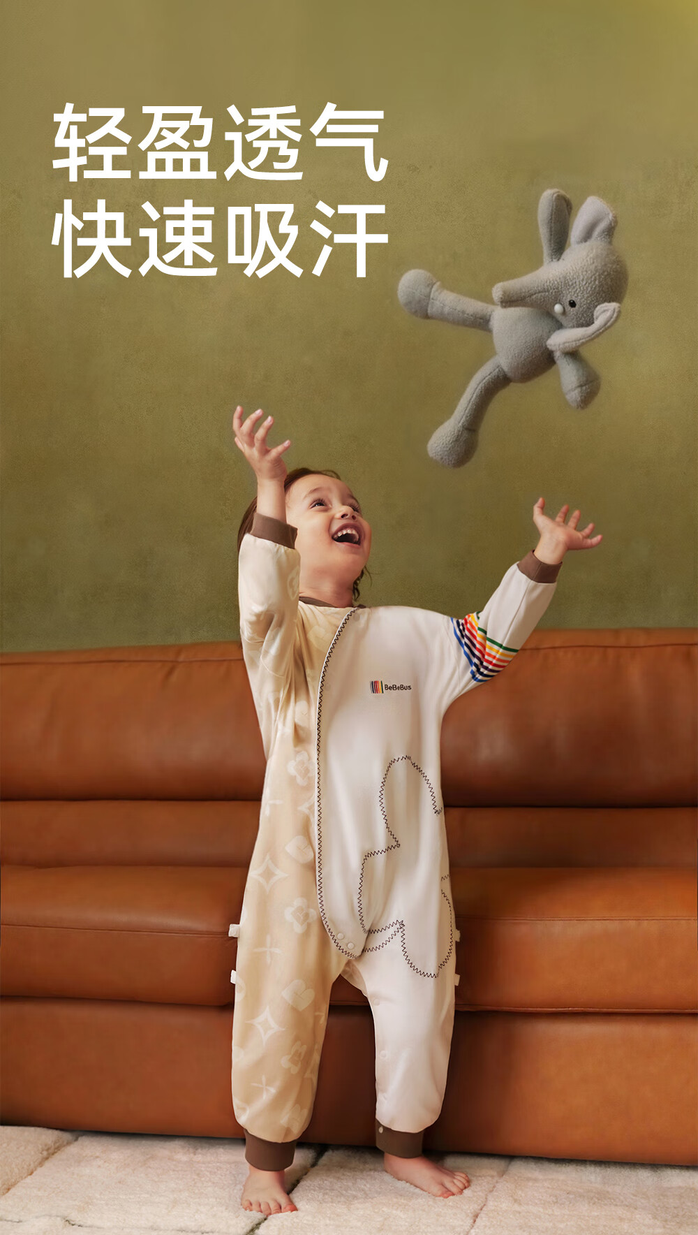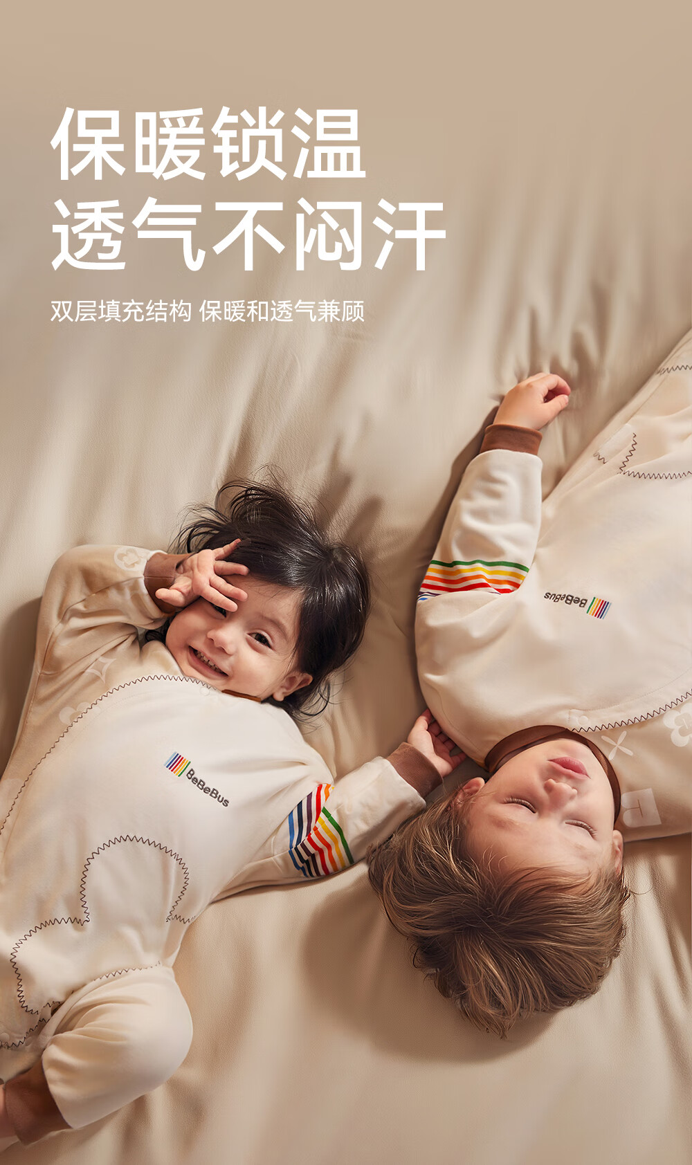 Bebebus baby sleeping bag spring, autumn and winter constant temperature children's pajamas universal warm baby pro split leg anti-kicking quilt double layer L size for all seasons