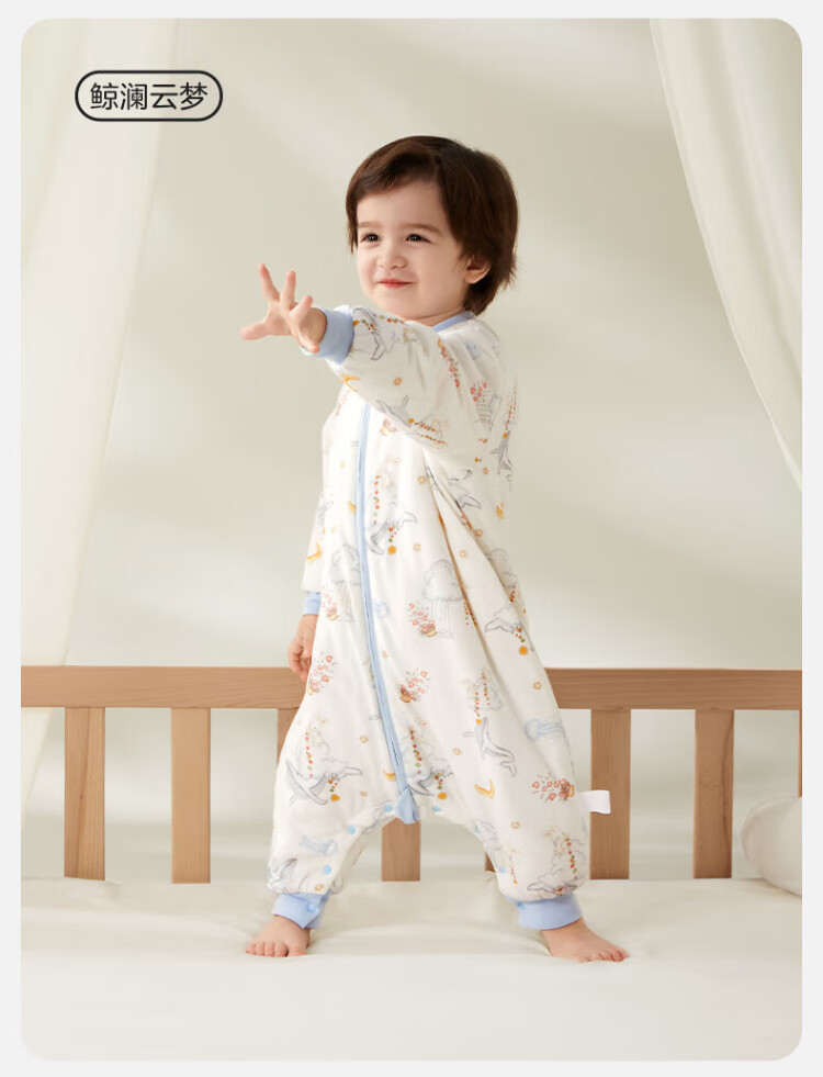 October Crystal Baby Split Leg Sleeping Bag Thin Padded Sleeping Bag Infant and Toddler Pure Cotton Constant Temperature Anti-jump and Anti-Kick Quilt Whale Lan Yunmeng 90