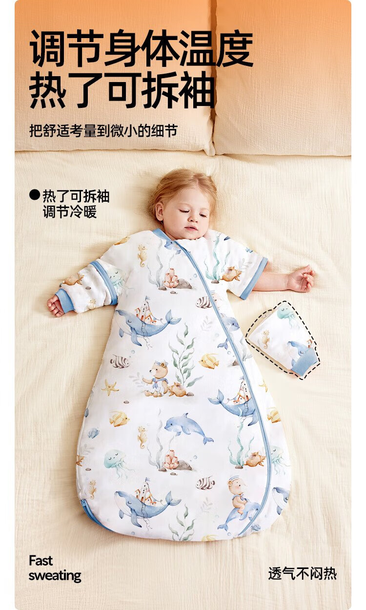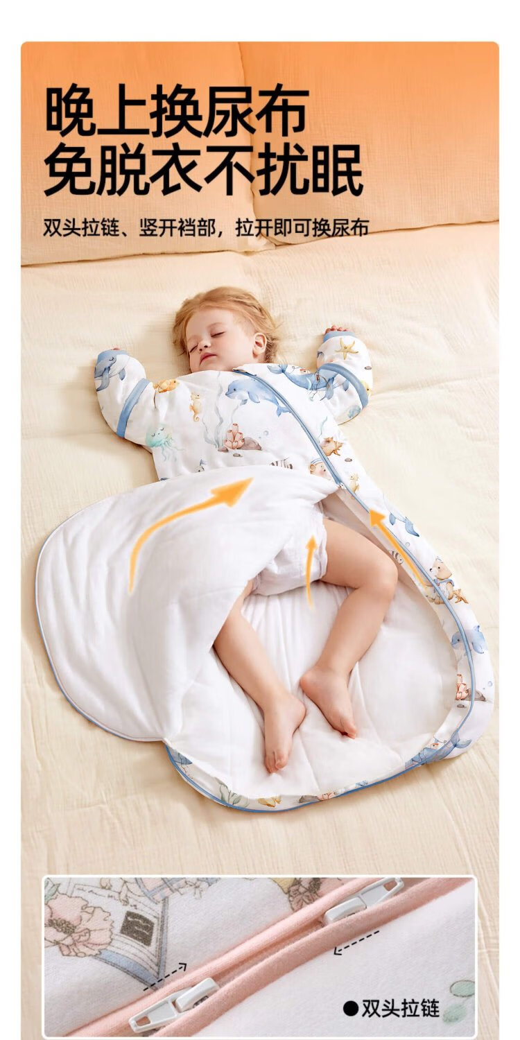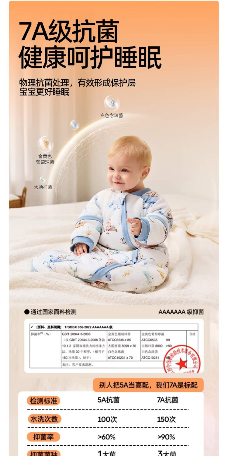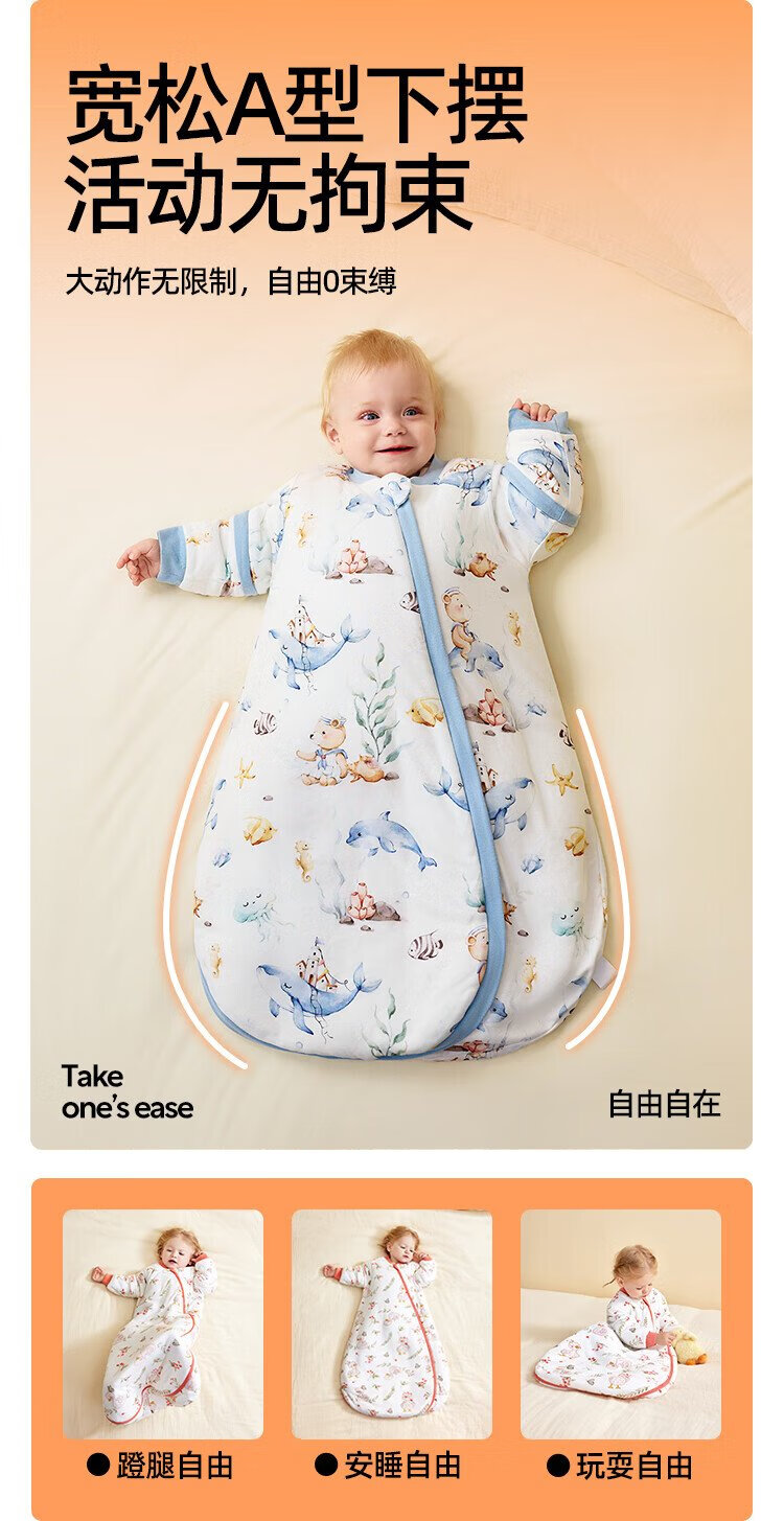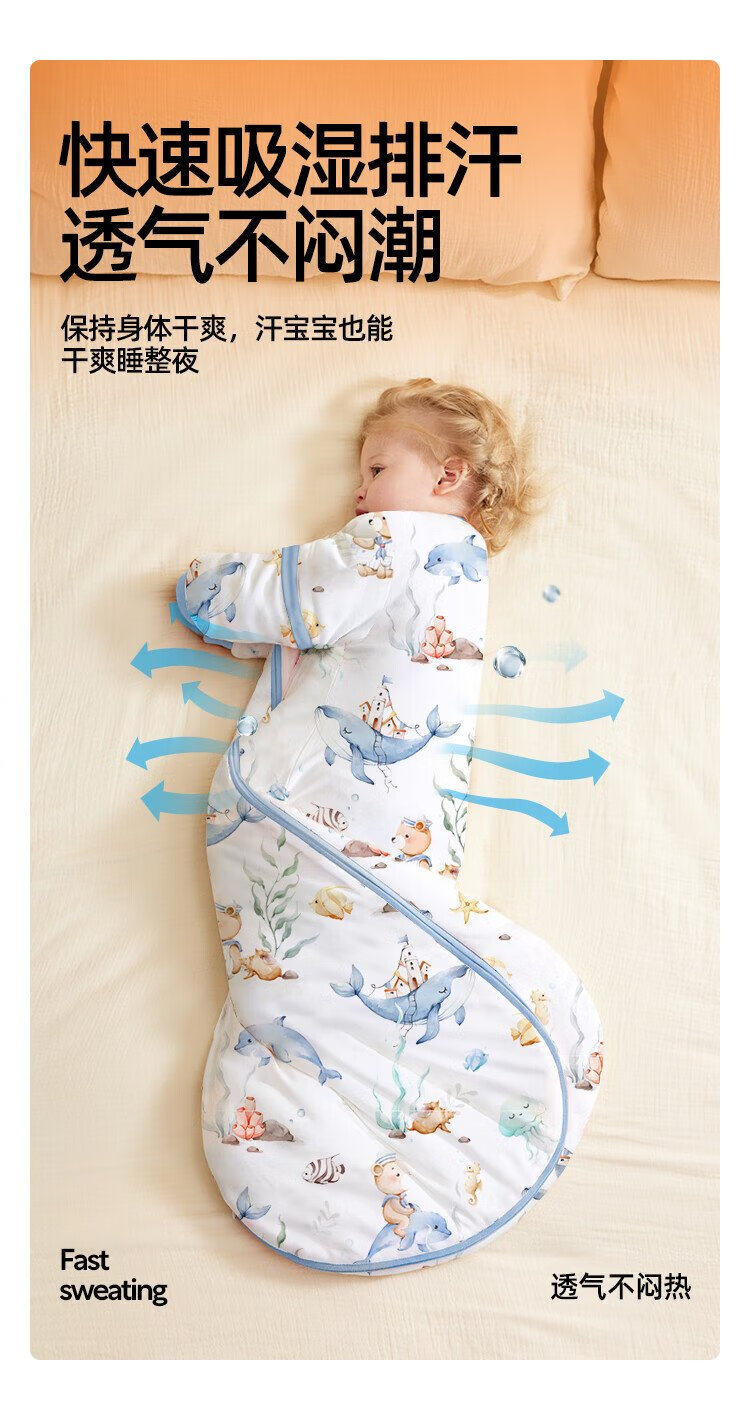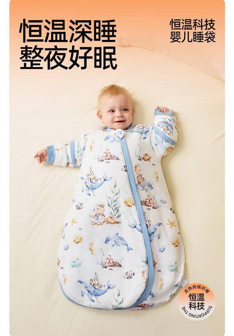 JOYNCLEON baby sleeping bag autumn and winter constant temperature children's baby all-in-one sleeping bag anti-kicking quilt thickened blue 80 JSD190289