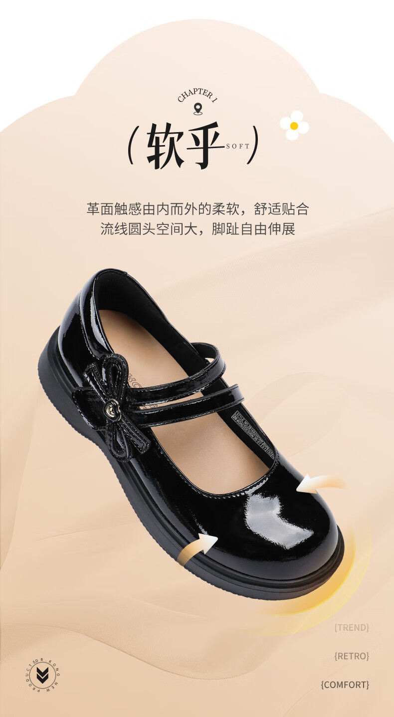 Dr. Jiang leather shoes autumn girls bright black versatile princess etiquette shoes children's shoes 2B16A3107AW black size 35
