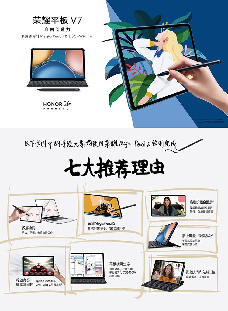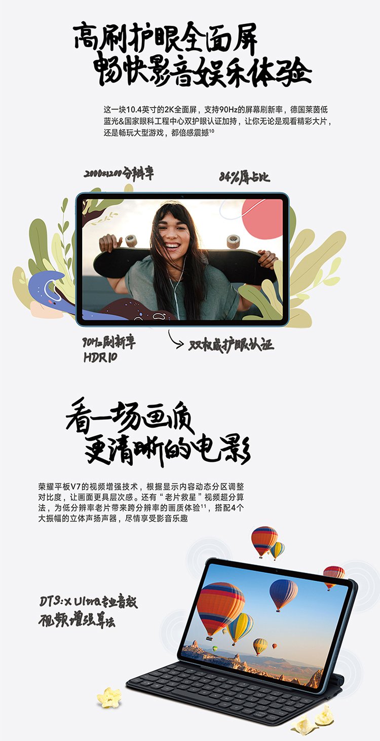 99% new Honor Tablet V7 10.4-inch high-brush eye-protection full screen multi-screen collaborative card-insertable business entertainment learning tablet 6GB+128GB Dawn Blue 5G version