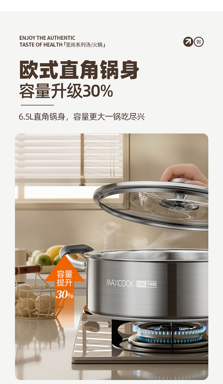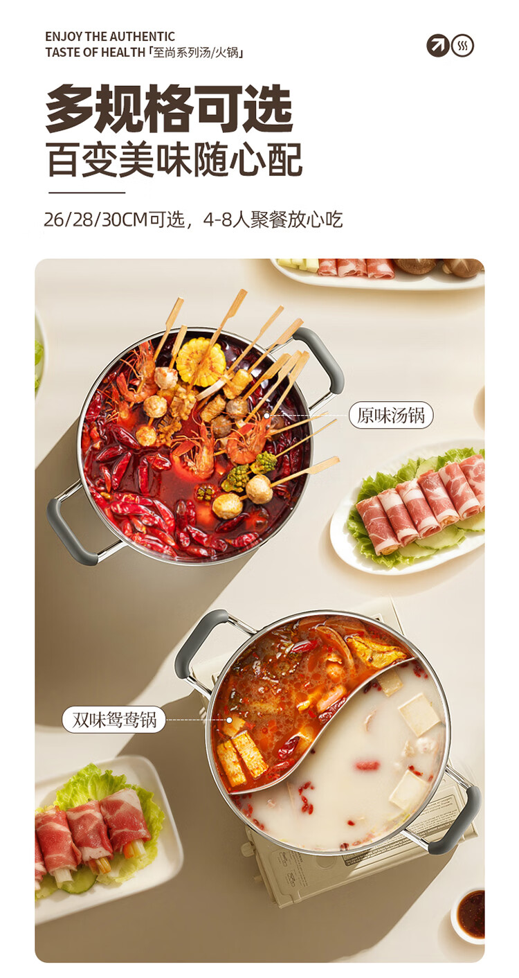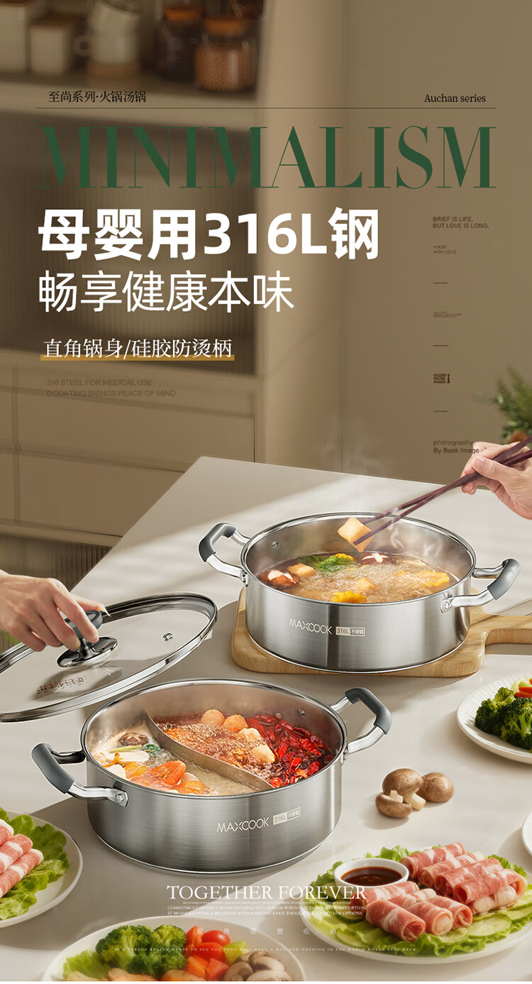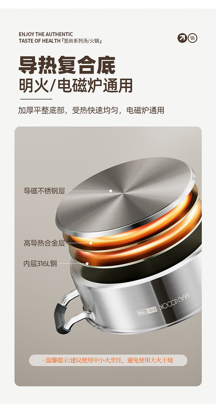 Maxcook 316L stainless steel mandarin duck hot pot 28cm soup pot hot pot with double bottom and lid gas induction cooker universal MCT8273