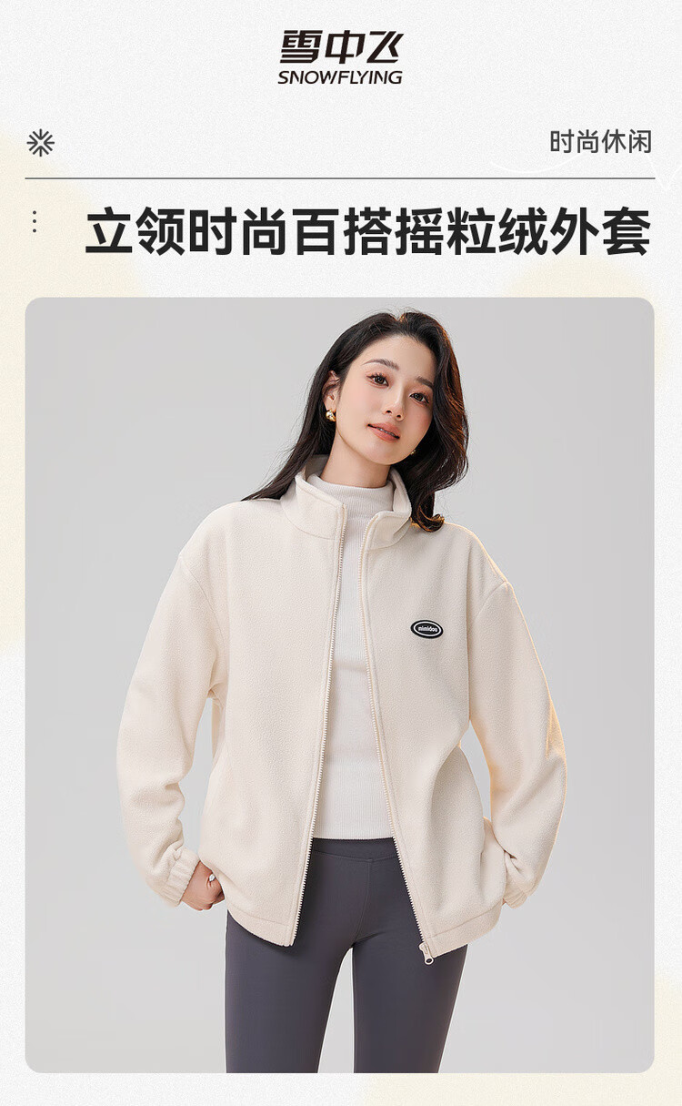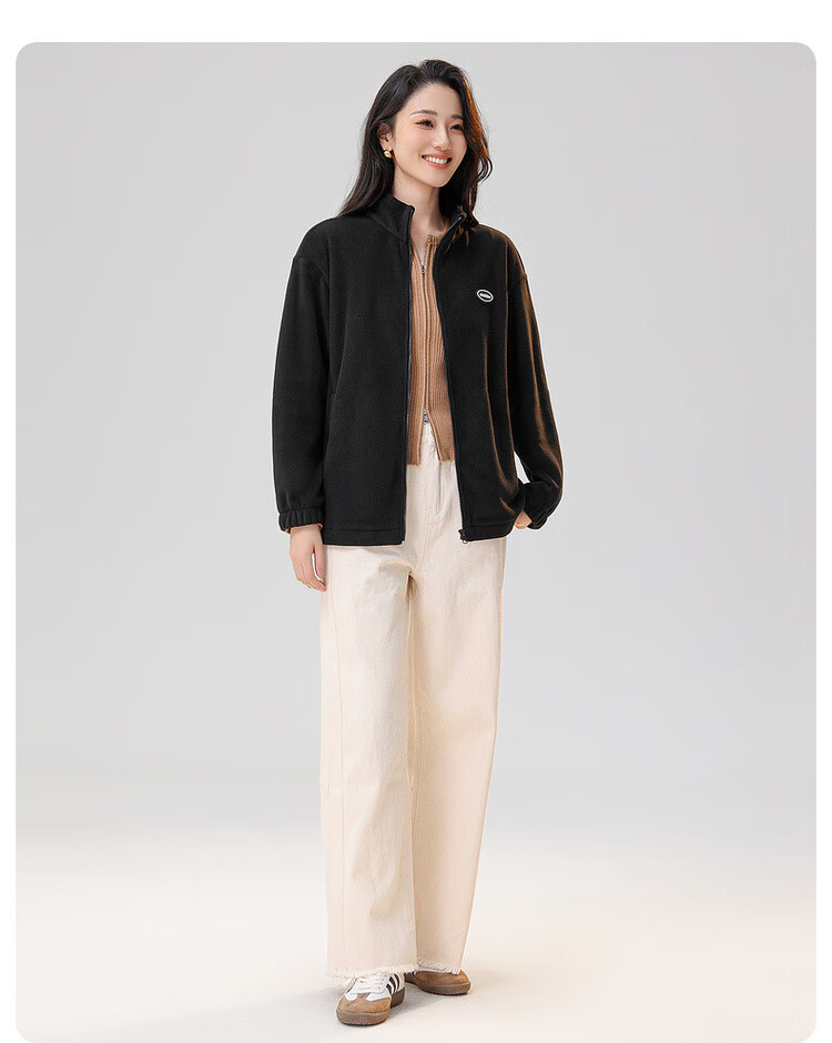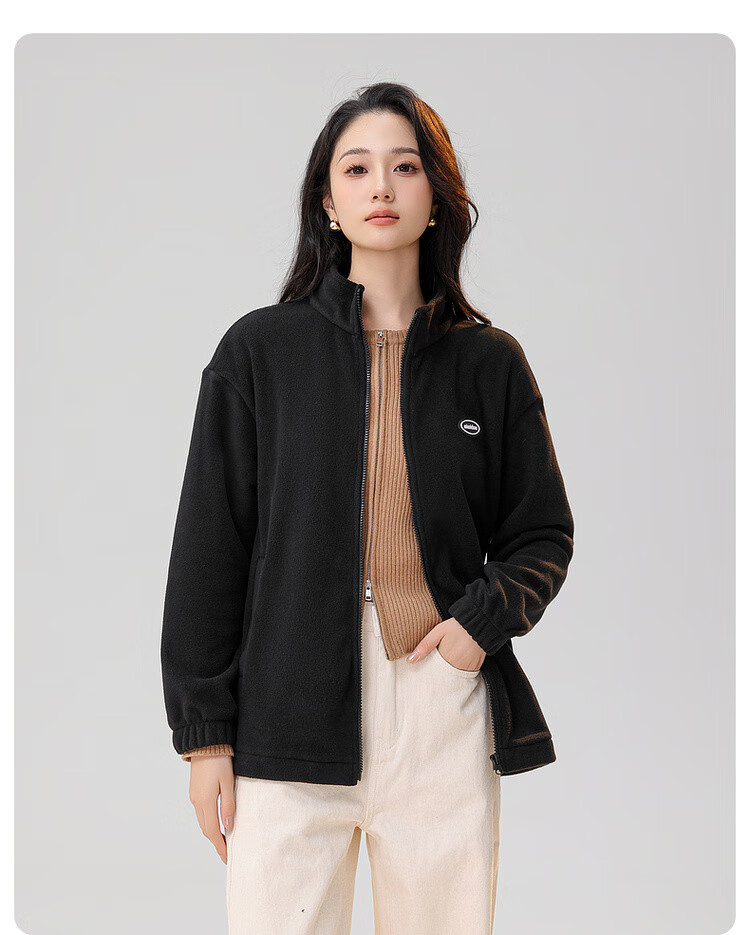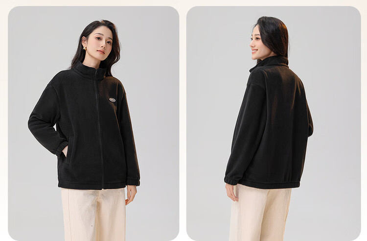 Snow Flying Jacket Women's Short Stand Collar Casual Wide Version 2025 Autumn and Winter Unisex Fleece Top Black XL