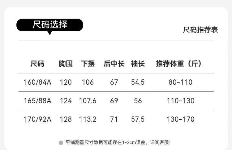 China (cm) 160-165/84-86 165-170 / 88-90 167-172 / 92-96 168-173 / 98-102 170-176 / 106-110