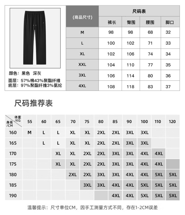 Outseam (cm) 99 cm 101.5 cm 104 cm 106.5 cm 109 cm