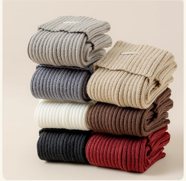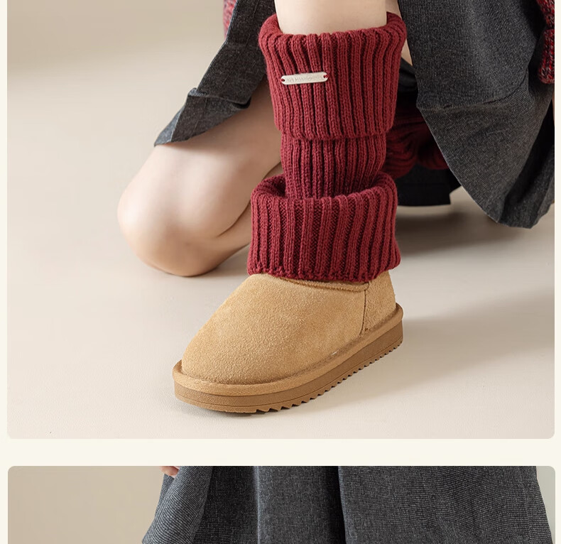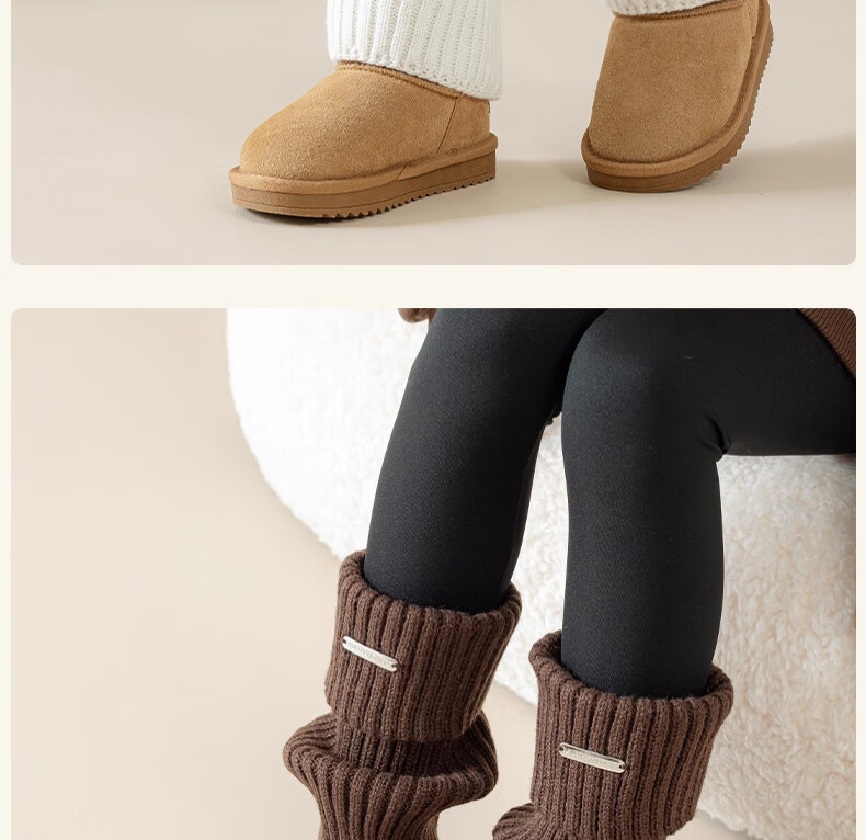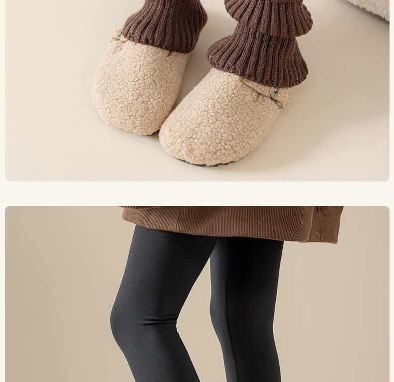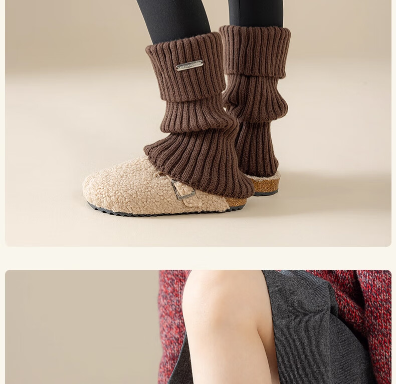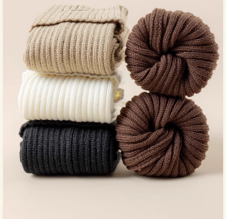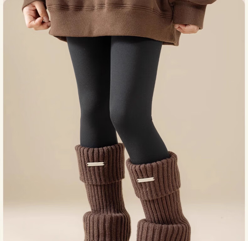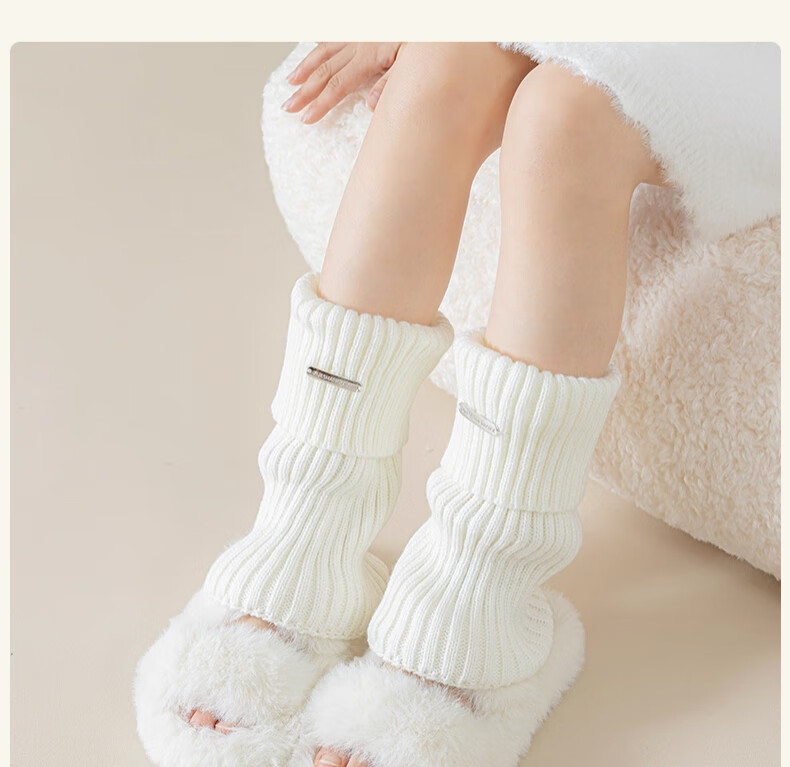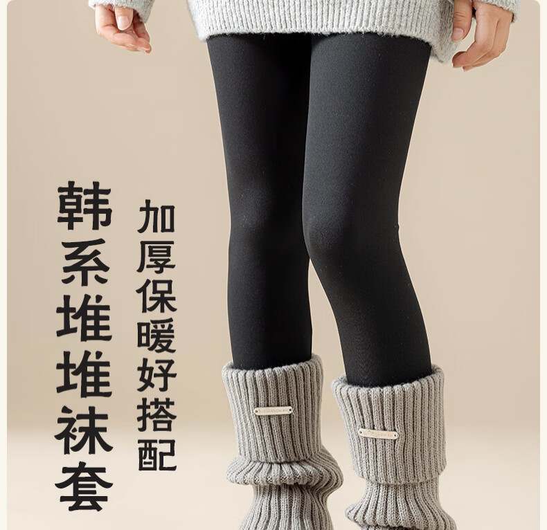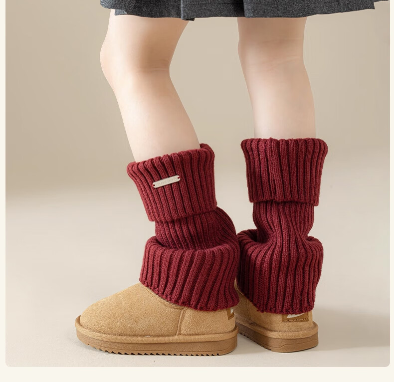 Yu Zhaolin children's socks for autumn and winter thickened and warm girls' pile socks Korean version solid color knitted calf covers for middle and large children
