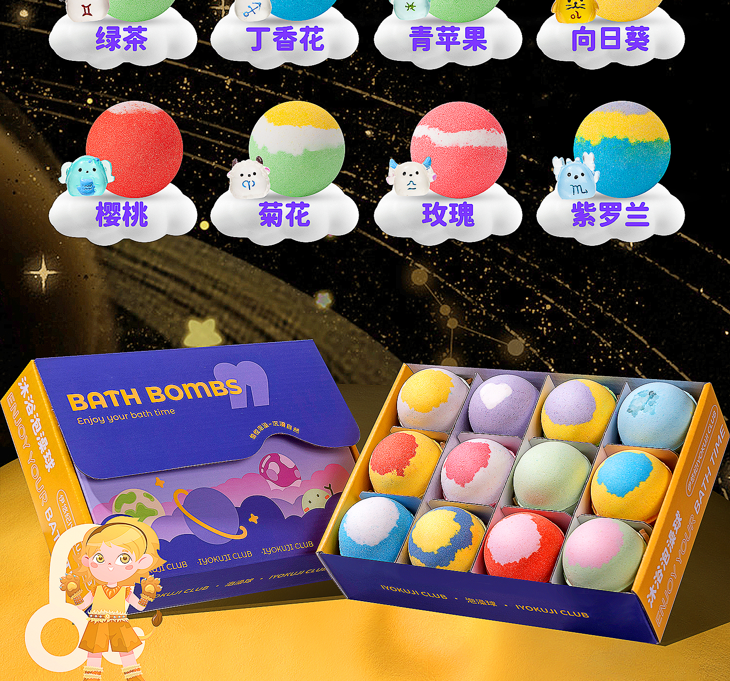 IYOKUJI CLUB bath ball children's bath toy bathtub bubble bath baby infant essential oil bath ball bath salt ball constellation series
