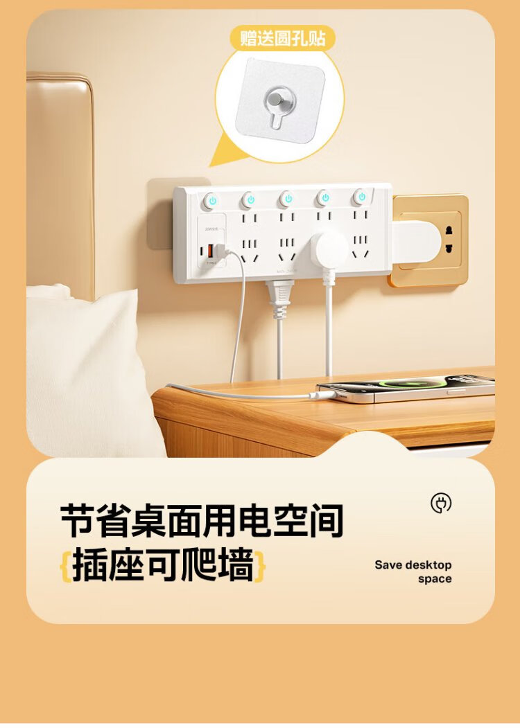 Sushi Helmo installation-free socket extender ultra-thin multi-functional two-way expansion socket converter/conversion plug/one-turn multi-socket/row plug 12-bit 2USB+Type-C
