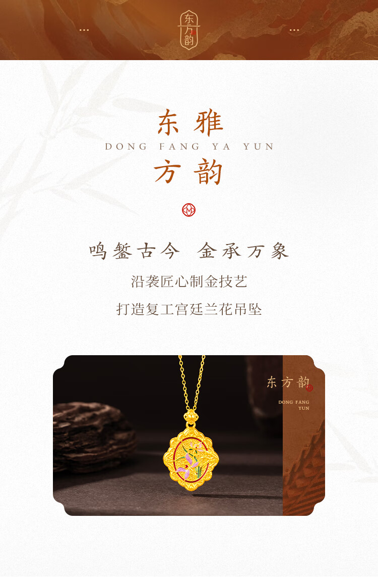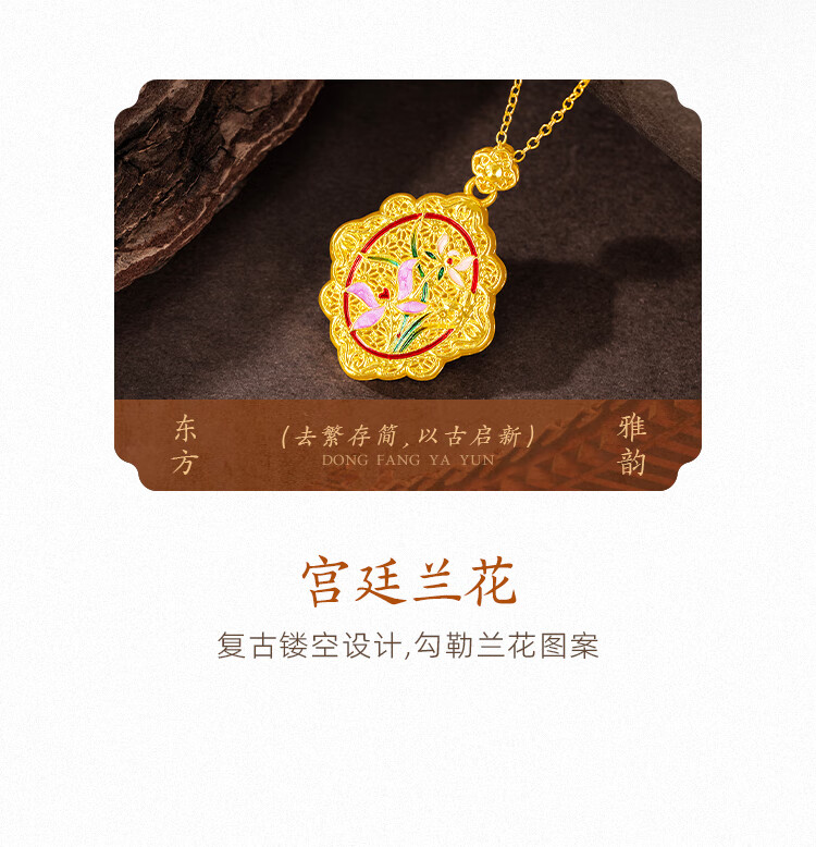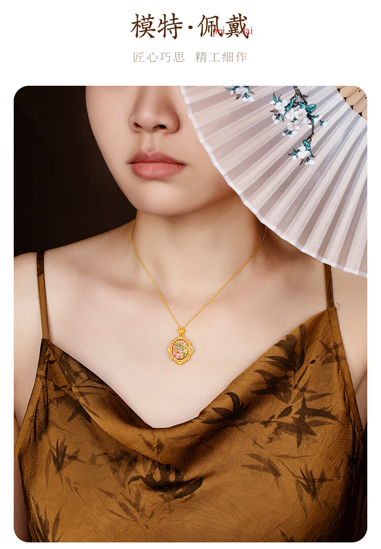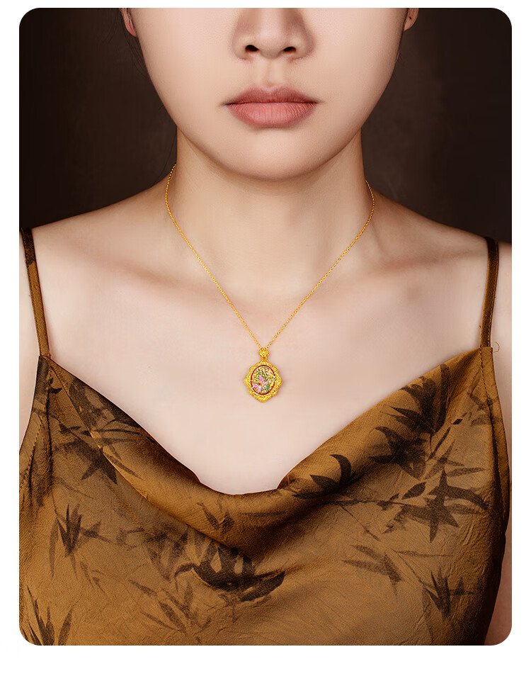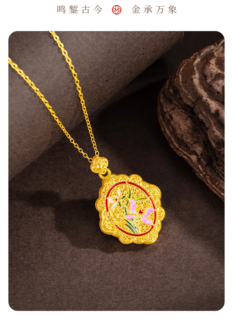 Mingzuan International 18K gold pendant for women au750 ancient charm orchid and field jade necklace enamel palace neck gift for girlfriend