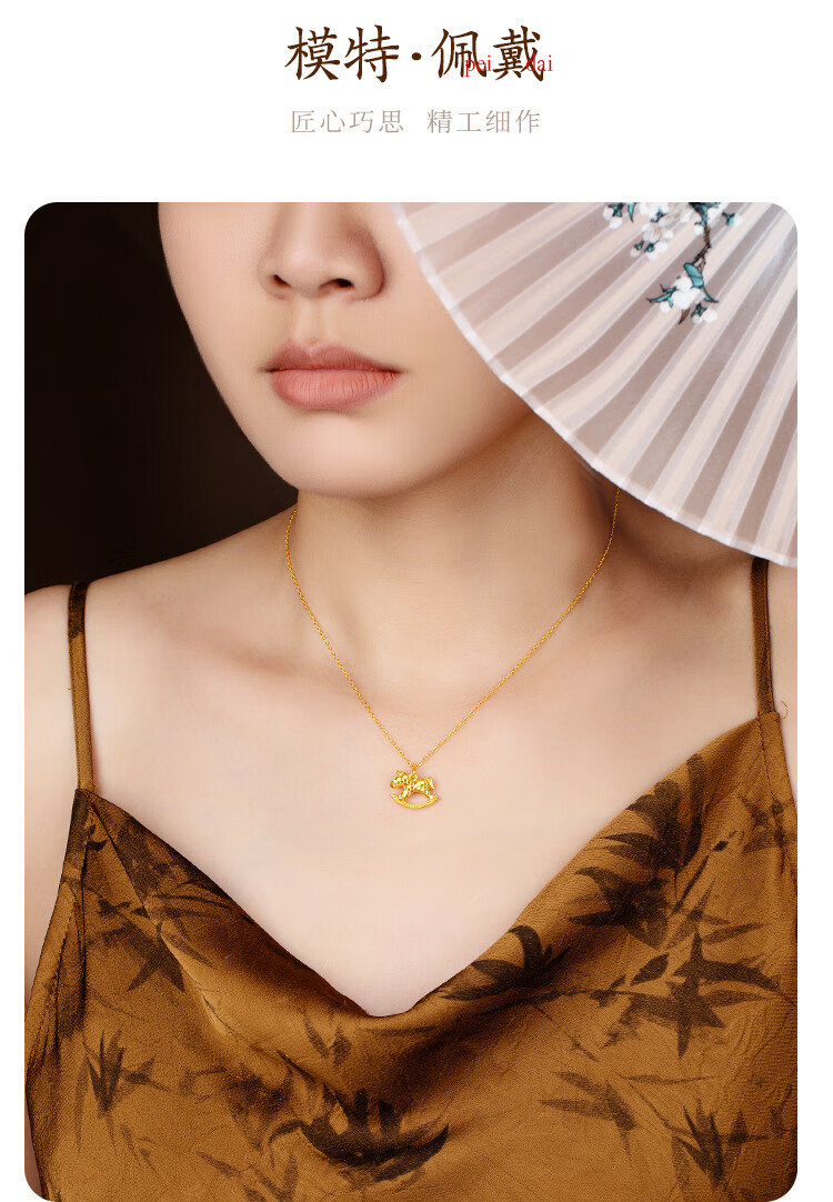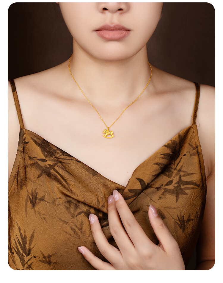 Mingzuan International Yellow 18K Gold Trojan Horse Pendant Women's au750 Fashion Simple Explosive Dragon Scale Necklace Birthday Gift for Girlfriend
