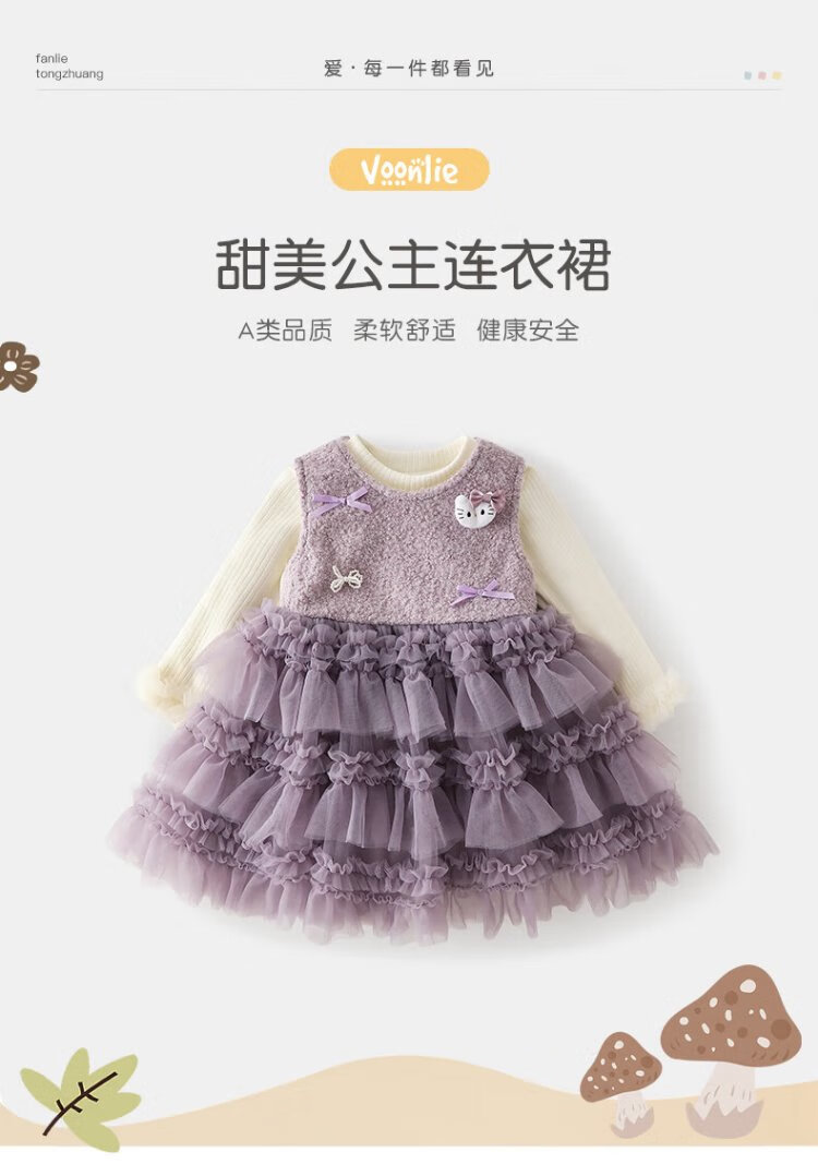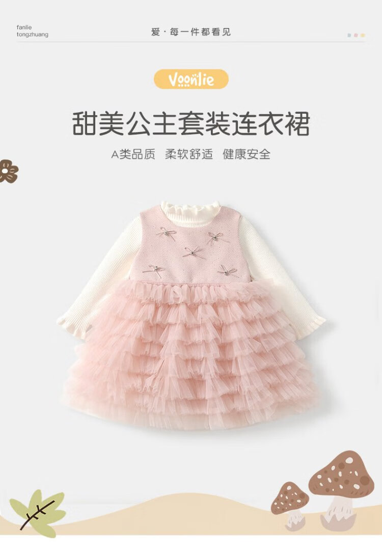 Fanhunting girls sweet style autumn dress 2025 new fashionable baby princess dress children's suit dress spring and autumn