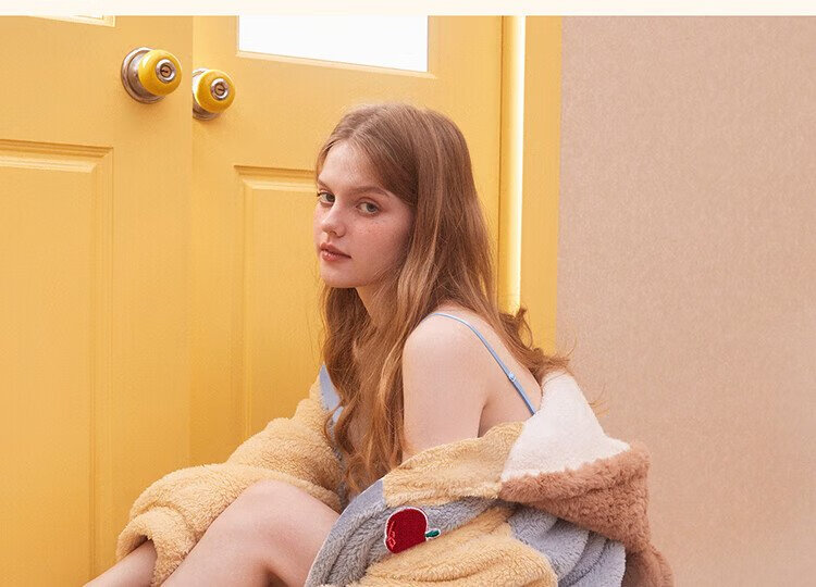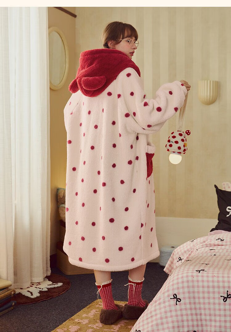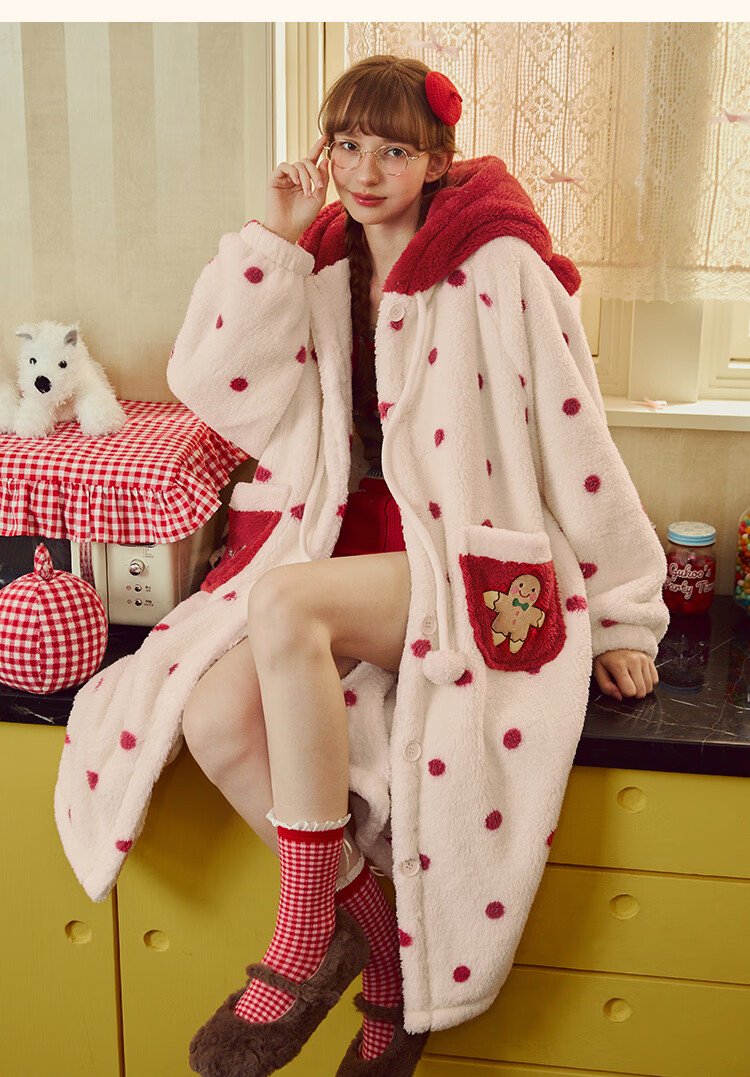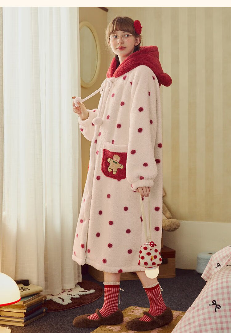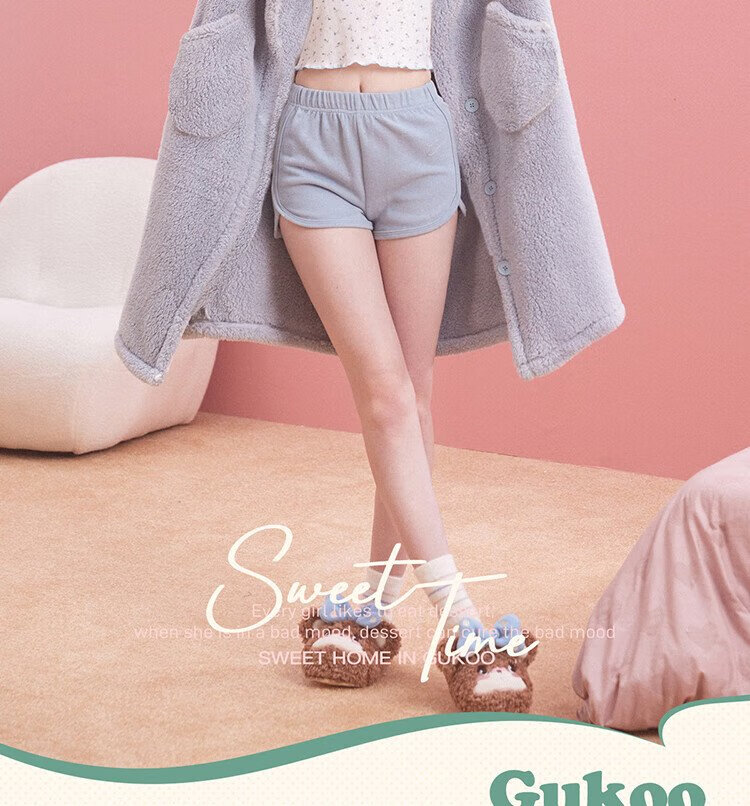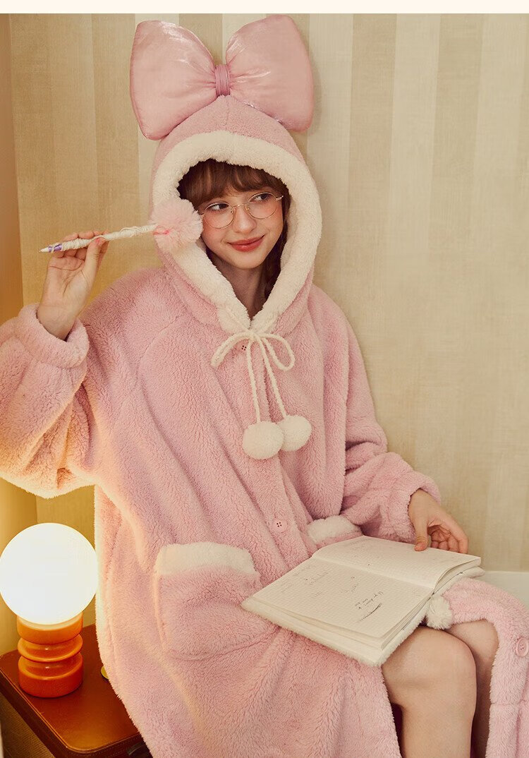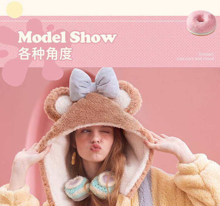 Gukoo Pajamas Women's Winter New Variety of Cute Women's Home Clothes Warm Hooded Cartoon Pajamas Custard M