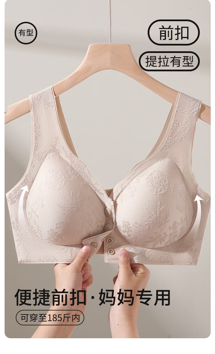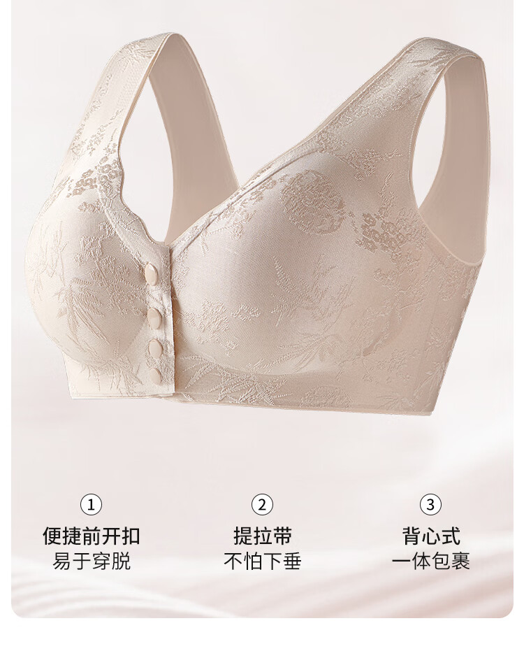 Langsha middle-aged and elderly mother's underwear women's front-opening buckle-free large-size vest-style bra with push-up to prevent sagging
