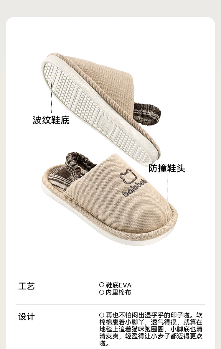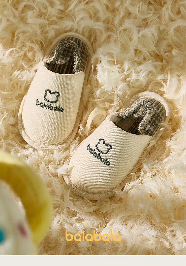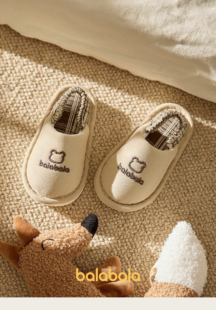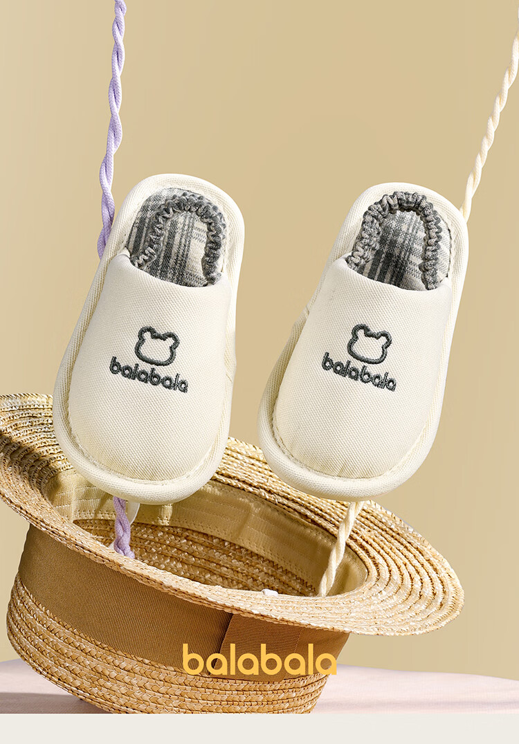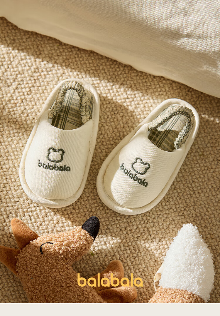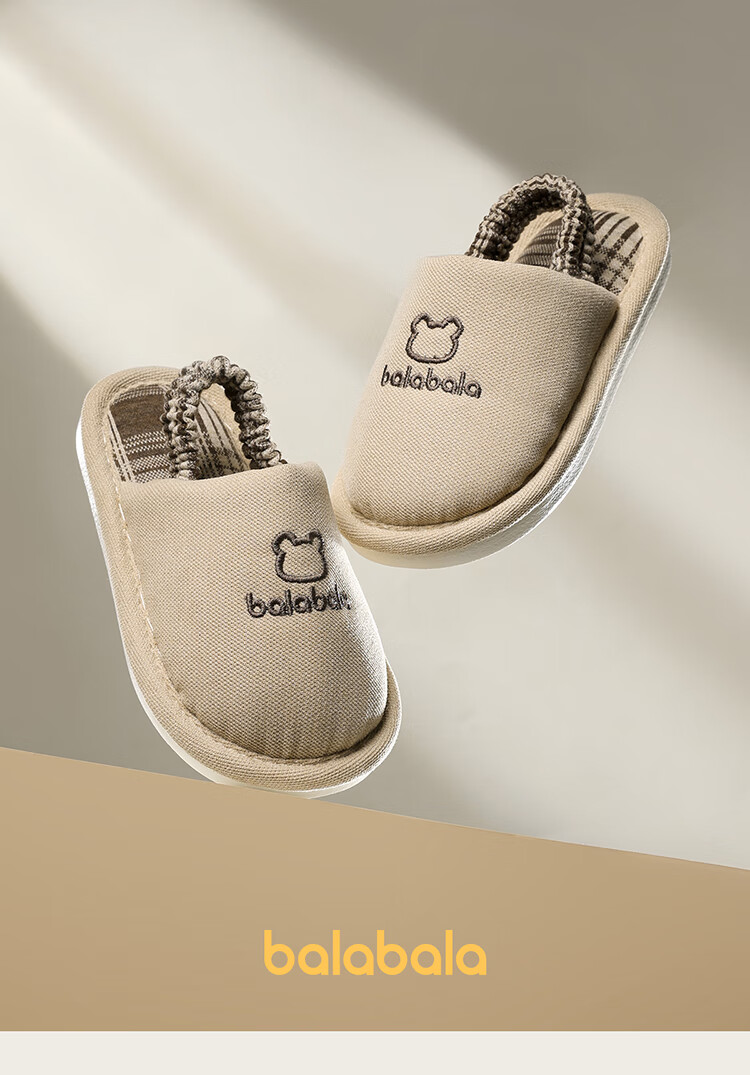 Balabala children's slippers spring and autumn boys and girls indoor home boys cotton and linen slippers four seasons breathable and lightweight baby hemp slippers