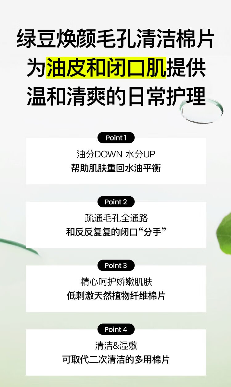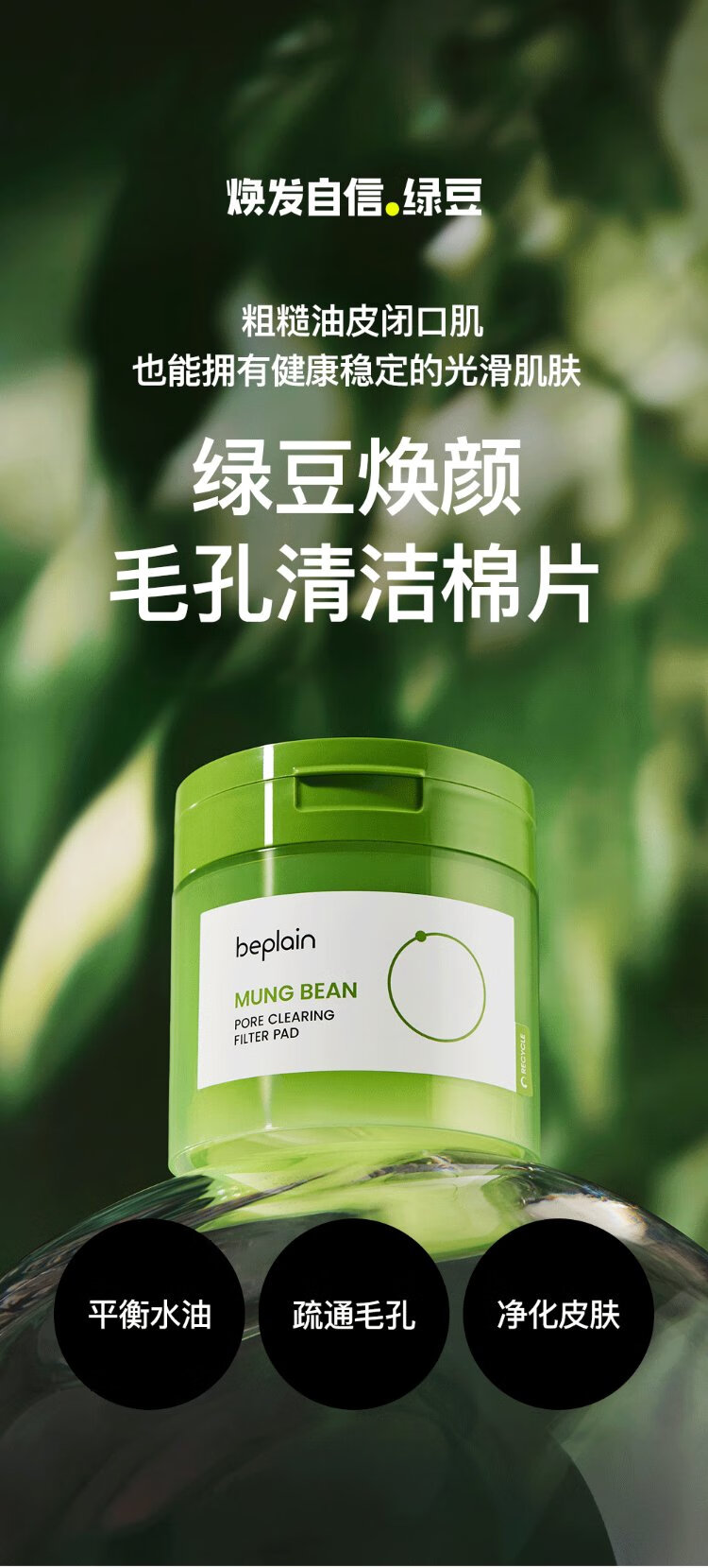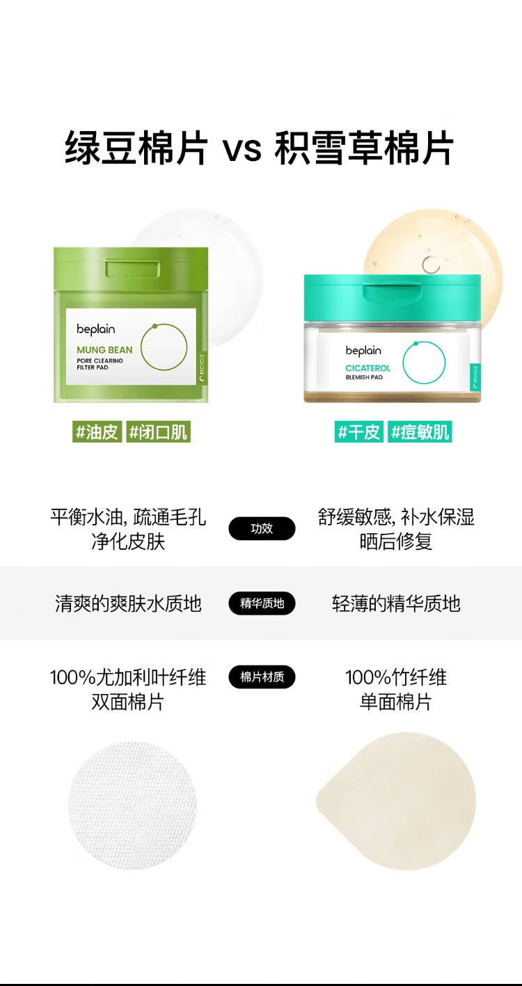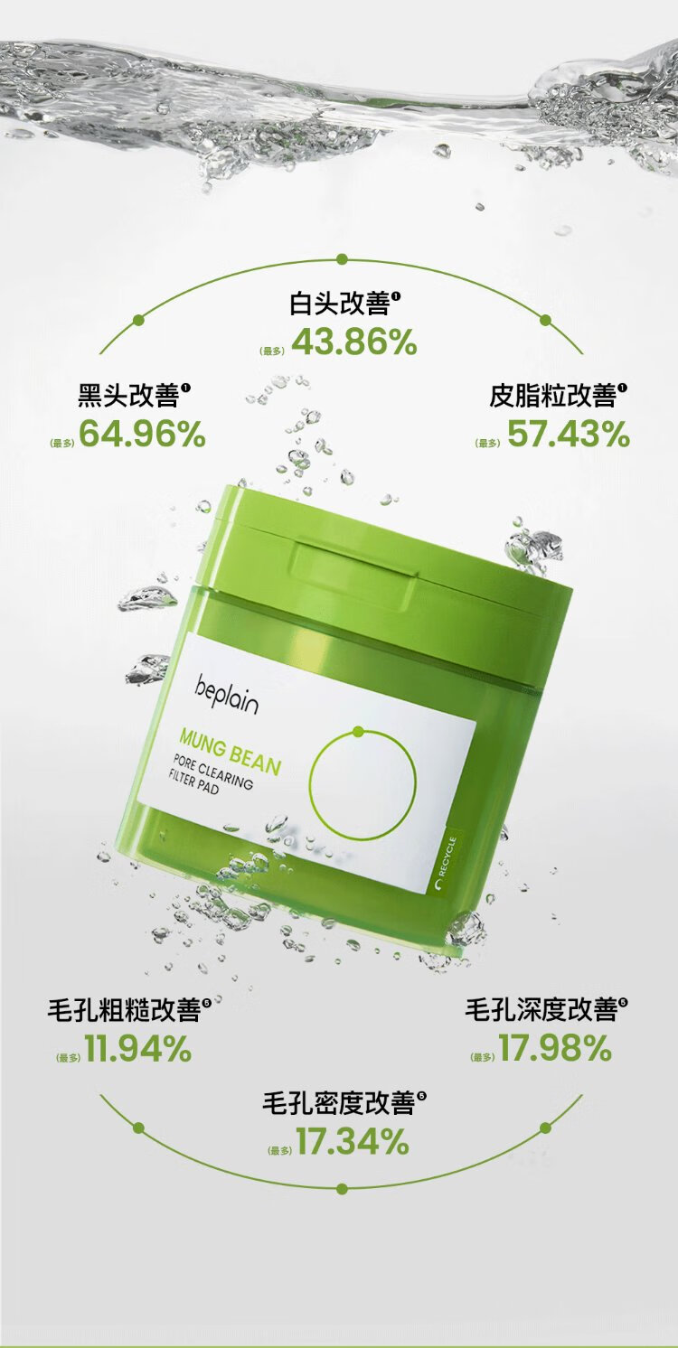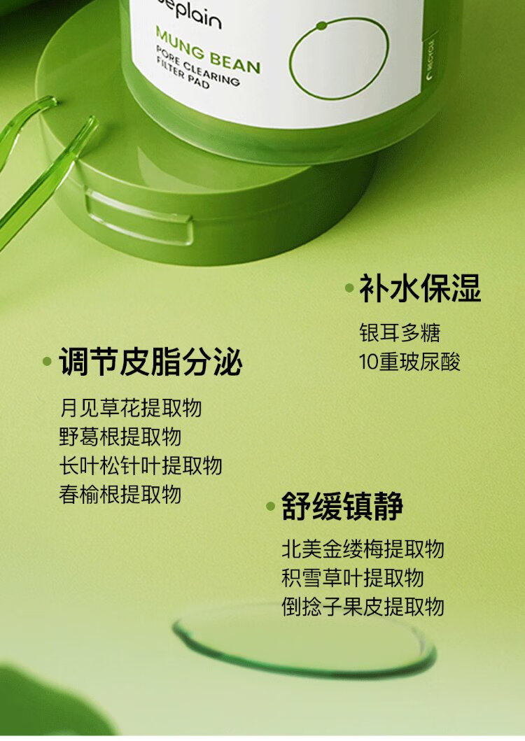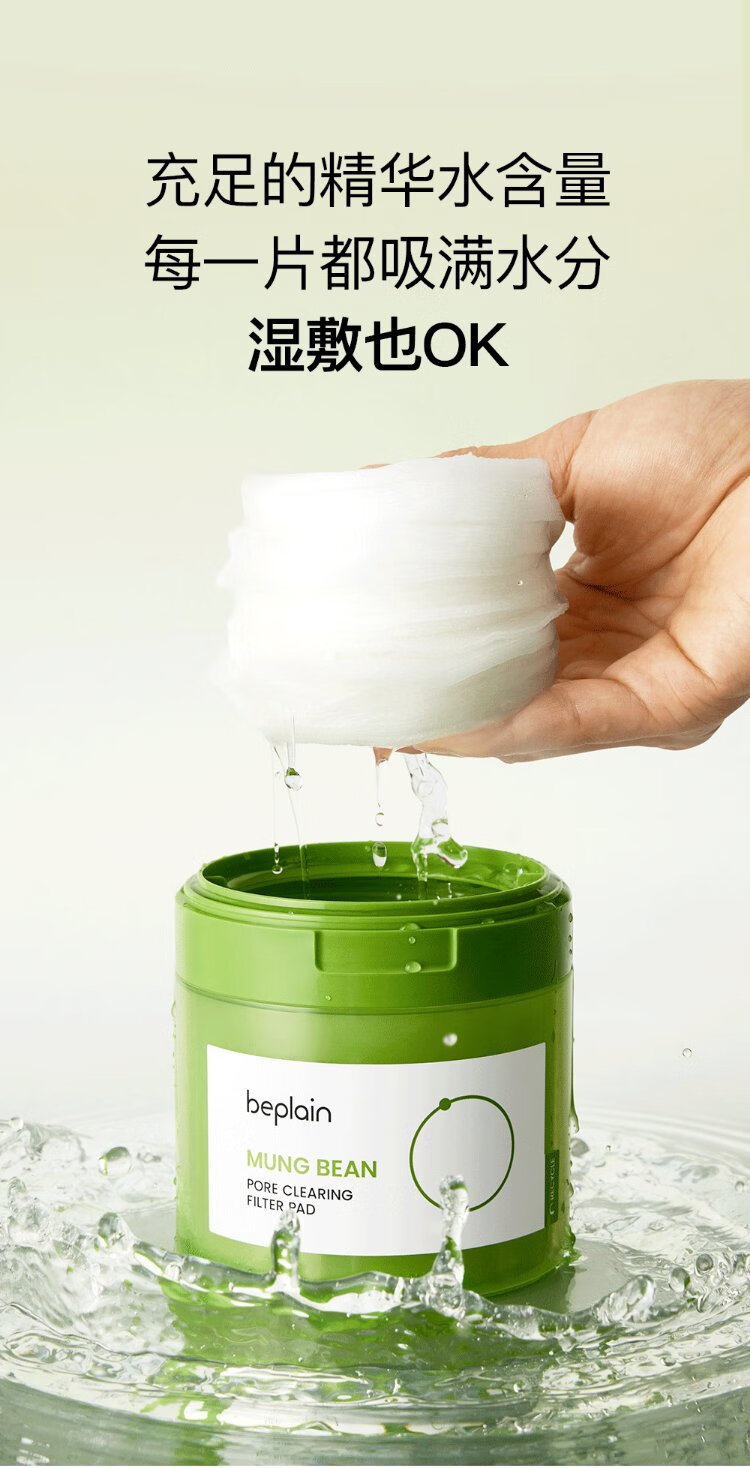 BE PLAIN Korean Mung Bean Rejuvenating Pore Cleansing Pads Mild Moisturizing Soothing Wet Compress Pads 27ml (10 pieces)
