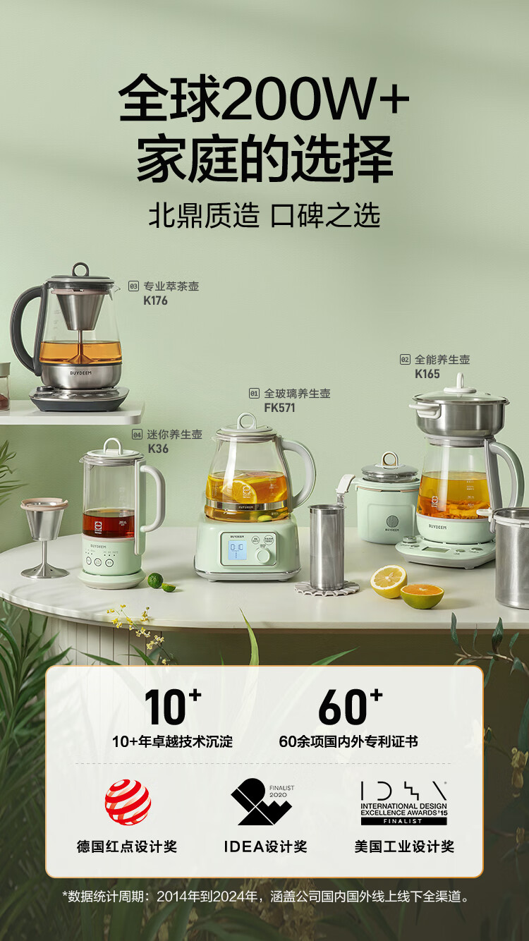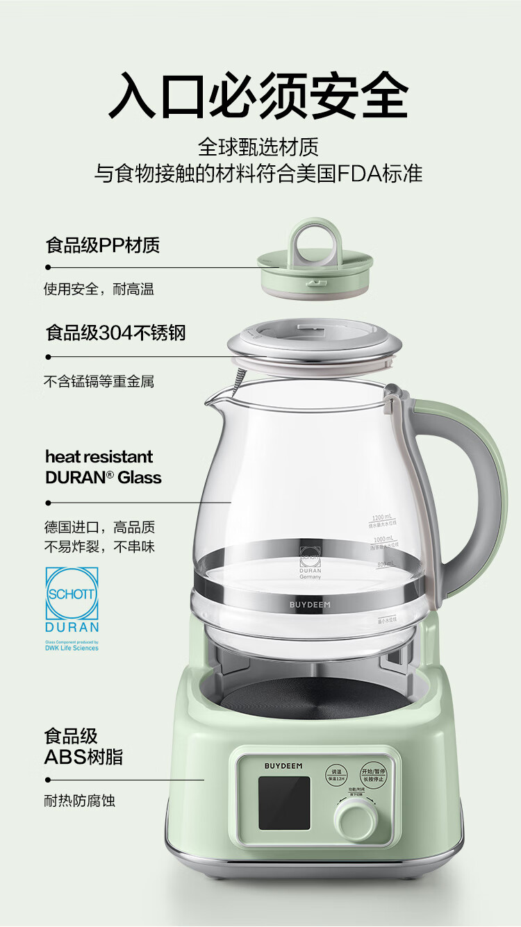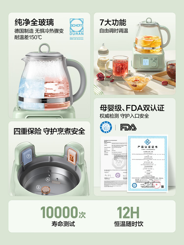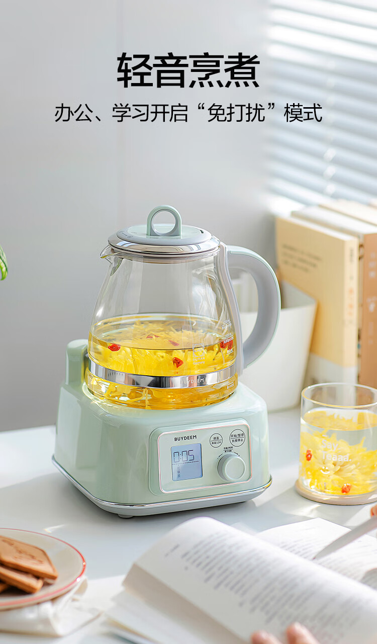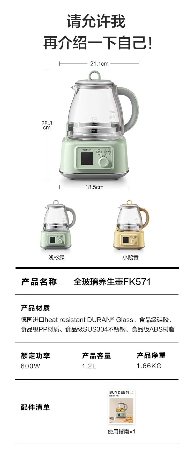Beiding health kettle all-glass kettle self-operated multi-functional stew kettle teapot one-piece office household thermostatic kettle electric kettle 1.2L FK571 small goose yellow
