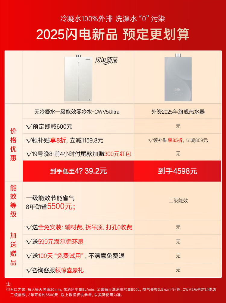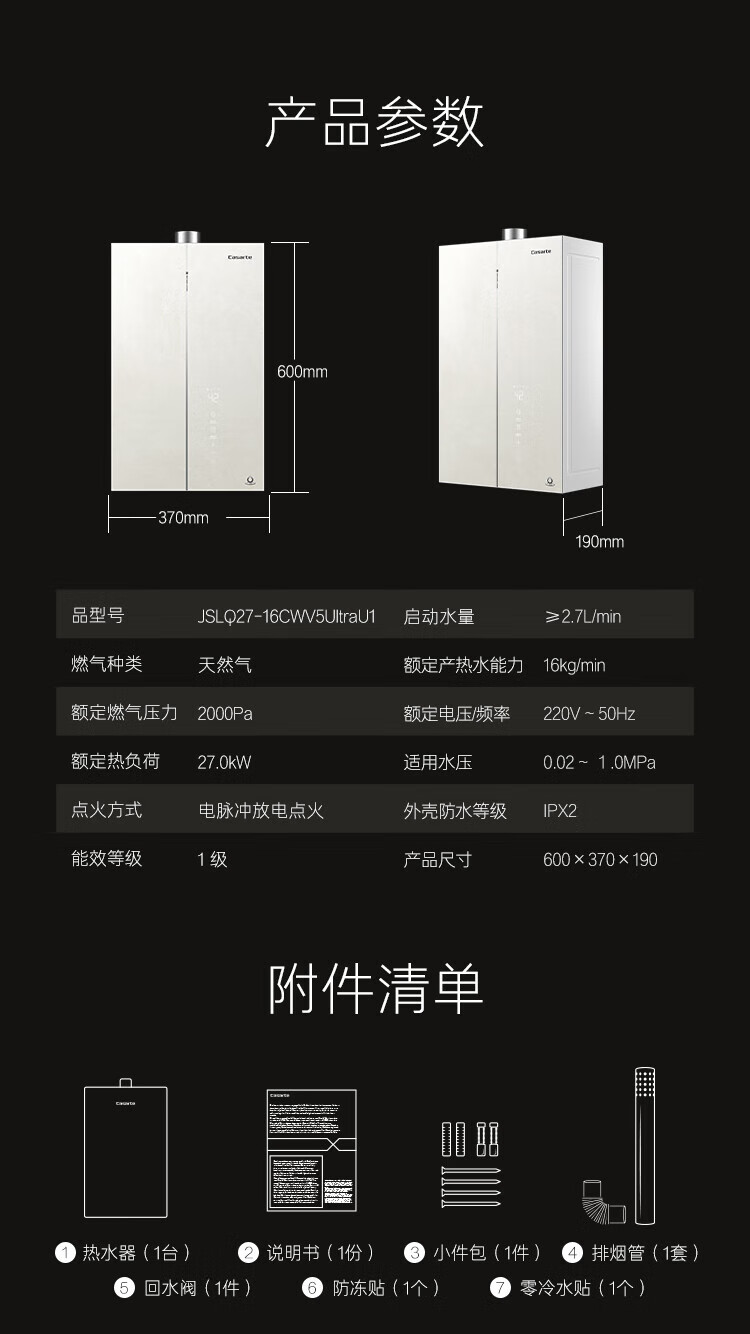 Casarte unbounded 16-liter gas water heater natural gas super first-class energy efficiency zero cold water JSLQ27-16CWV5UltraU1 national subsidy