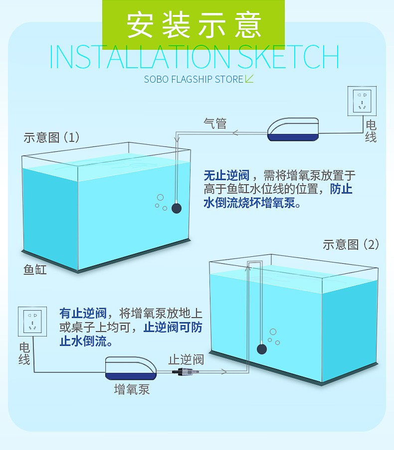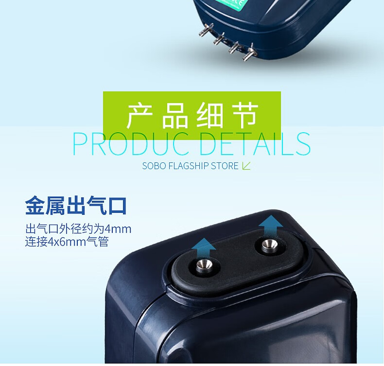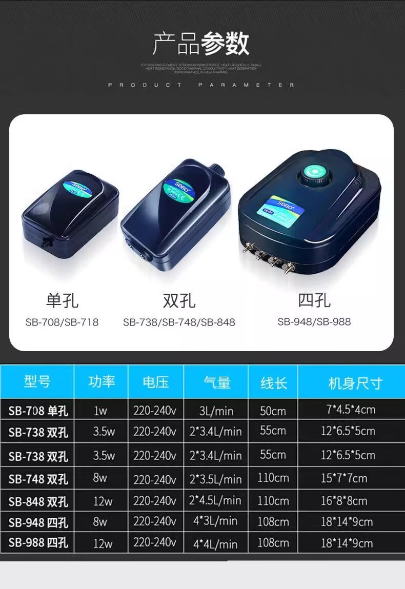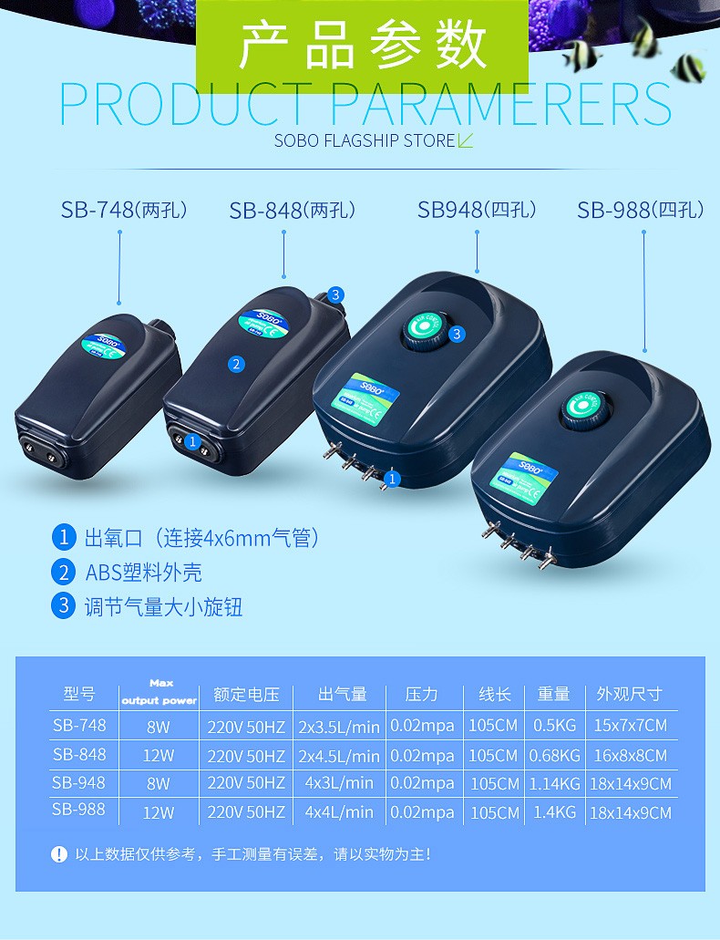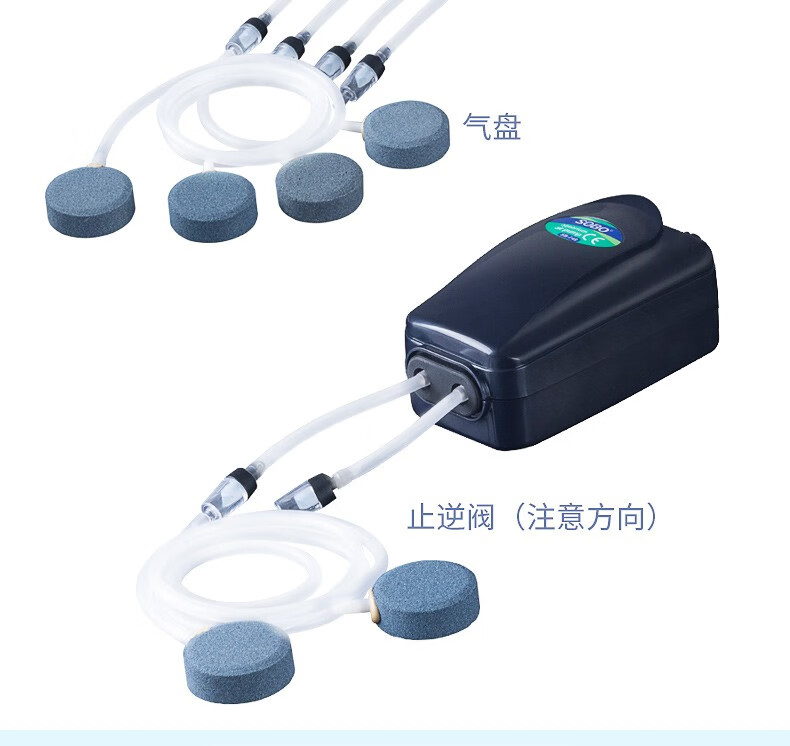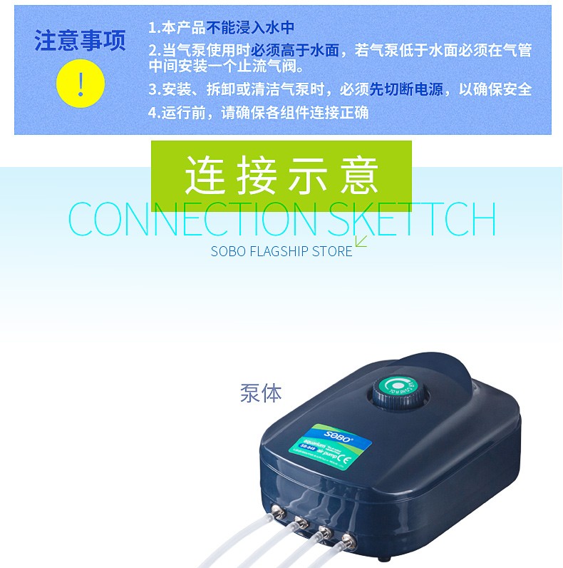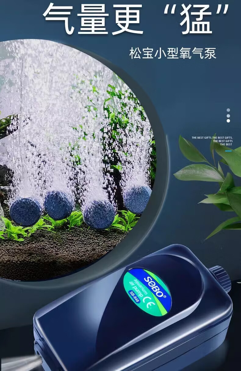 Songbao fish tank oxygen pump oxygen pump fish aerator small household soft bass oxygenator fish tank 8W two-hole air pump + 4 meters air pipe + 2 air disks + 2 check valves