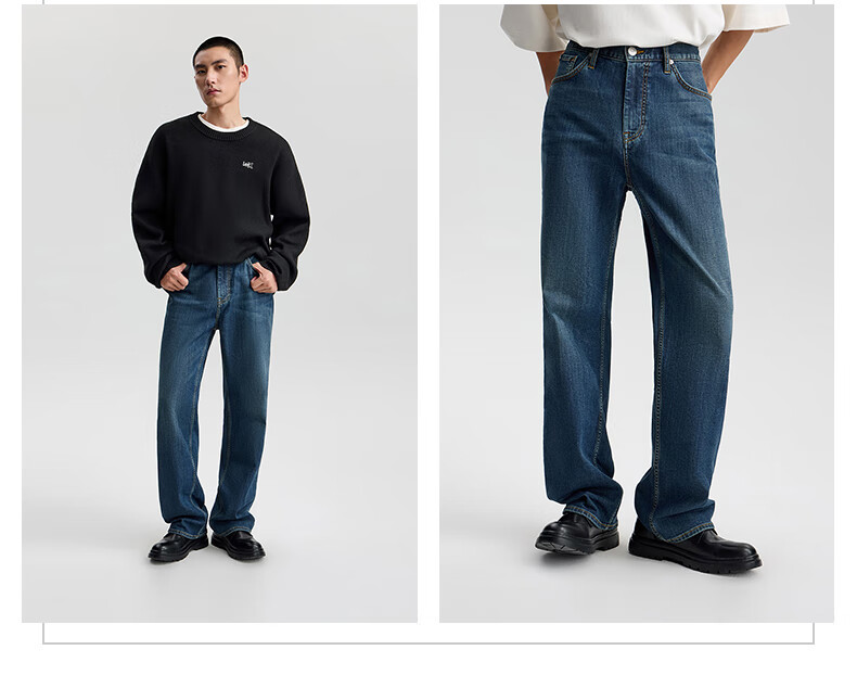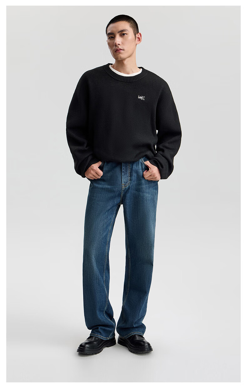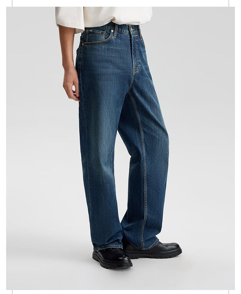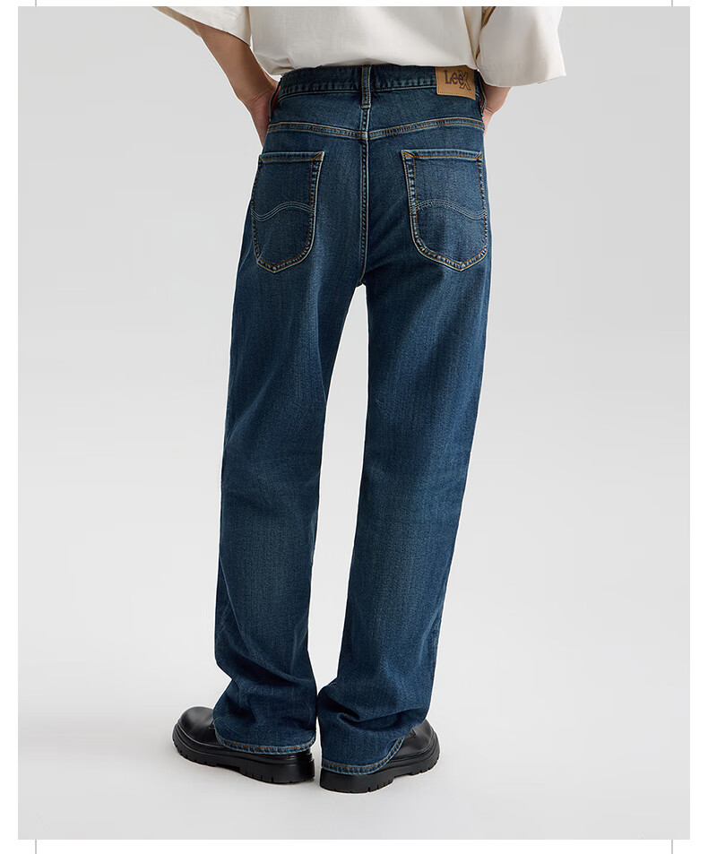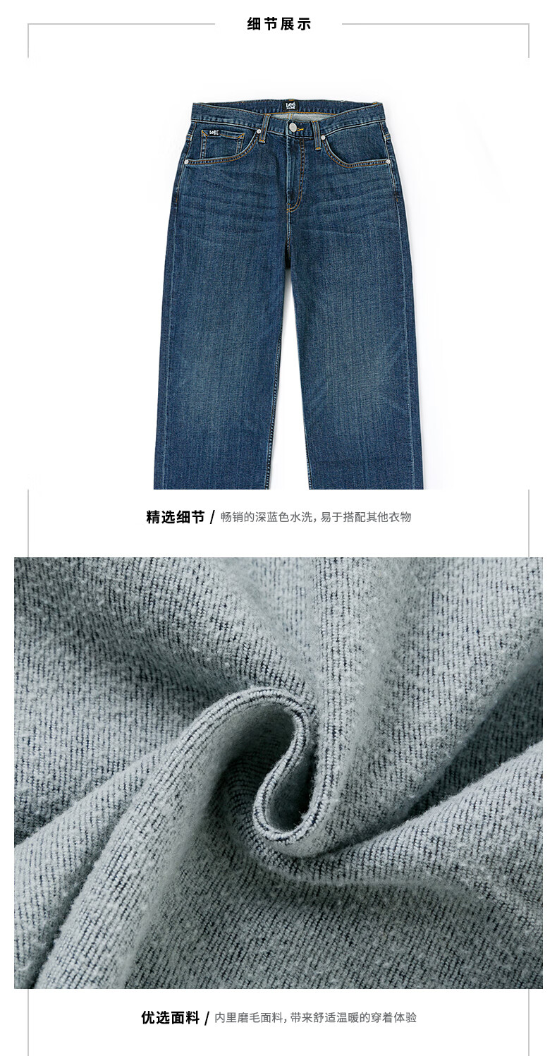 Lee25 new autumn and winter loose brushed dark blue men's wide-leg jeans, warm and trendy, dark blue 33