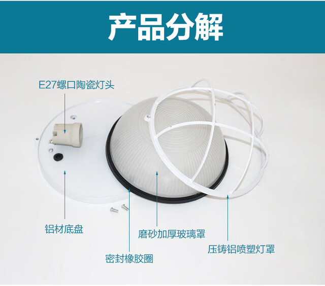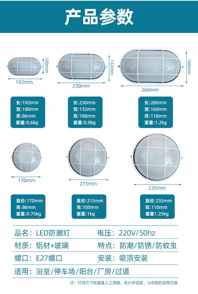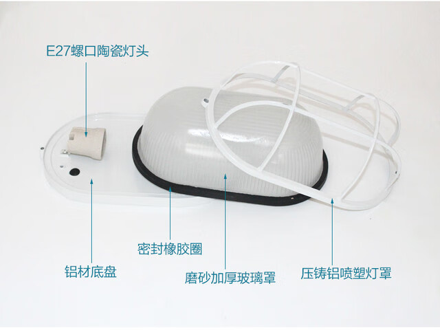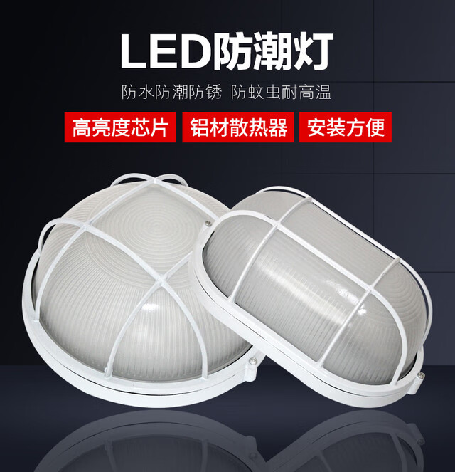 LED防爆灯防水防潮灯耐高温三防灯卫生间阳台仓库厂房灯罩户外灯 全铝中椭 不带灯泡