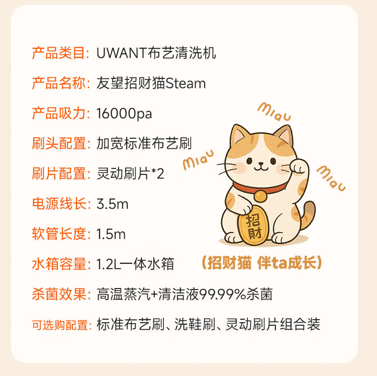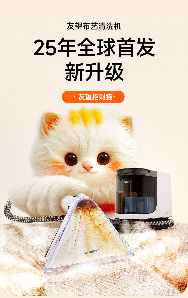 Uwant Youwang flagship steam cleaner fabric cleaning machine high temperature and high pressure washing and suction all-in-one whole house household carpet sofa mattress multi-functional Lucky Cat Y200 steam