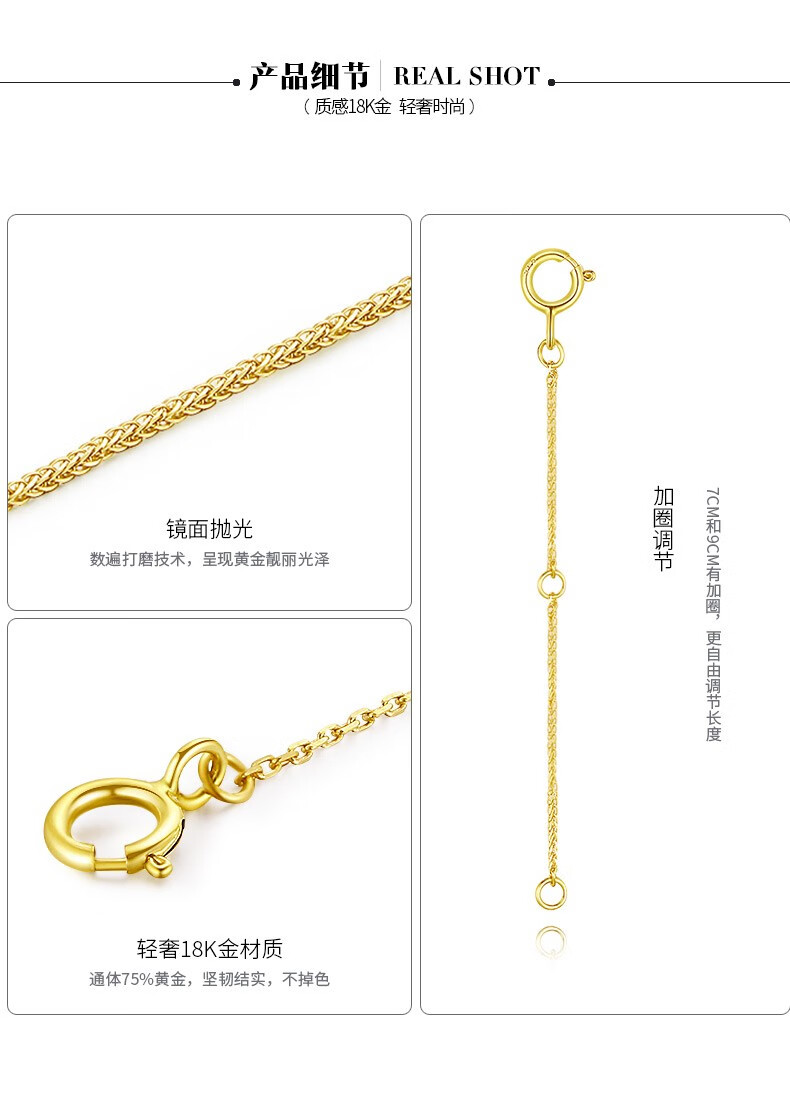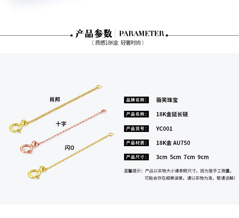 Weixiao Jewelry 18K gold extension chain for women K gold rose gold extension chain simple light luxury Valentine's Day gift for girlfriend's birthday Chopard K yellow 9cm