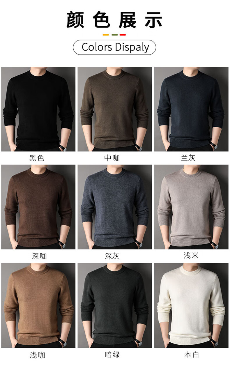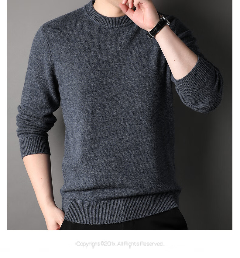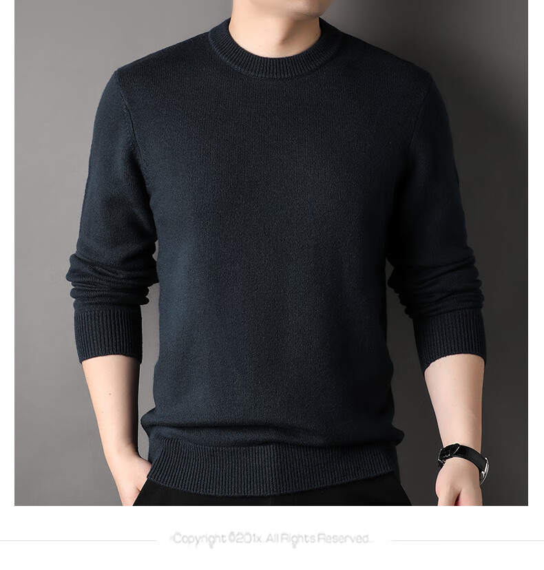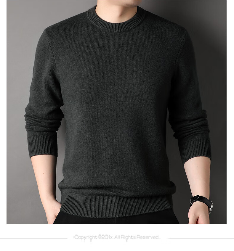 ROMON 100% pure wool sweater men's heavyweight 430G thickened sweater round neck sweater men's autumn and winter casual bottoming shirt