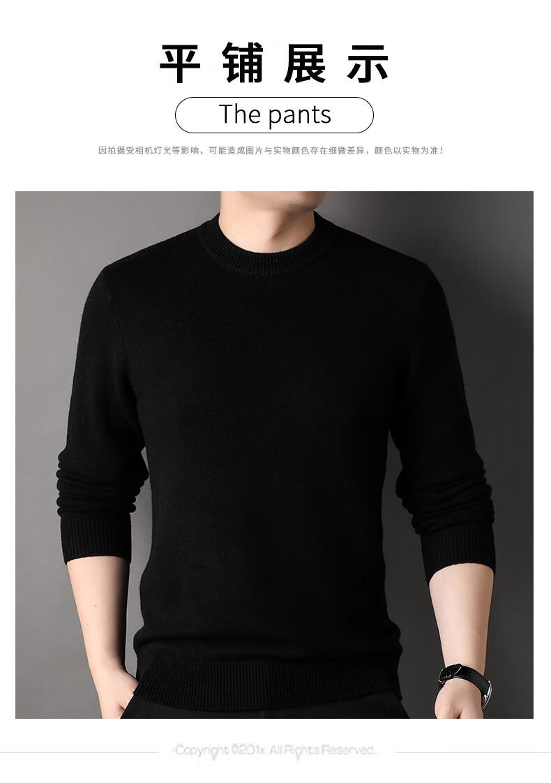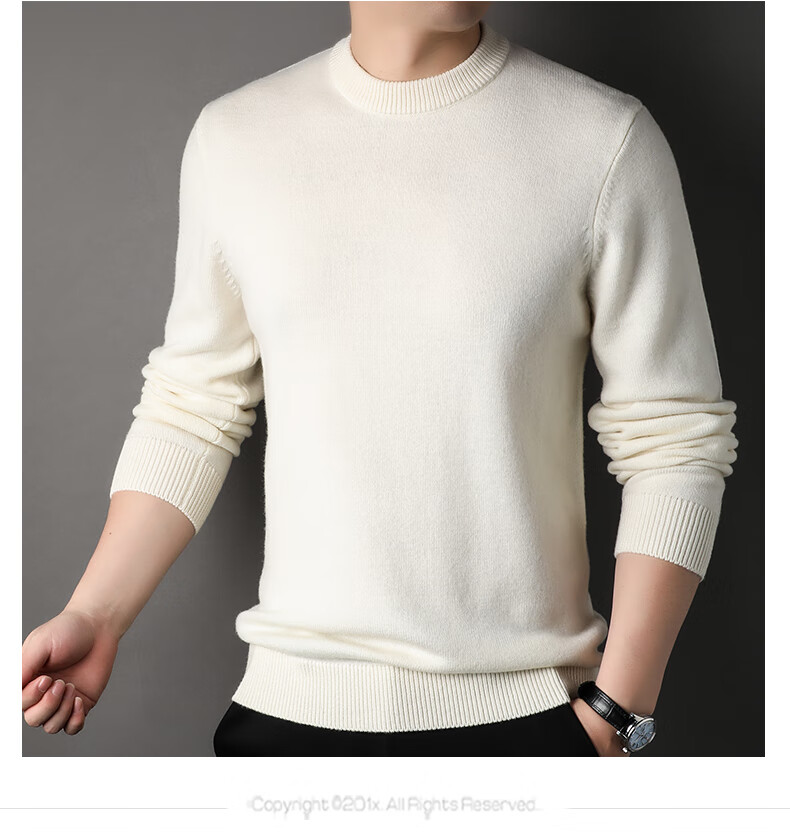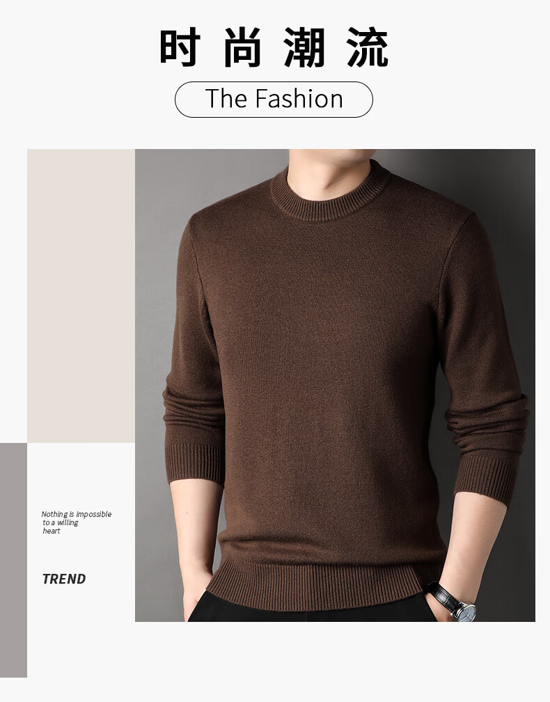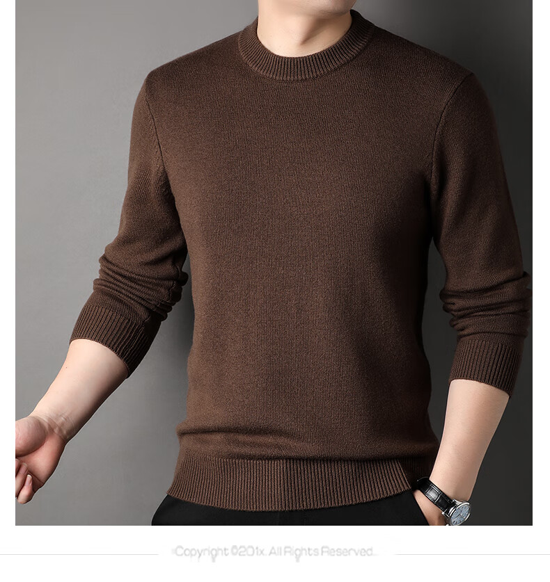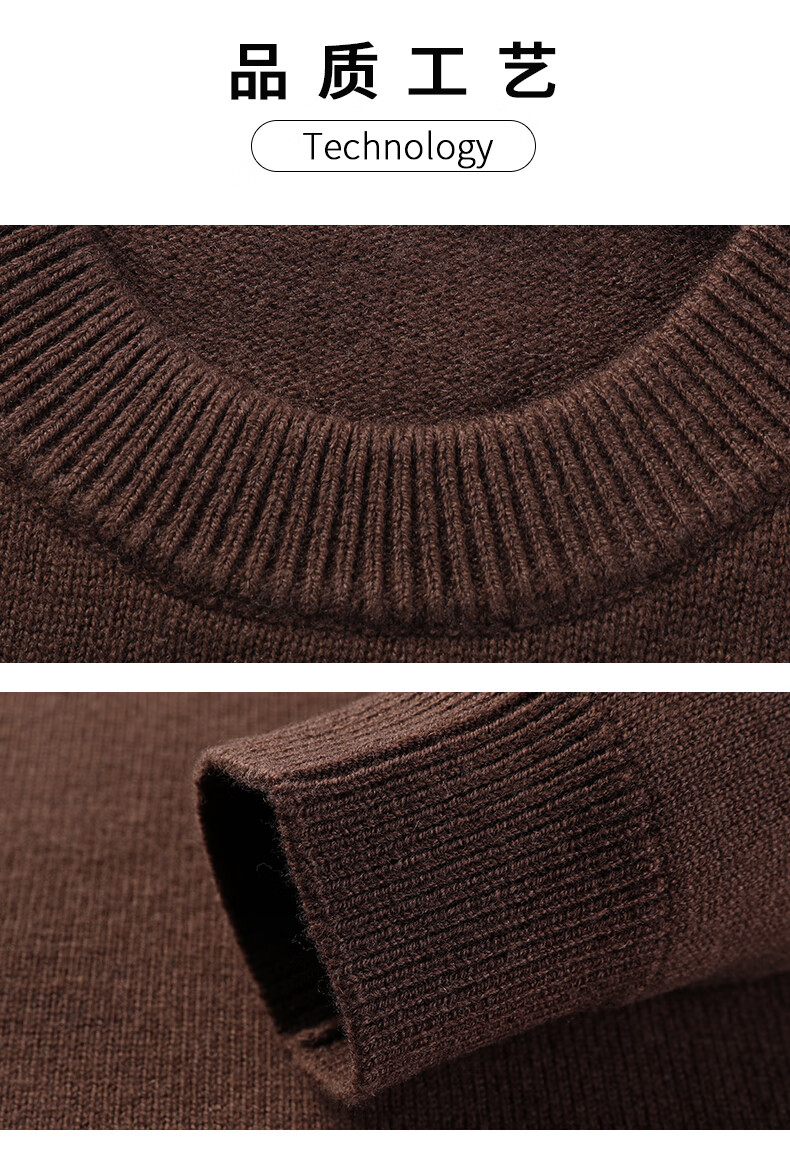 ROMON 100% pure wool sweater men's heavyweight 430G thickened sweater round neck sweater men's autumn and winter casual bottoming shirt