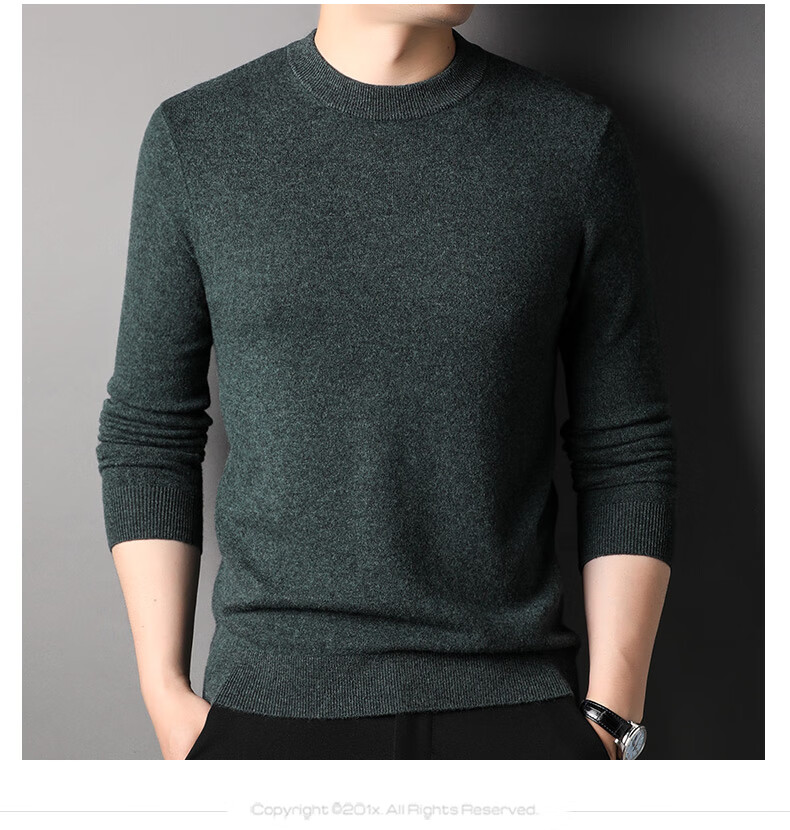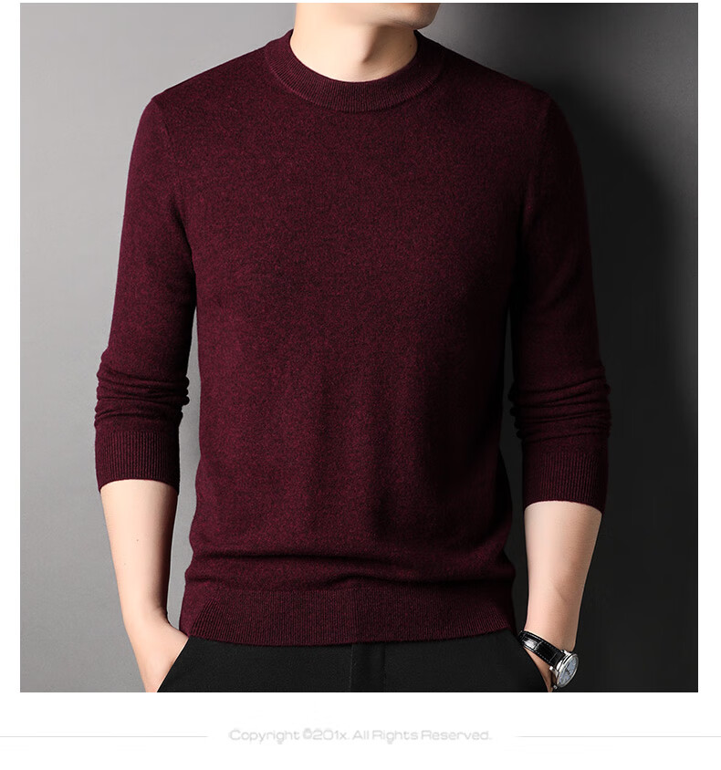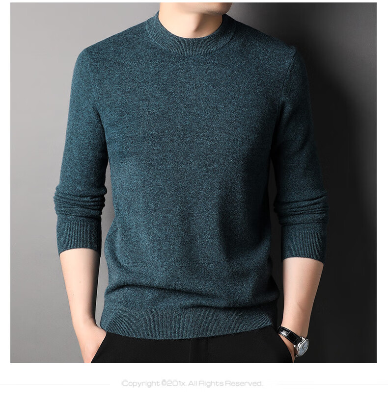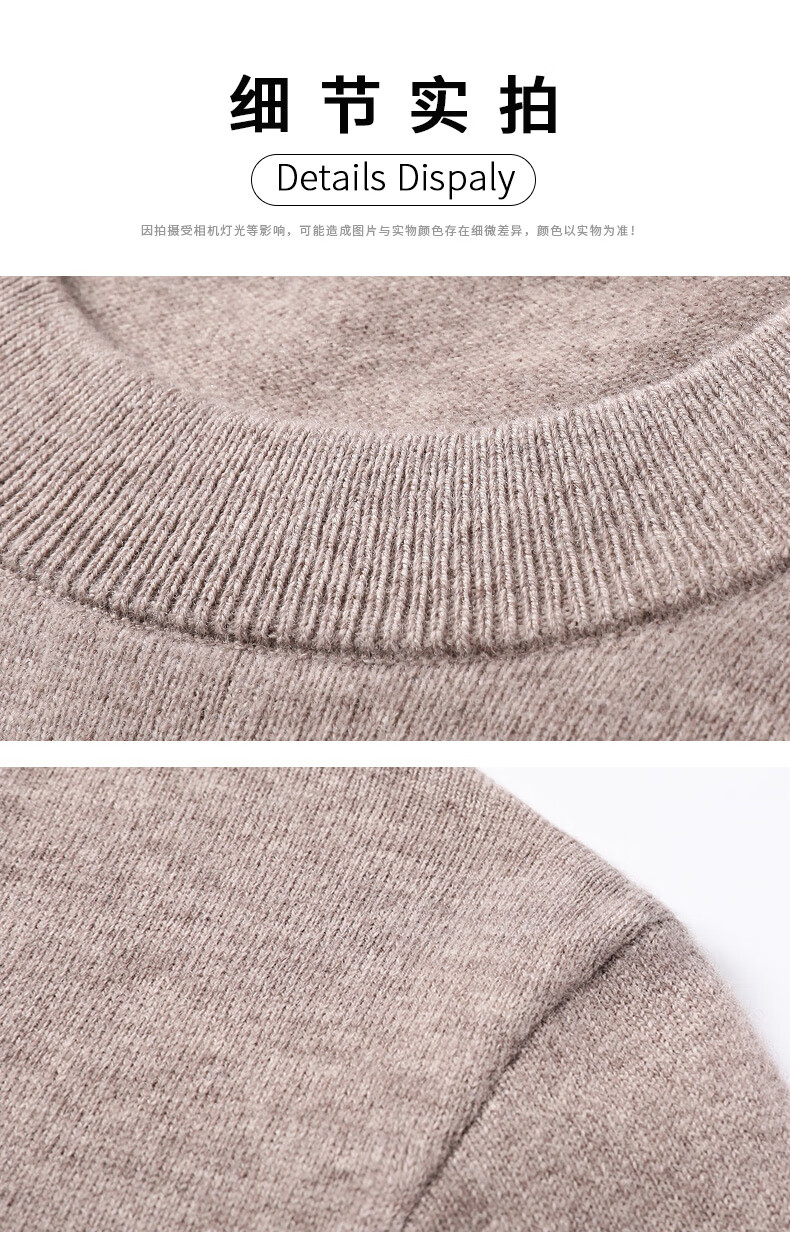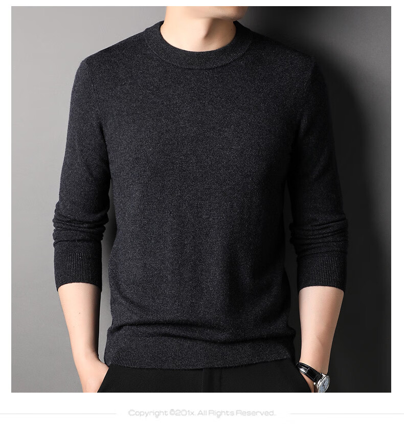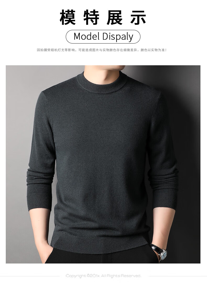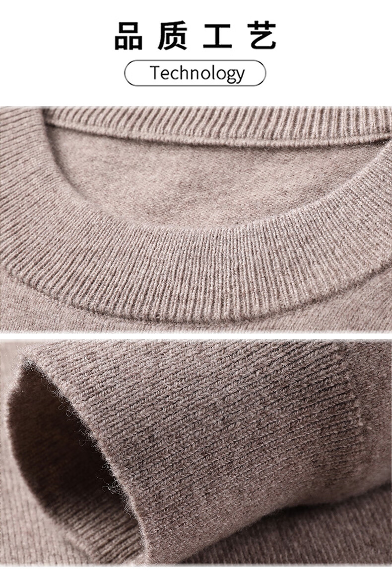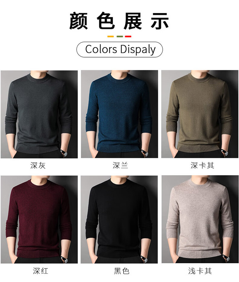 ROMON 100% pure wool sweater men's thick solid color round neck pullover autumn and winter warm casual casual sweater for young and middle-aged men