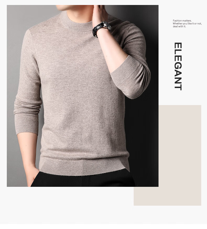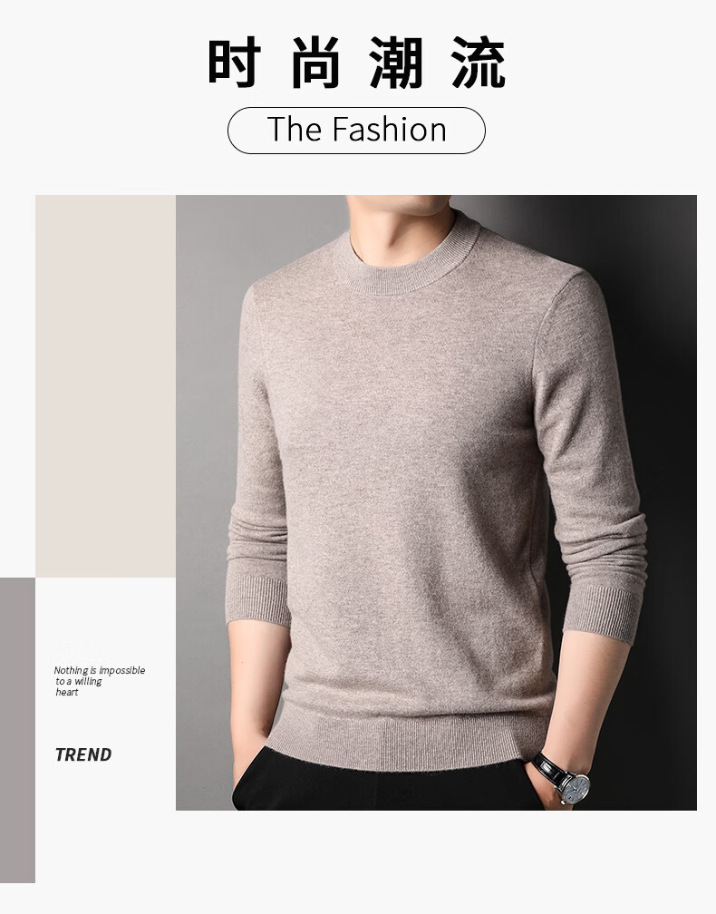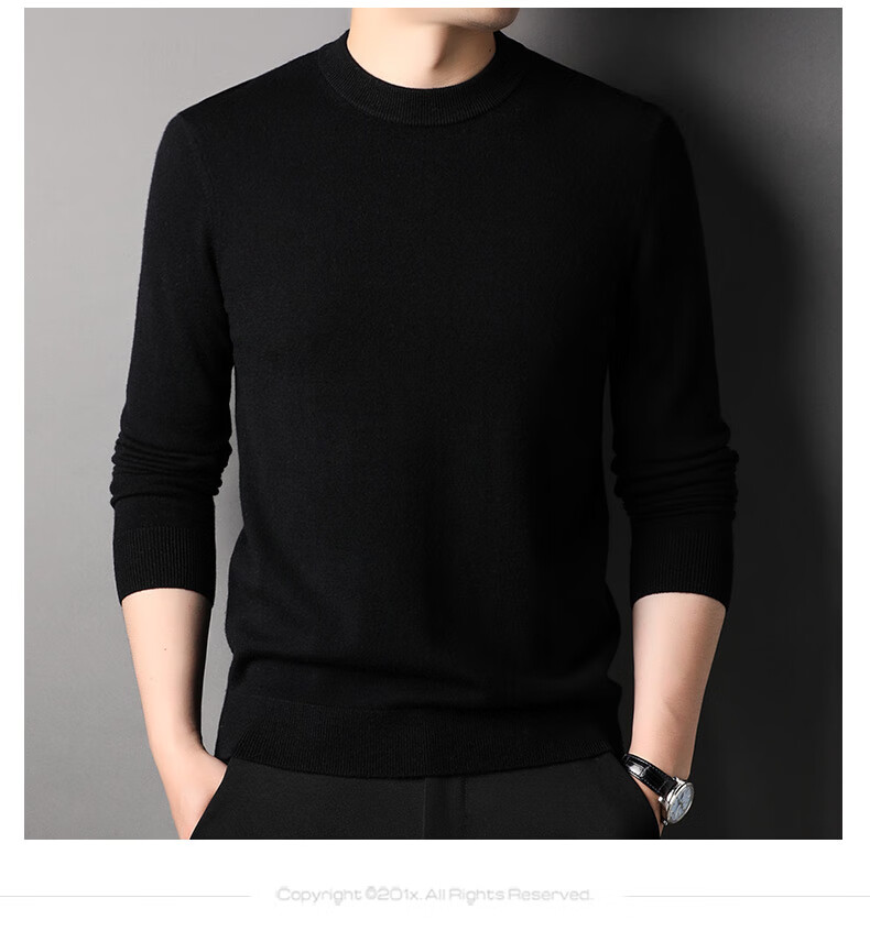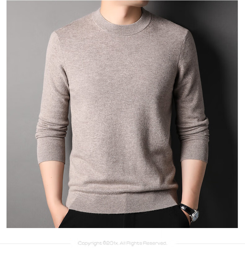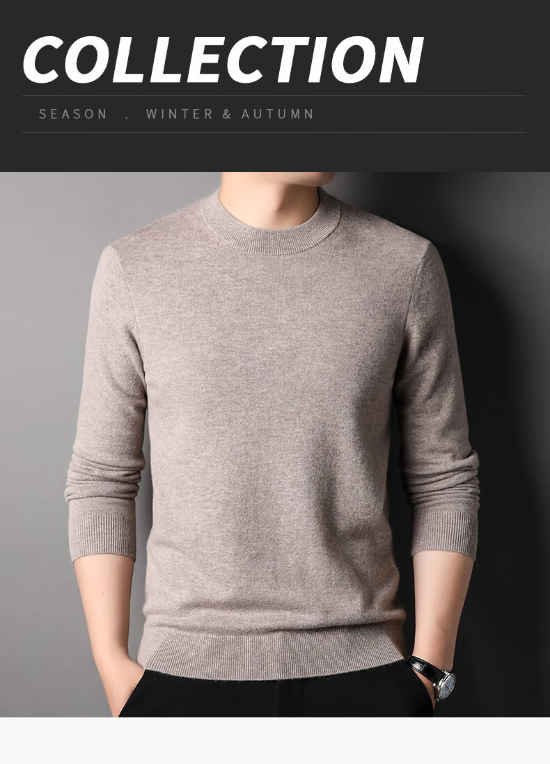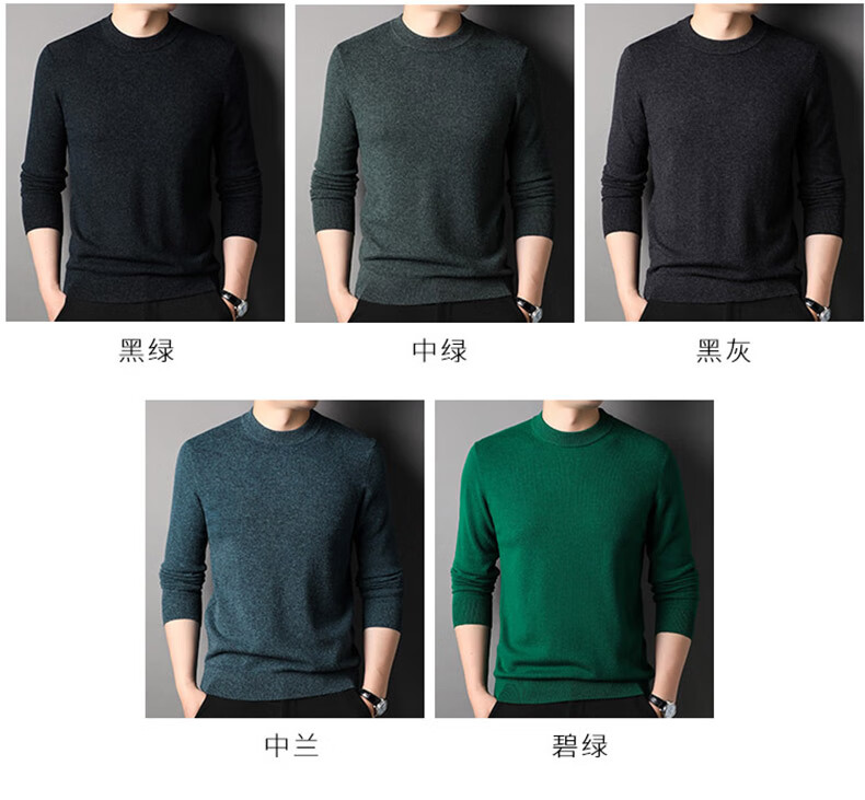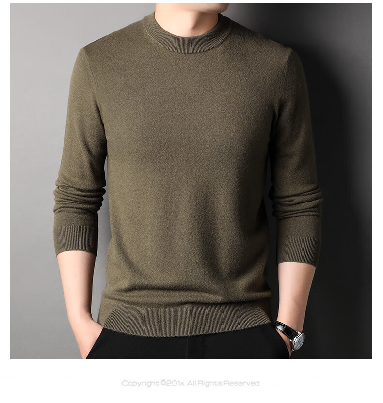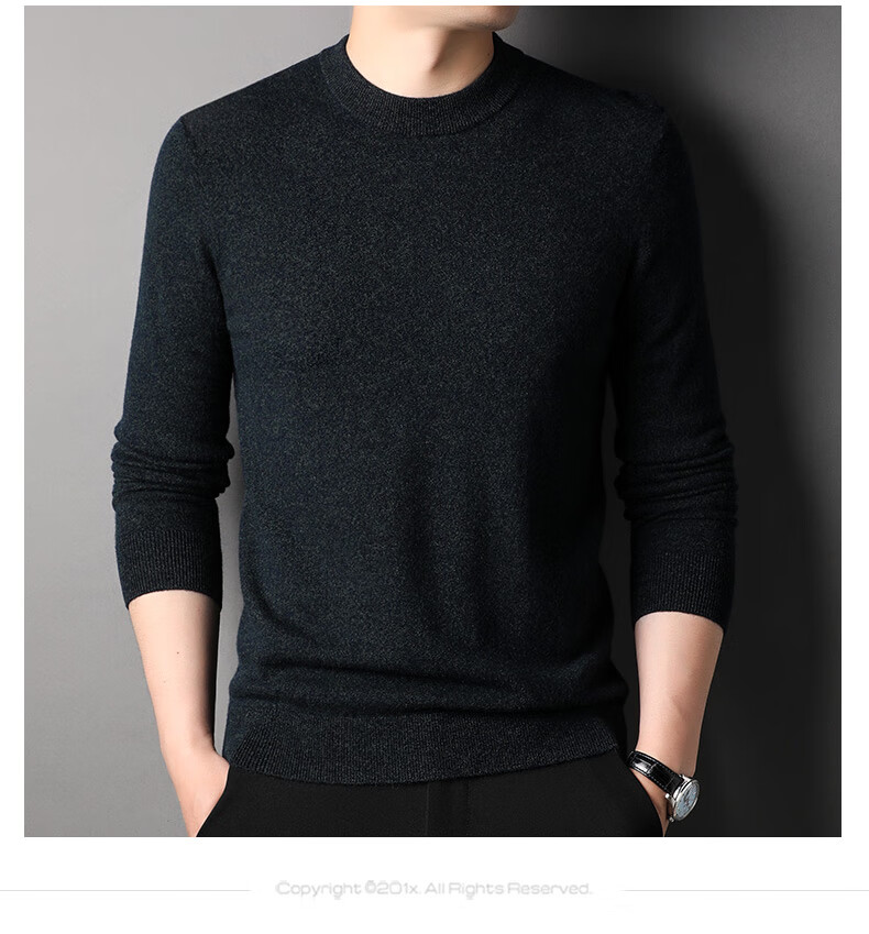 ROMON 100% pure wool sweater men's thick solid color round neck pullover autumn and winter warm casual casual sweater for young and middle-aged men