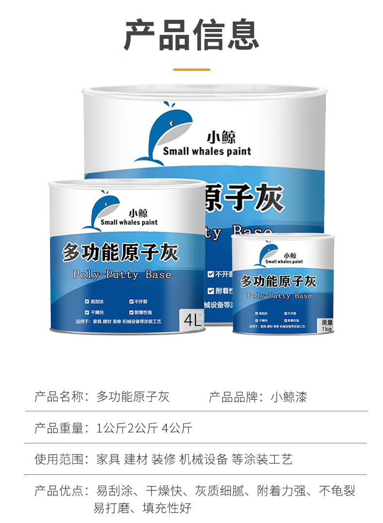 Little Whale Multifunctional Atomic Putty Car Sheet Metal Putty Repair Furniture Contains Curing Agent Touch Up Paint Scratch Repair Paste 1KG/Group