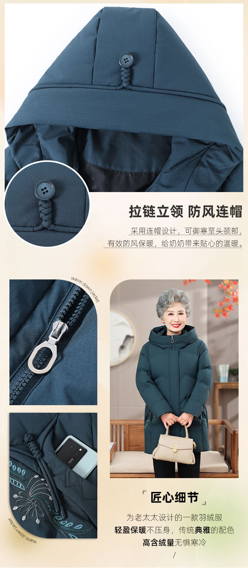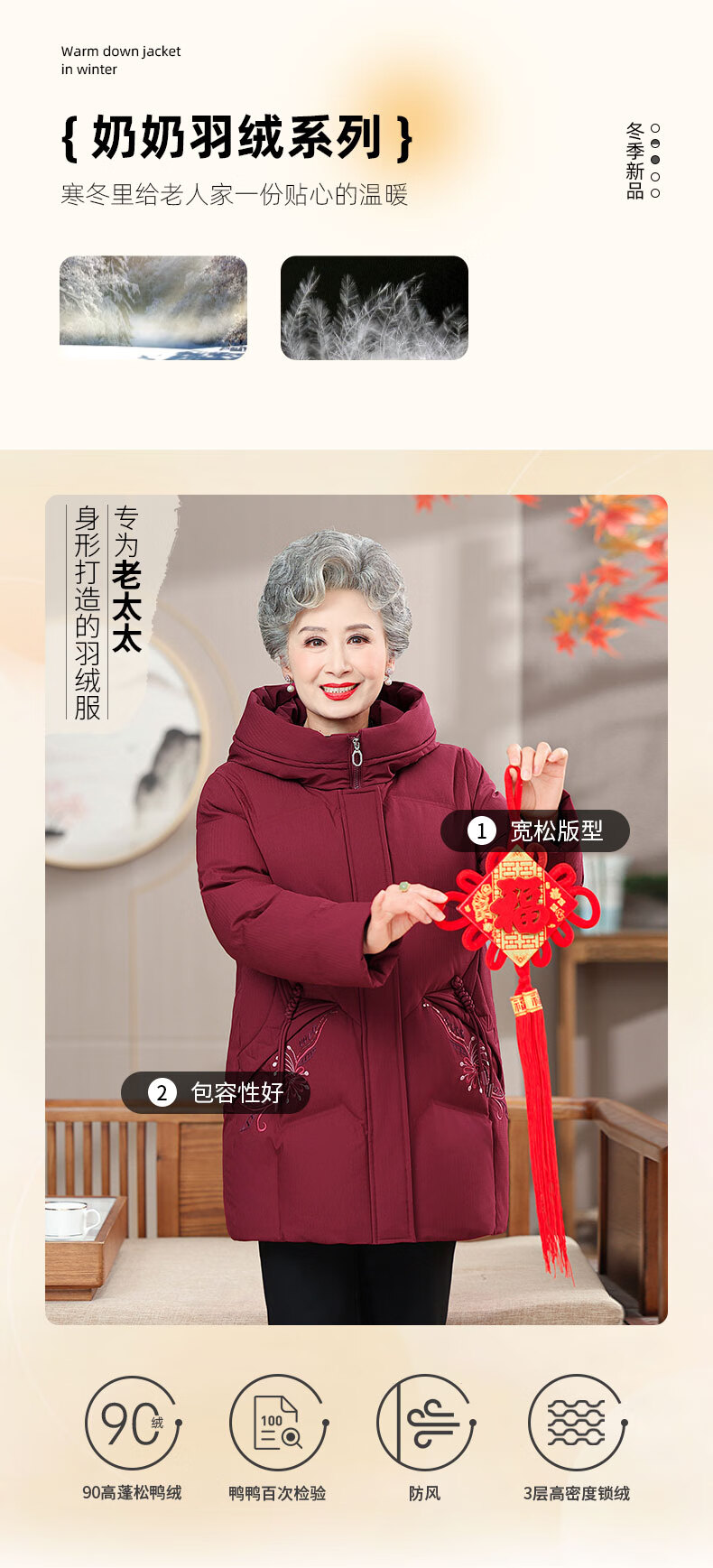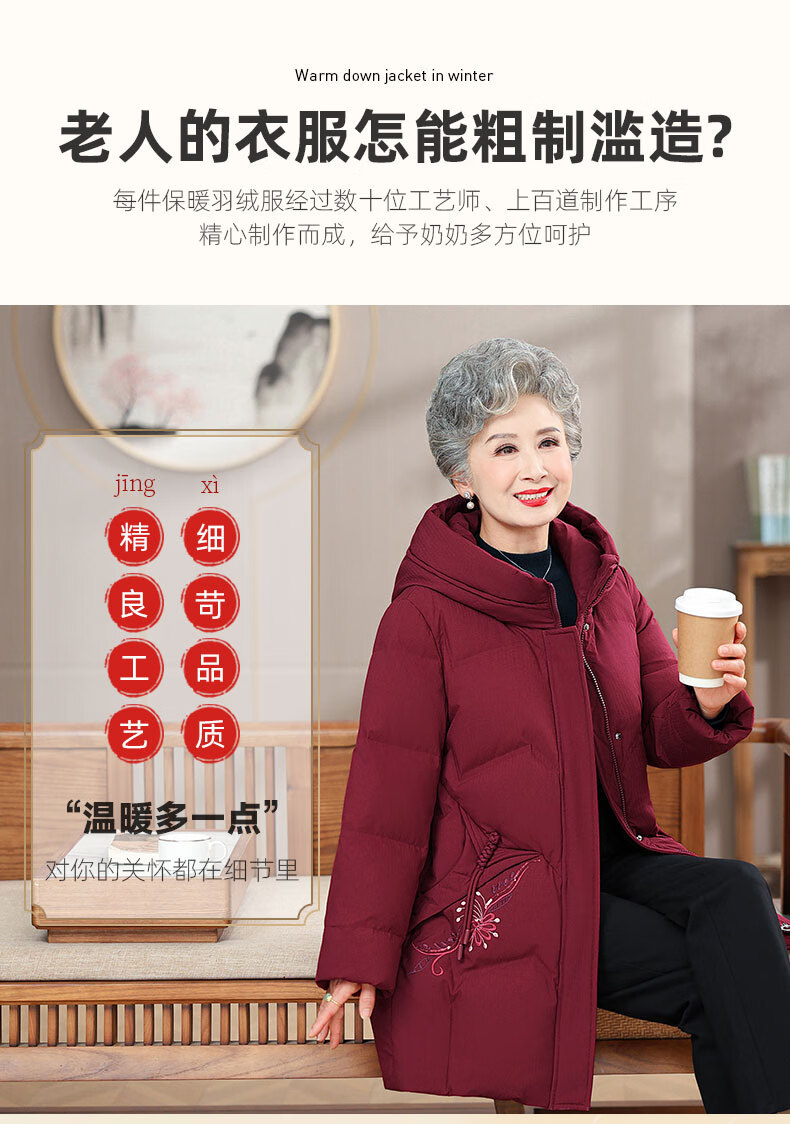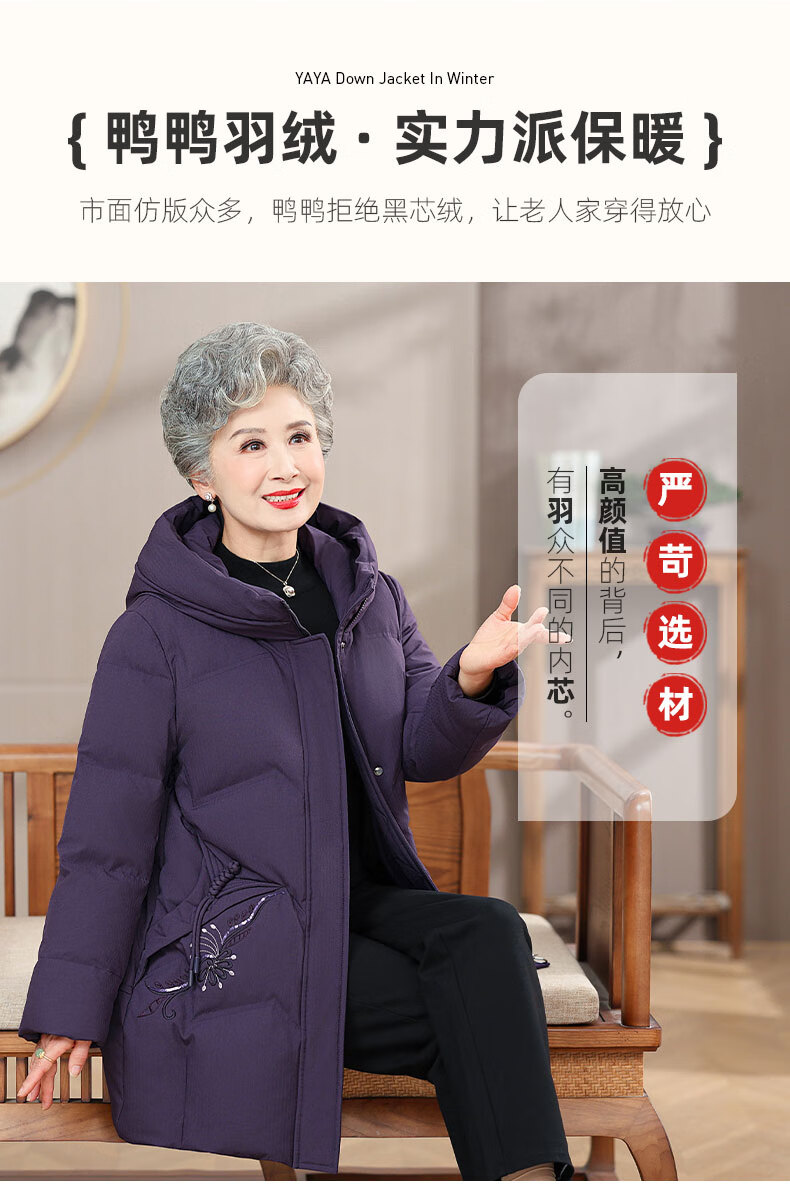 Yaya (YAYA) grandma's winter thickened down jacket 60 and 70 years old middle-aged and elderly women's winter mother's cold-proof and warm jacket