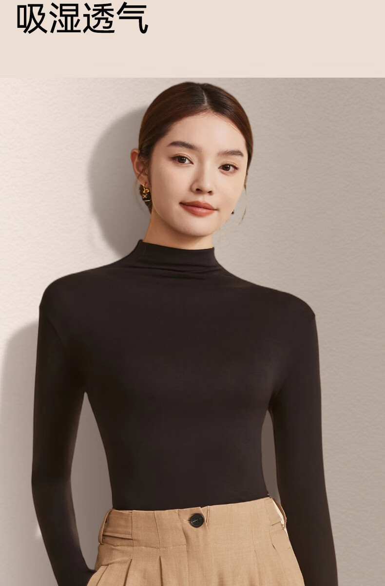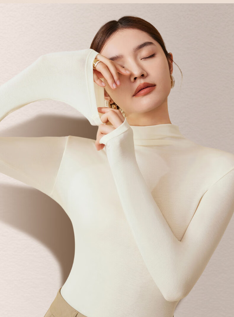 Catman German Cashmere Silk Half Turtle Collar Bottoming Shirt Women's Autumn and Winter Thickened Inner Layer Can Be Weared Outside Pile Collar Top