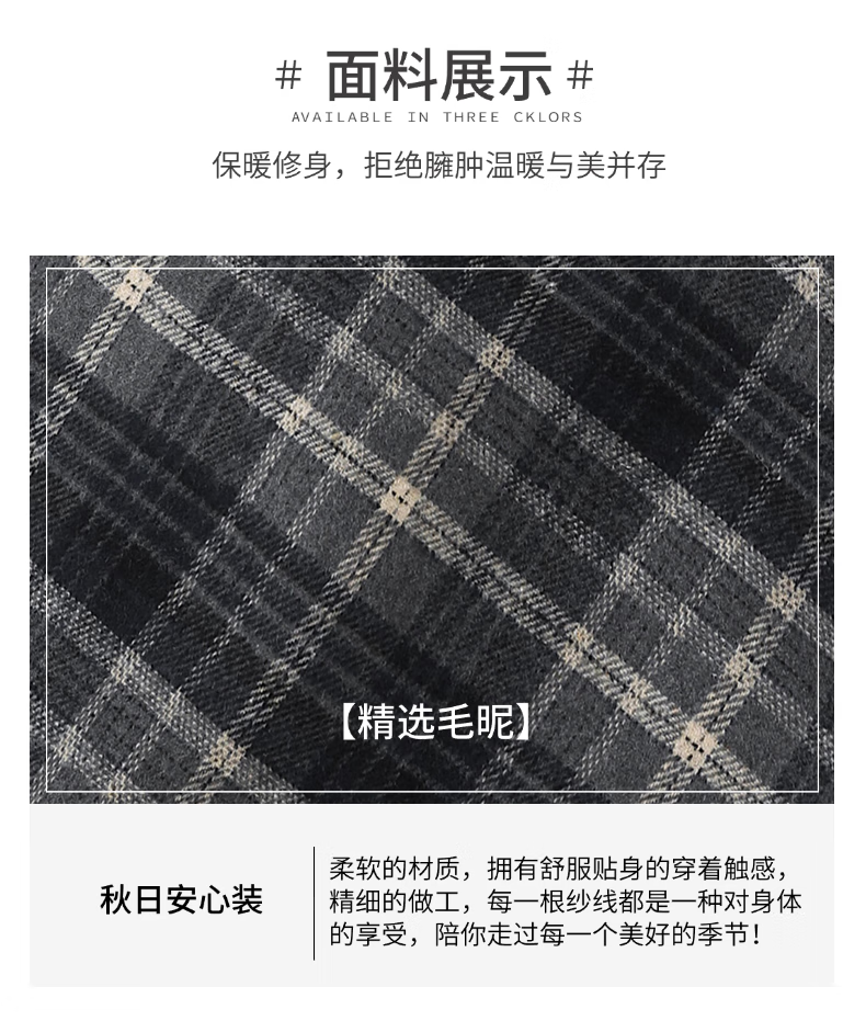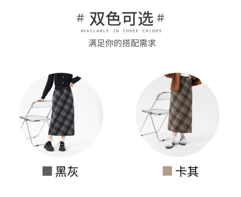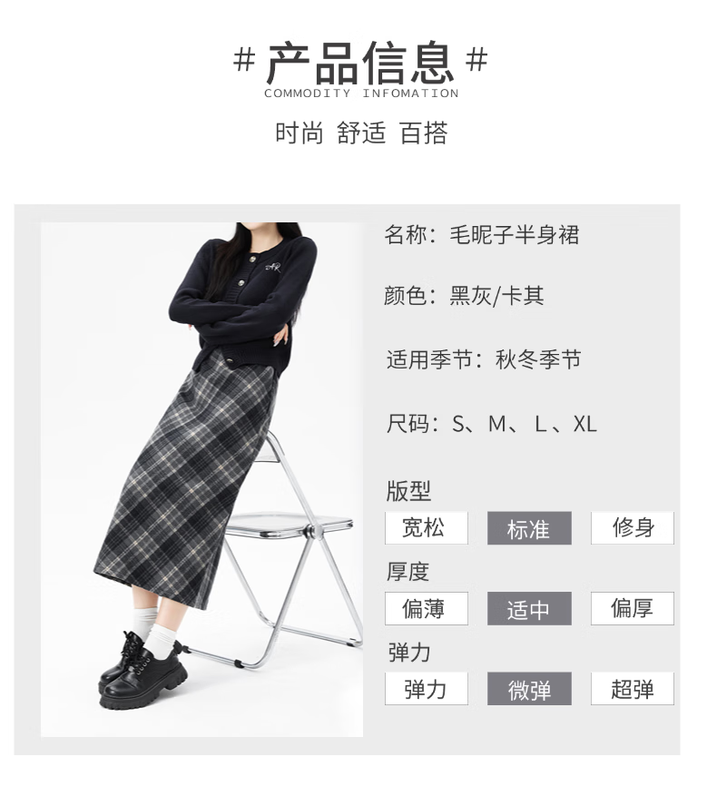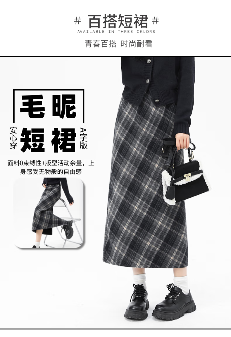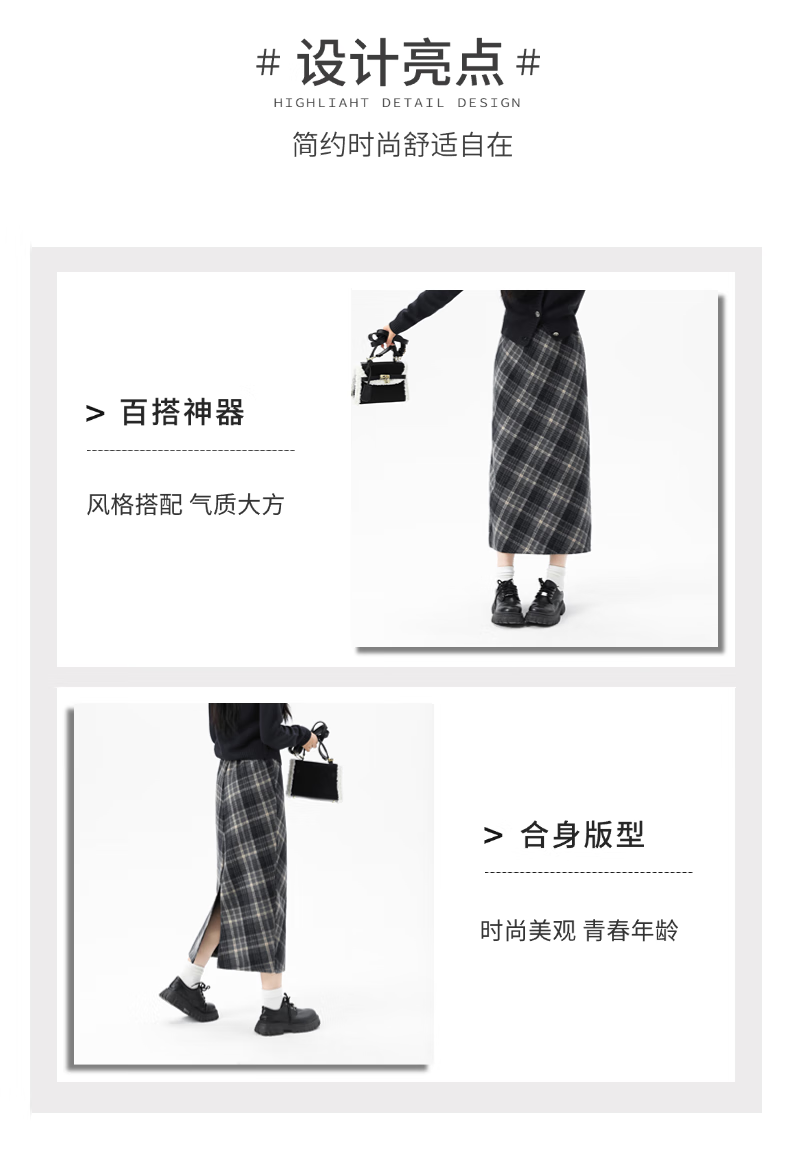 MJ STYLE woolen plaid skirt women's 2025 new spring and autumn high waist slimming slit hip mid-length skirt Khaki L