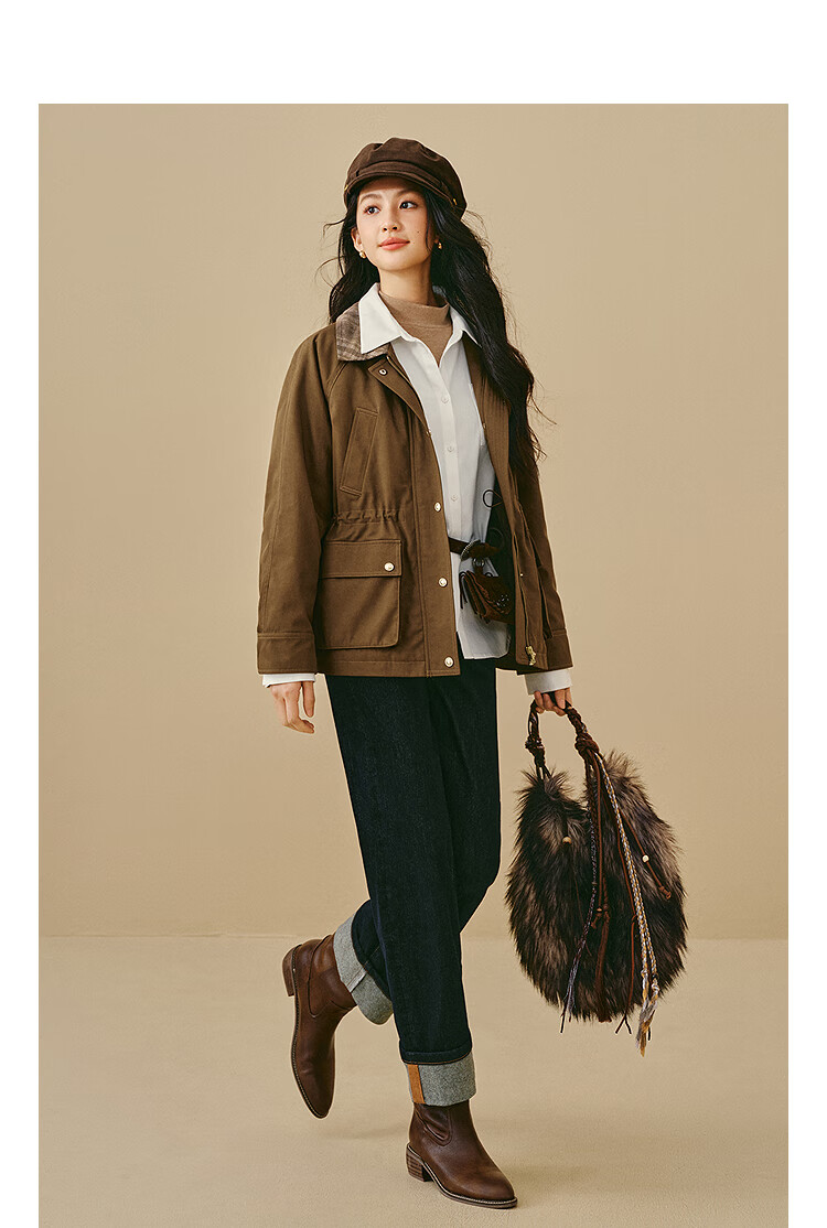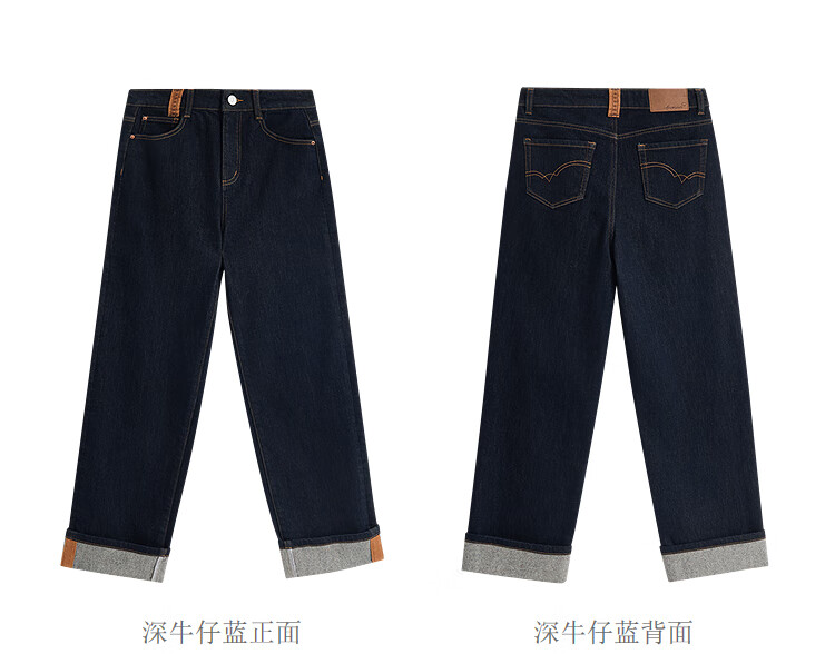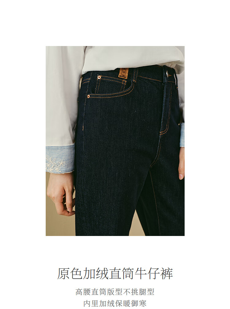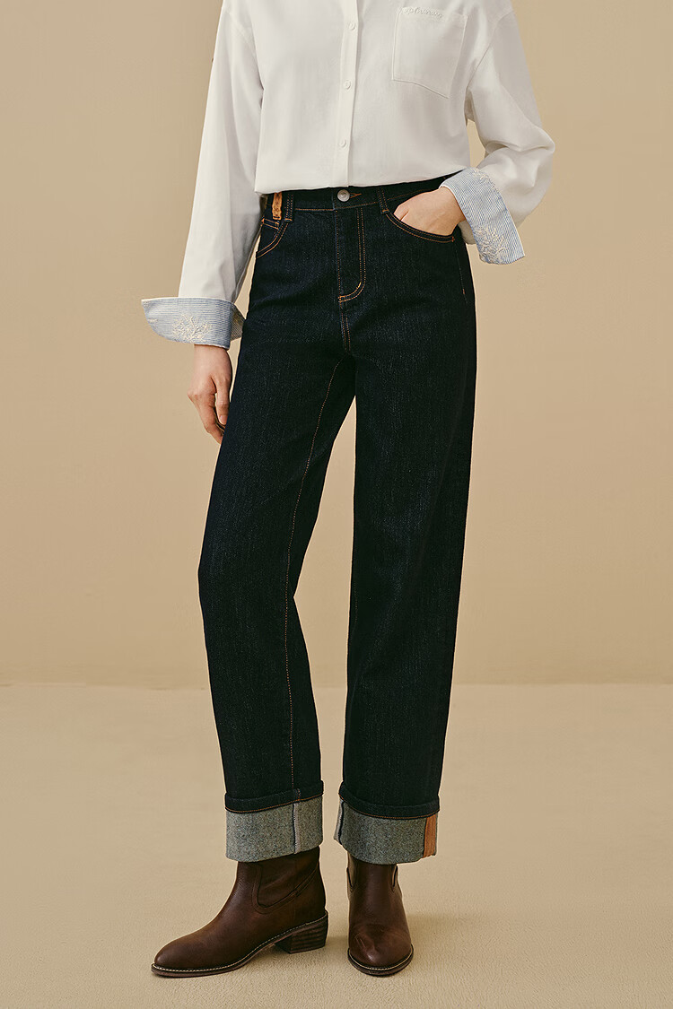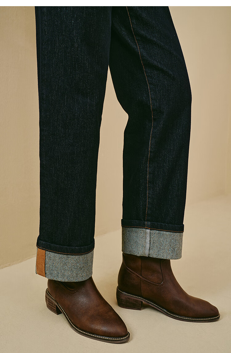 Inman Original Color Velvet Straight Jeans 2025 Winter Women's New Cuffed High Waist Trousers Dark Denim Blue 27