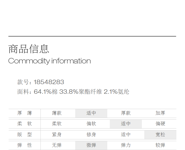 China (cm) 160-165/84-86 165-170 / 88-90 167-172 / 92-96 168-173 / 98-102 170-176 / 106-110