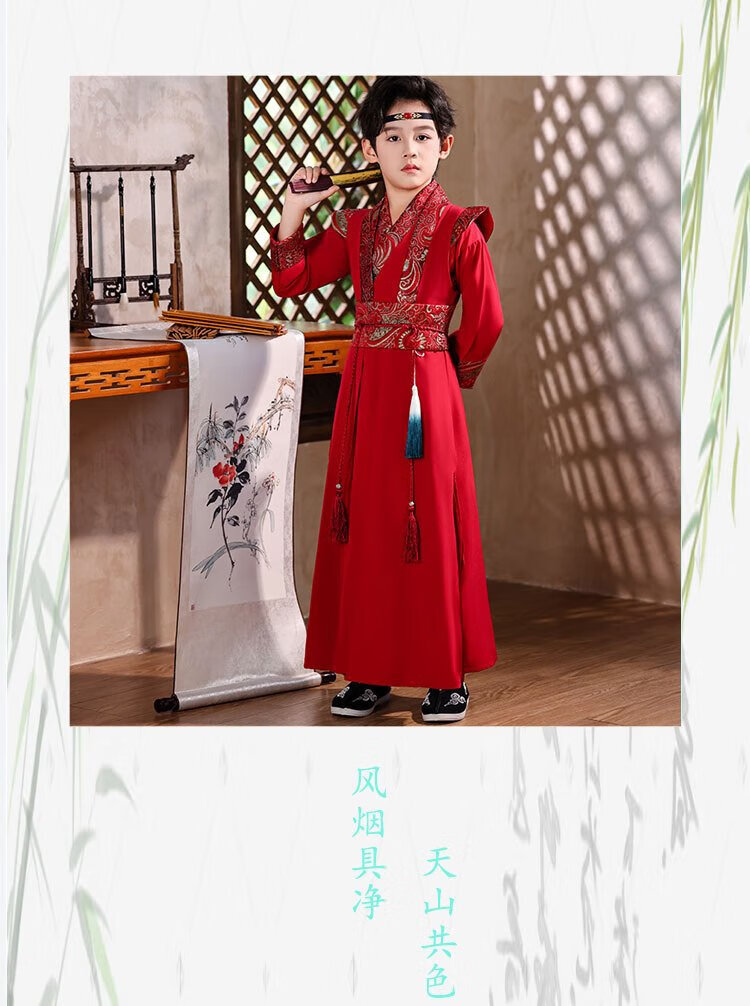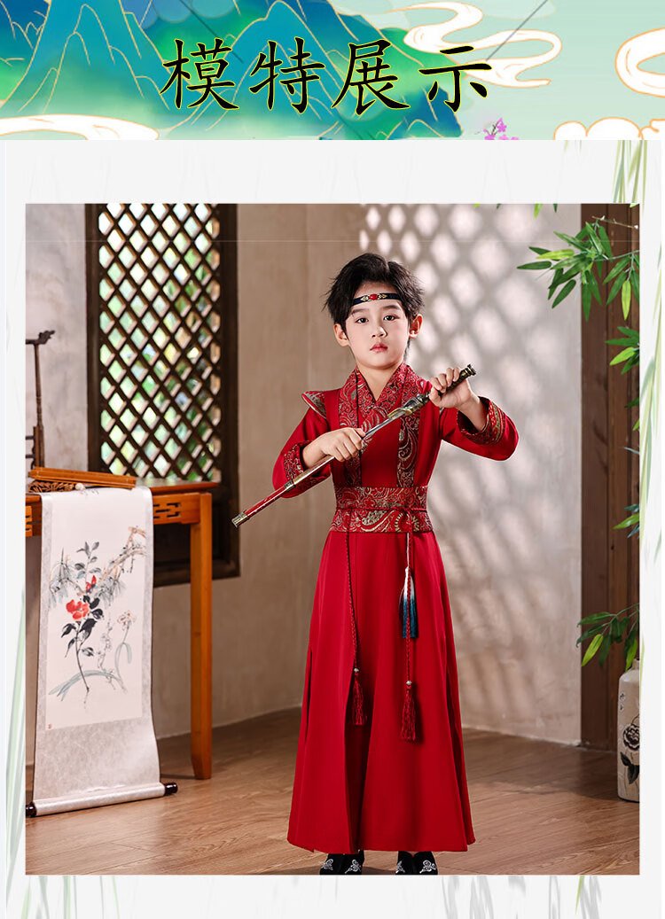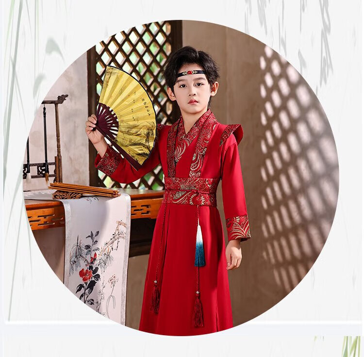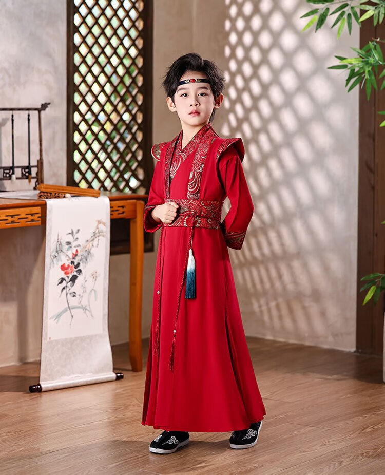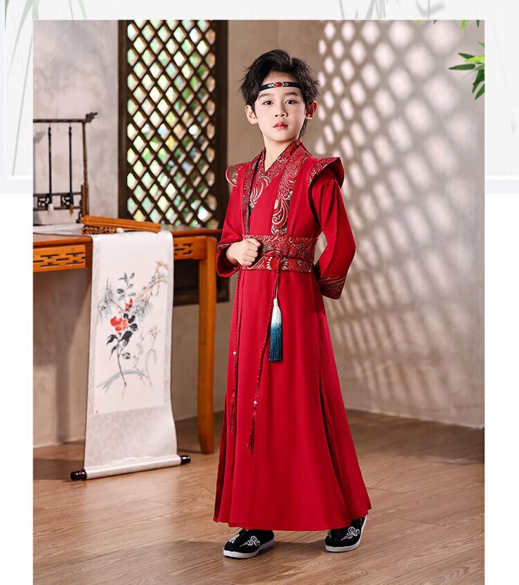 Little Taobao Tang suit boys Chinese style ancient style children Hanfu ancient costume Chinese school boys Mid-Autumn Festival costumes SMD05 red 130