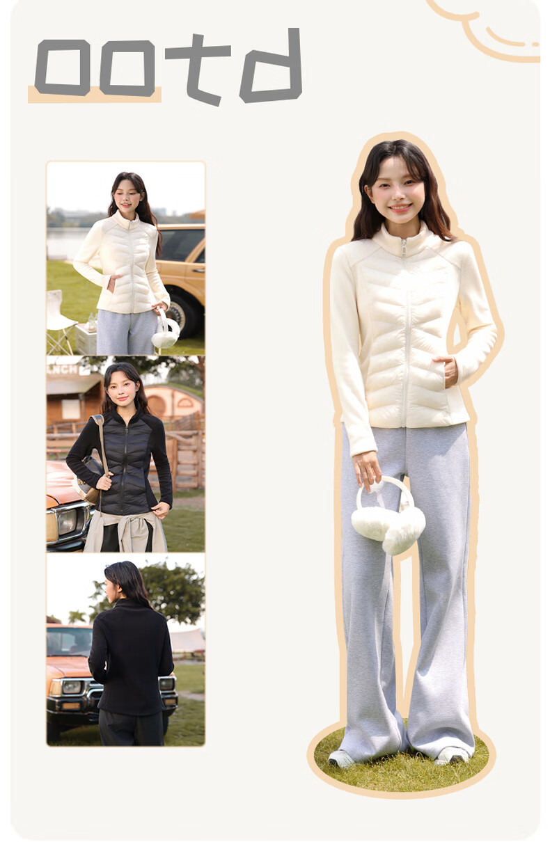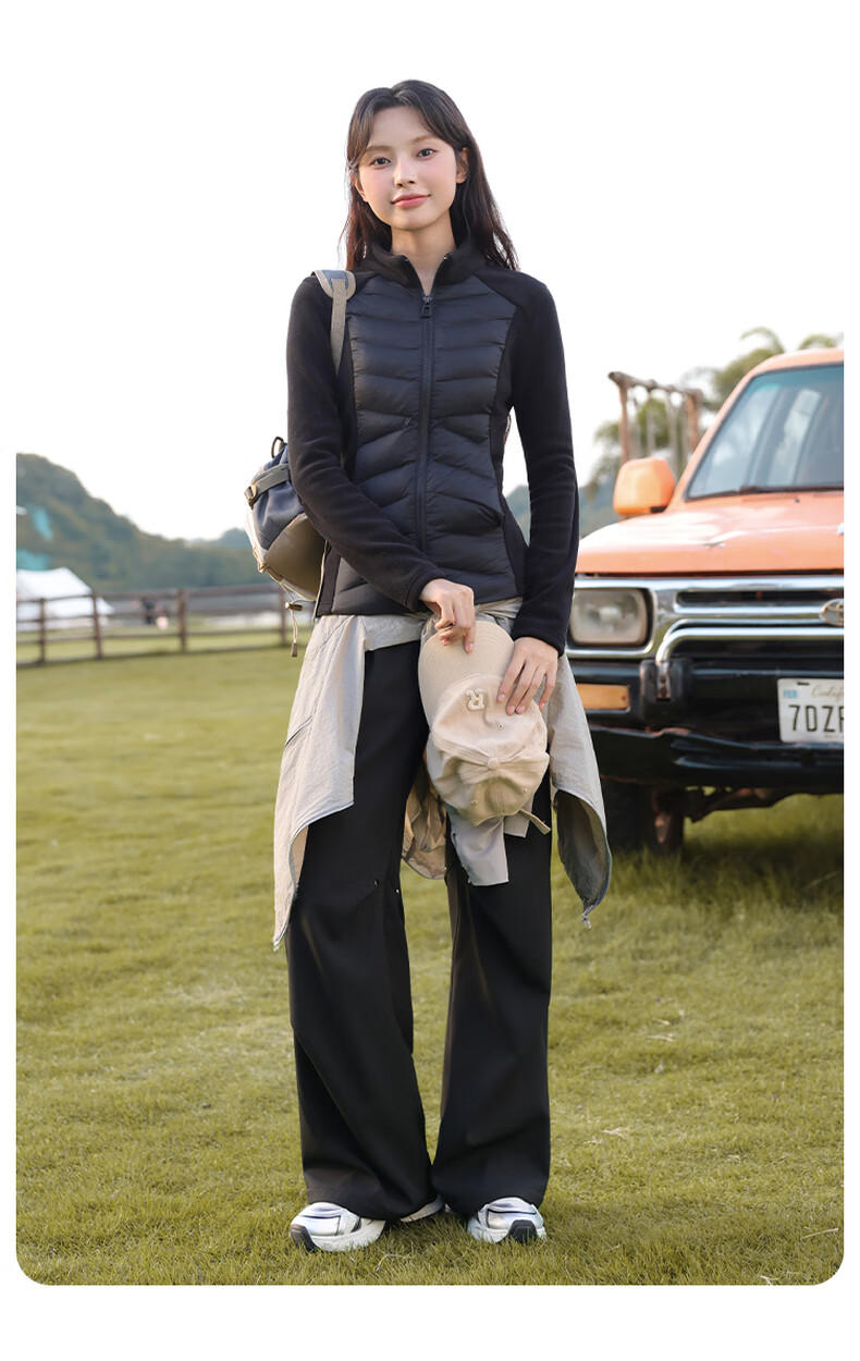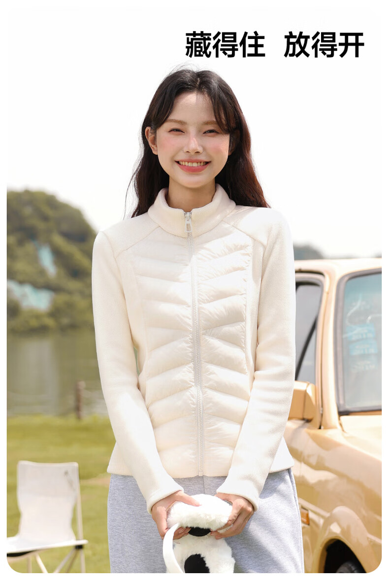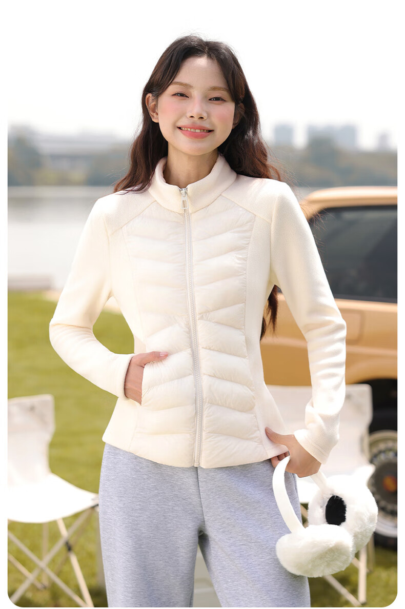 Baleno (Baleno) lightweight ribbed cotton jacket for women 2025 autumn and winter new style polar fleece slim-fitting inner stand-up collar stitching plus velvet liner jacket
