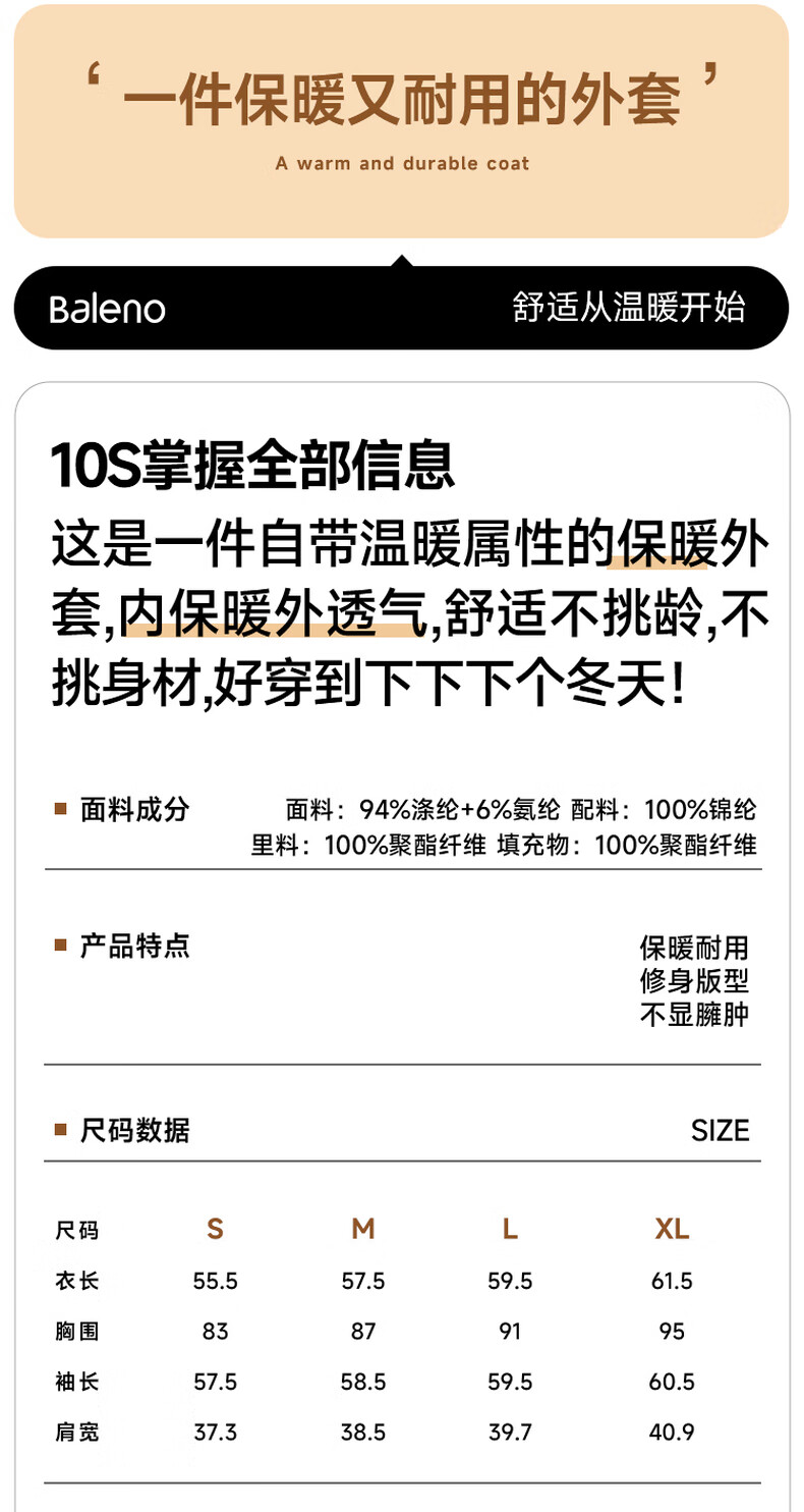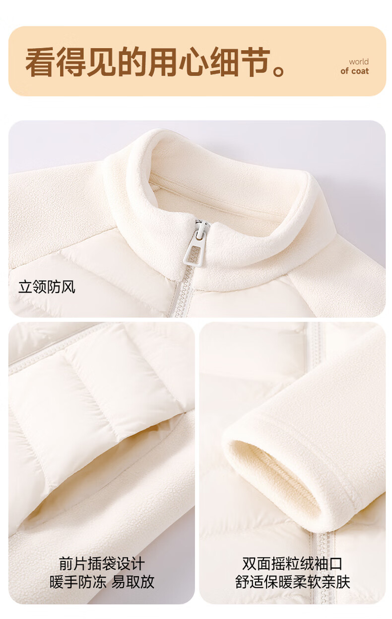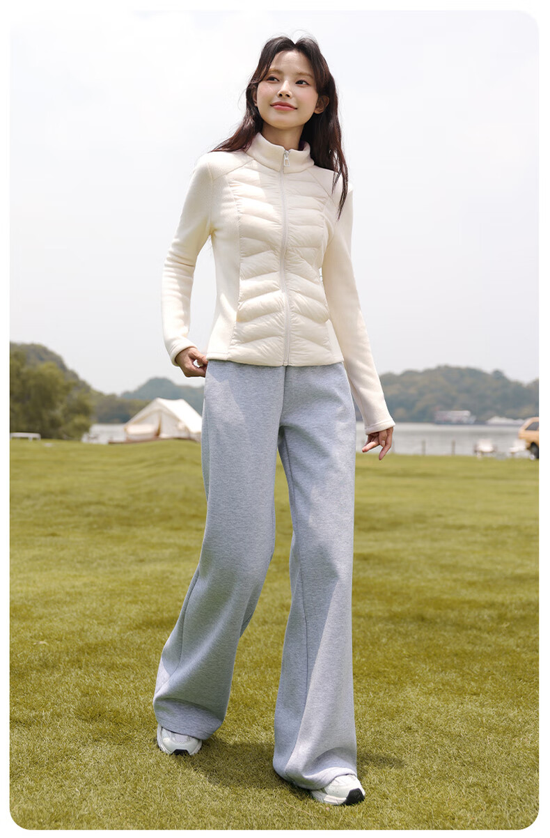 Baleno (Baleno) lightweight ribbed cotton jacket for women 2025 autumn and winter new style polar fleece slim-fitting inner stand-up collar stitching plus velvet liner jacket