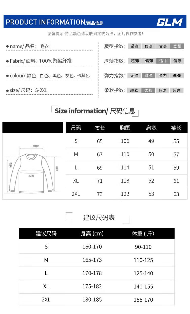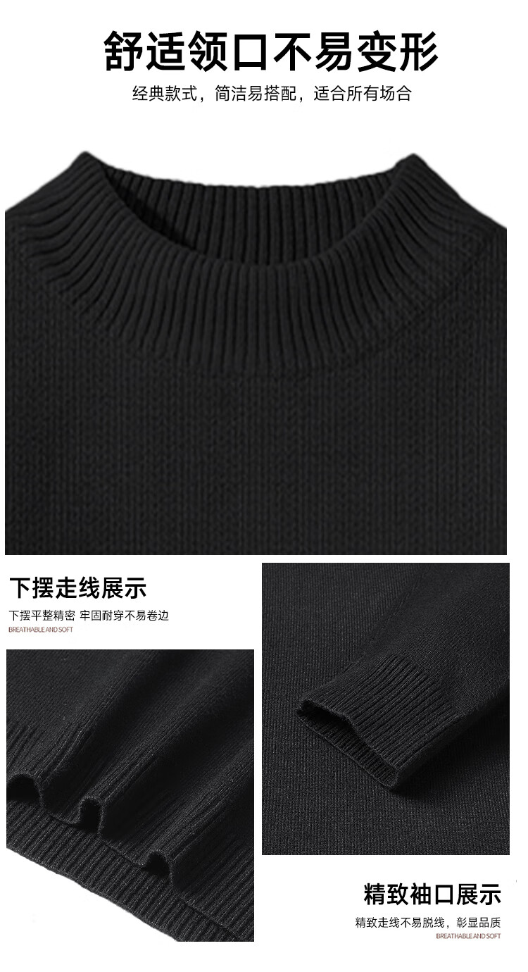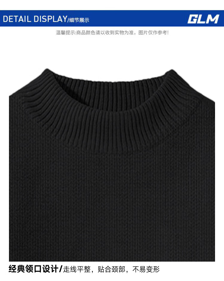 GLM crew neck sweater men's knitted sweater autumn and winter trend fashion casual all-match solid color warm men's bottoming shirt