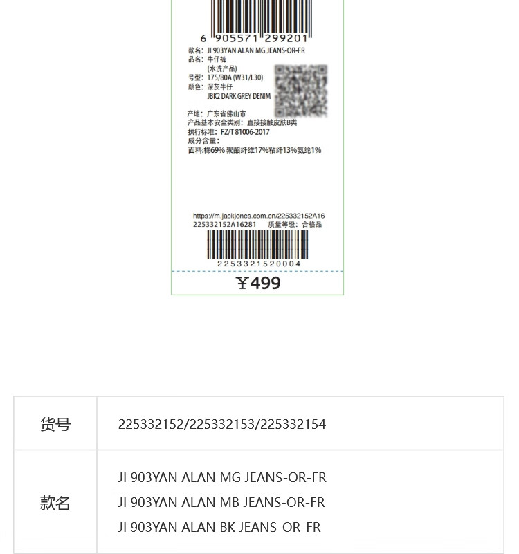 JACK&JONES autumn new fashion trend versatile casual high elastic cool straight men's jeans 225332153