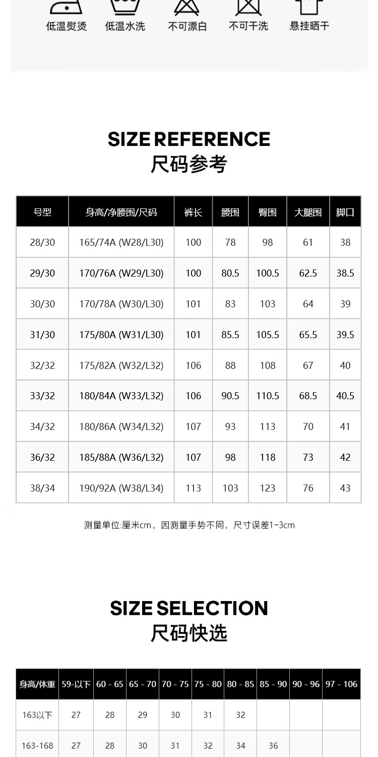 USA(inch) 28-30 30-32 32-34 34-38 38-42