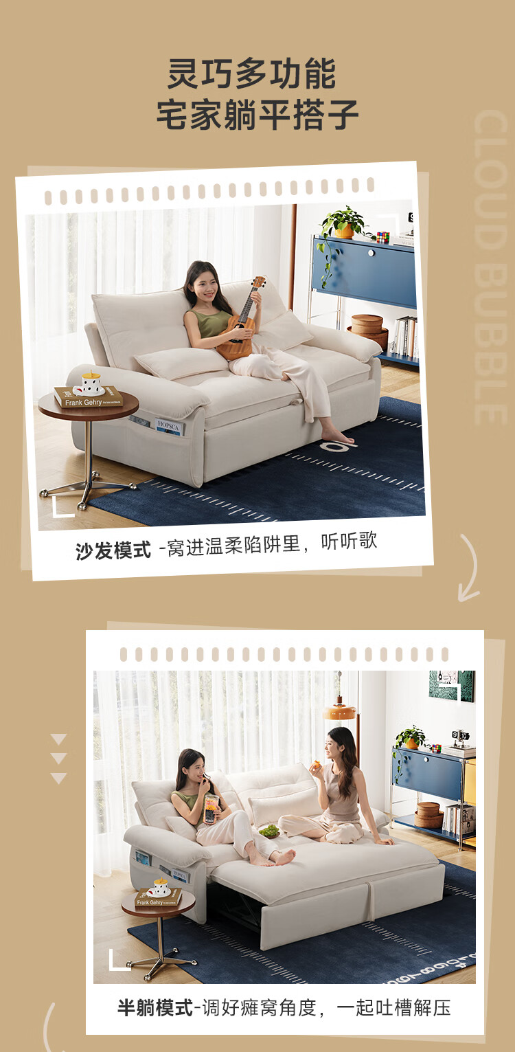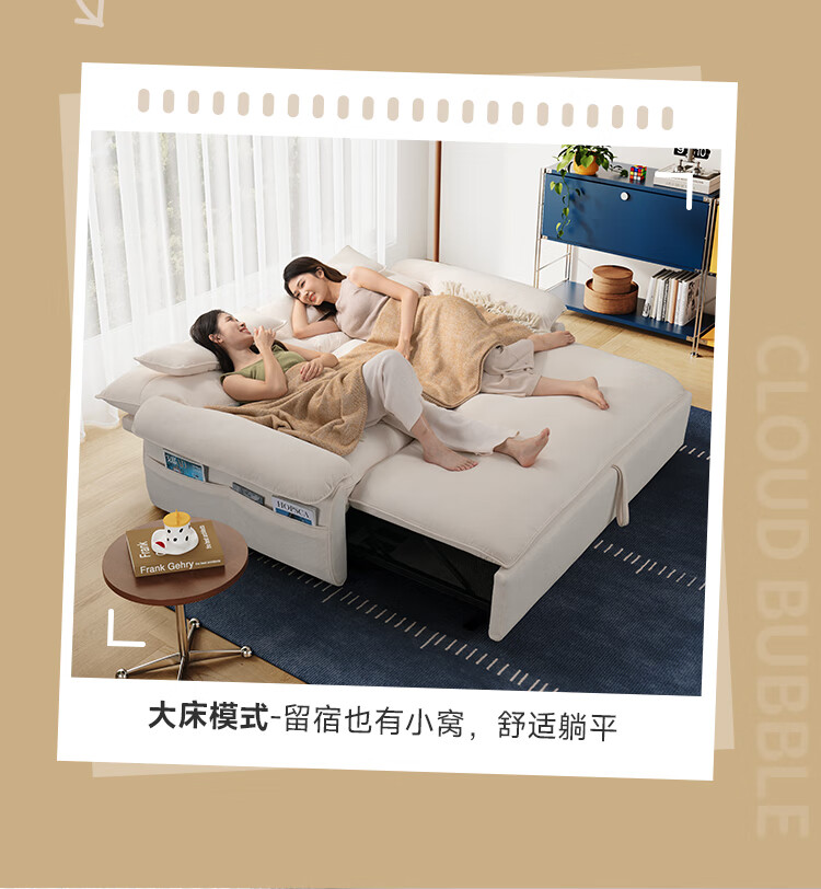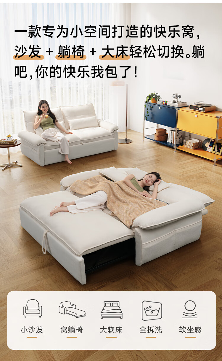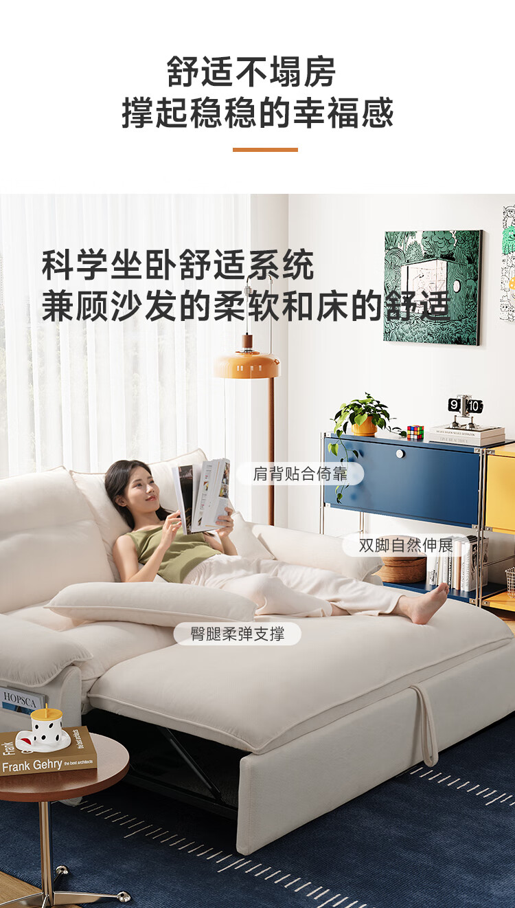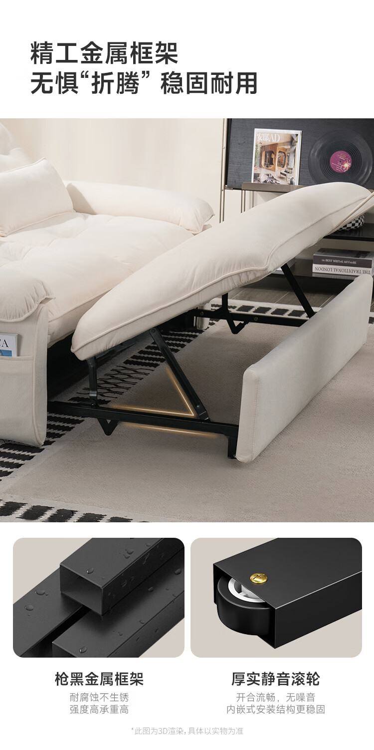 CHEERS removable and washable sofa bed folding all-in-one dual-purpose small apartment living room study sofa white moonlight 6325 1.61m