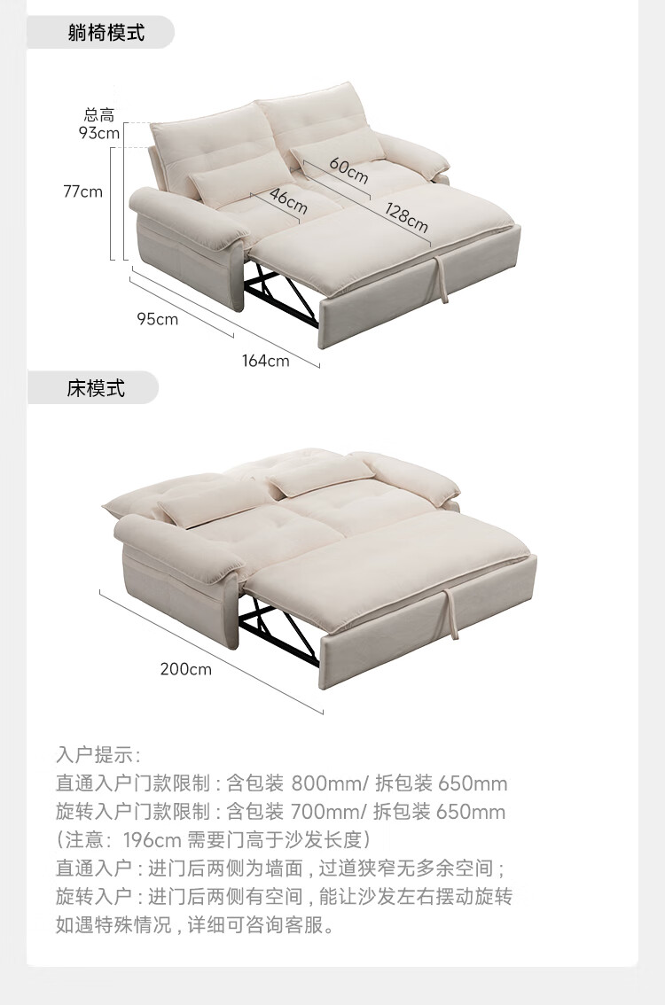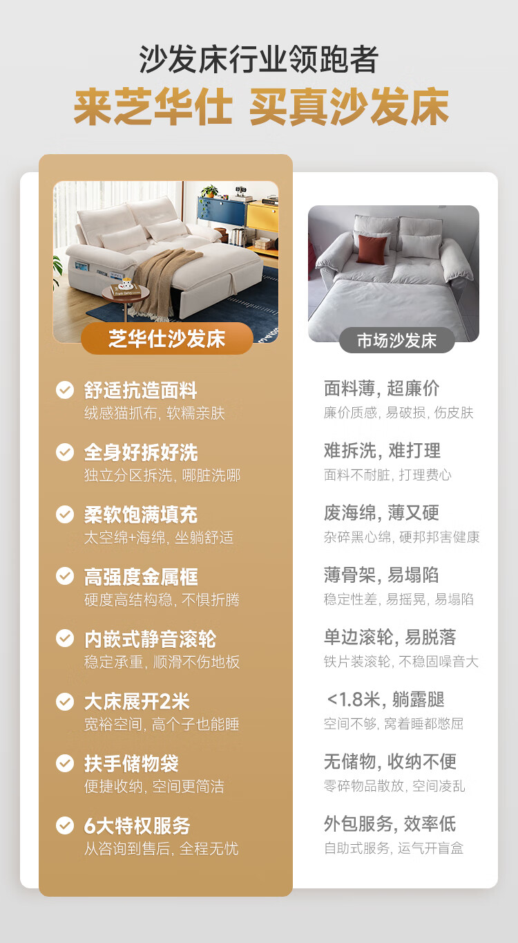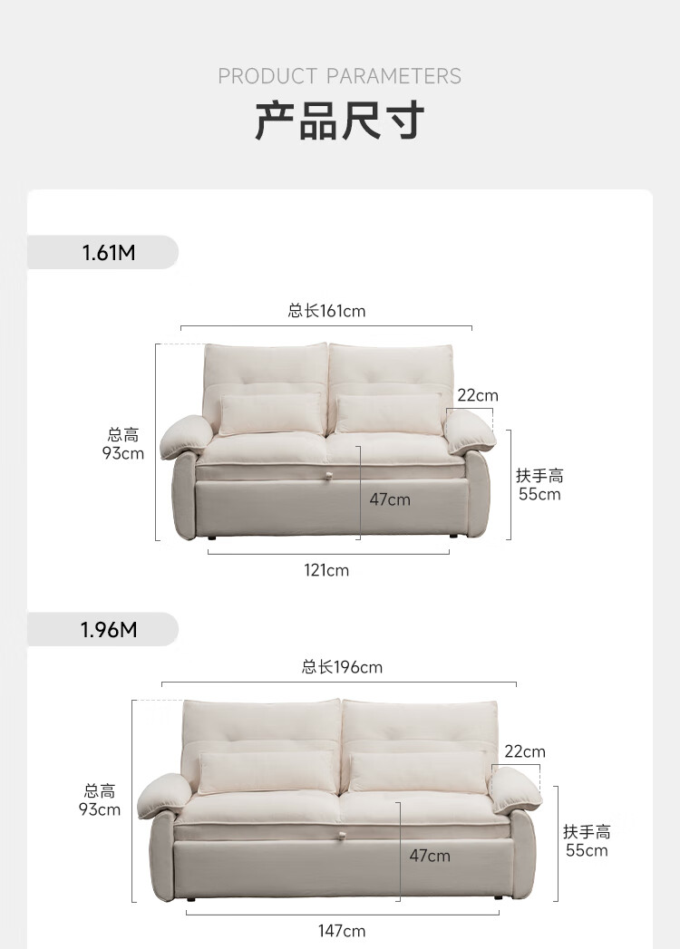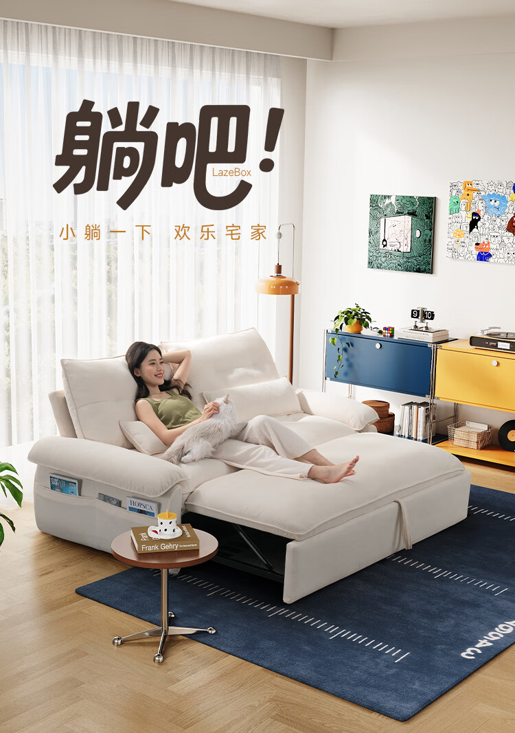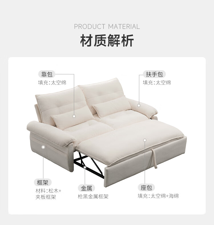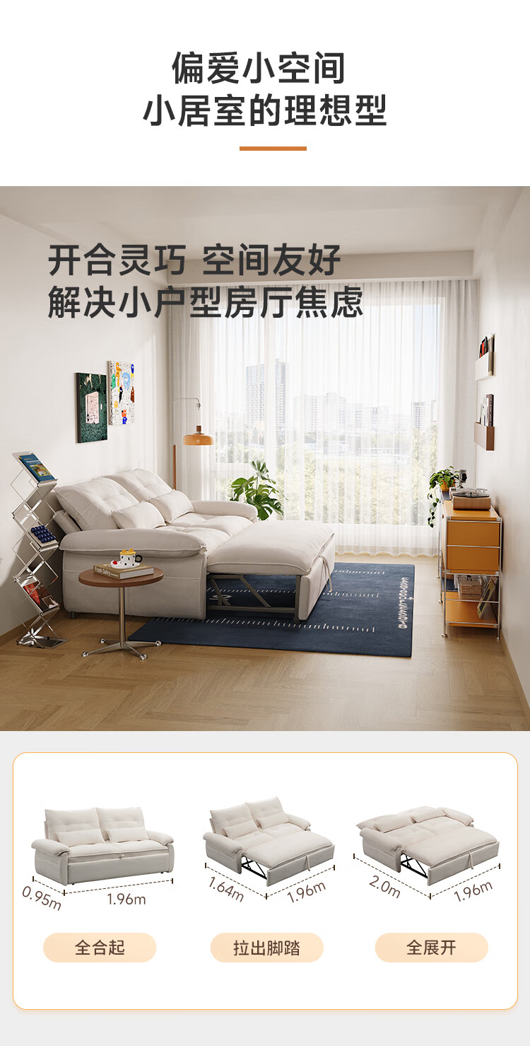 CHEERS removable and washable sofa bed folding all-in-one dual-purpose small apartment living room study sofa white moonlight 6325 1.61m