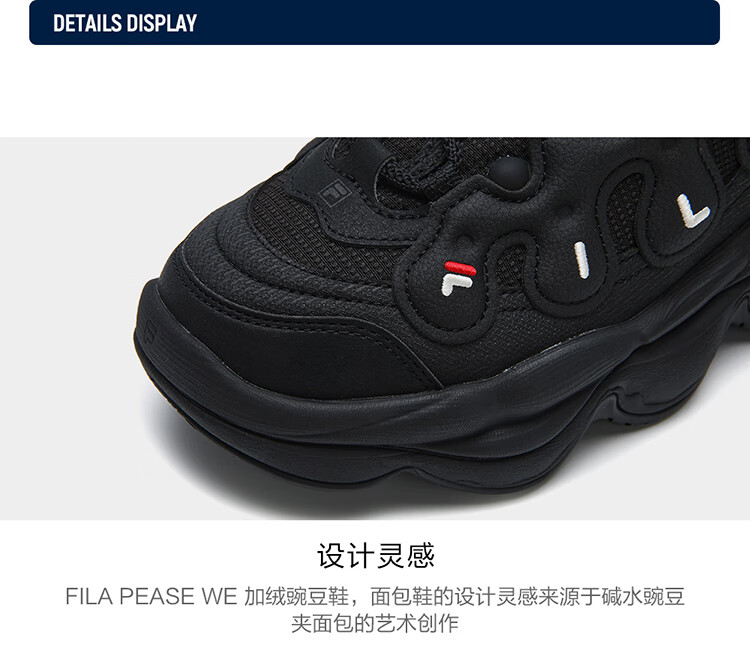 FILA official women's shoes pea plus velvet shoes dad shoes 2025 winter casual thick-soled sports shoes