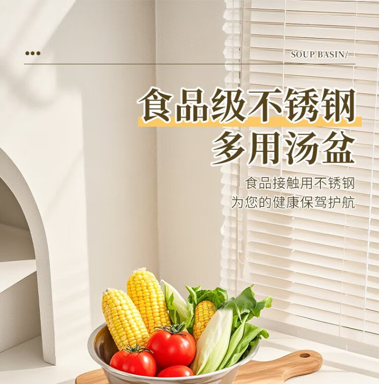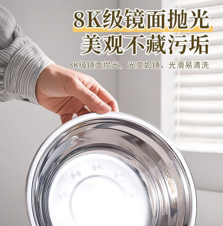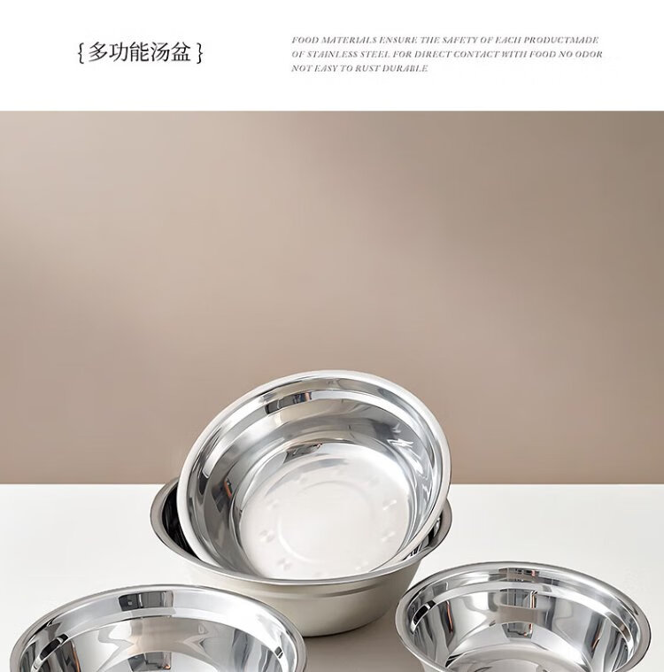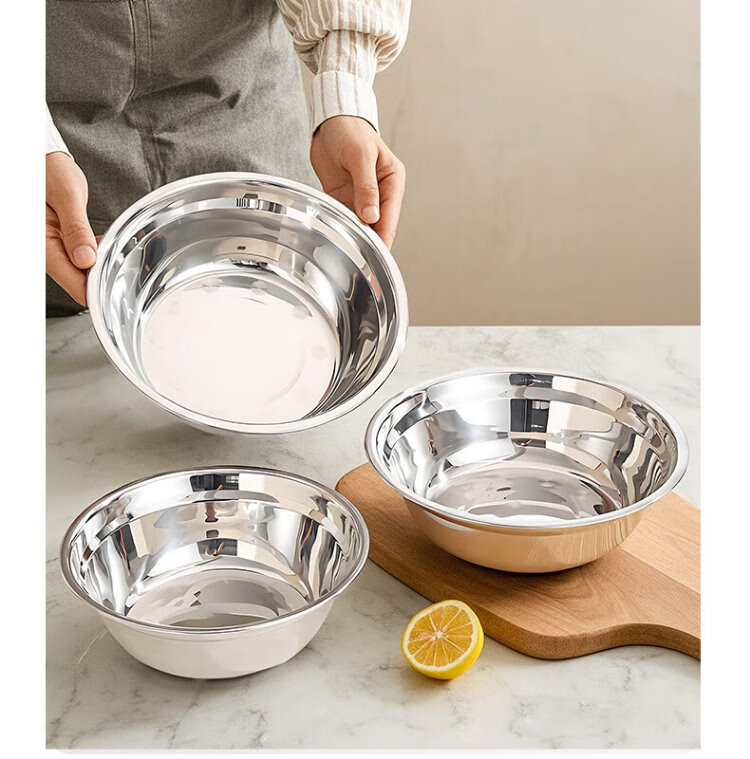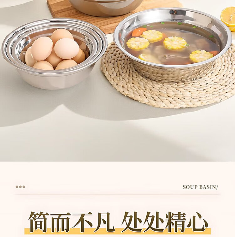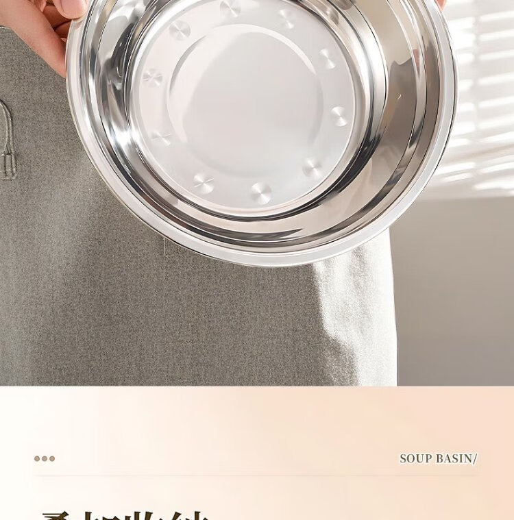 Xingfang stainless steel basin thickened flat bottom soup basin kitchen egg beating and basin washing vegetable baking basin 26 cm