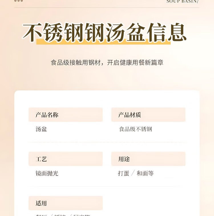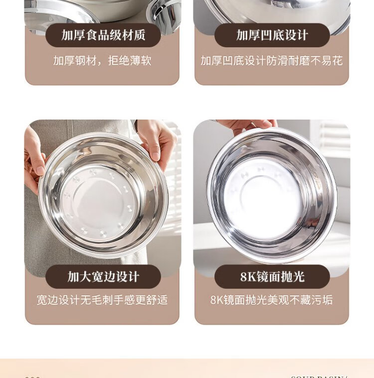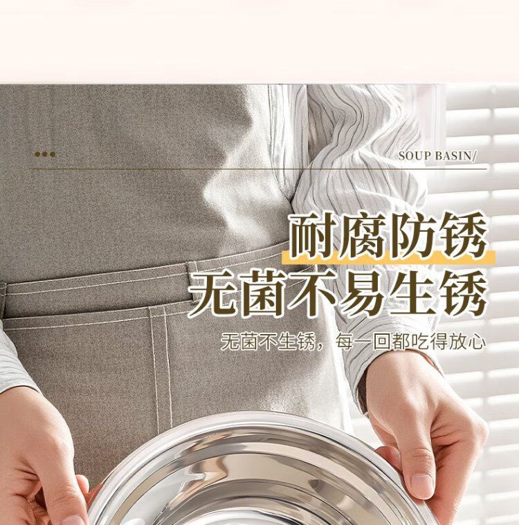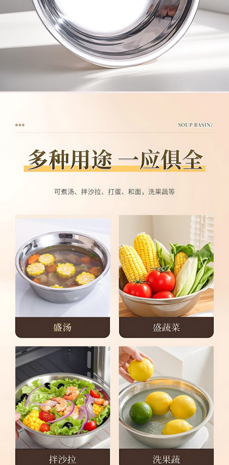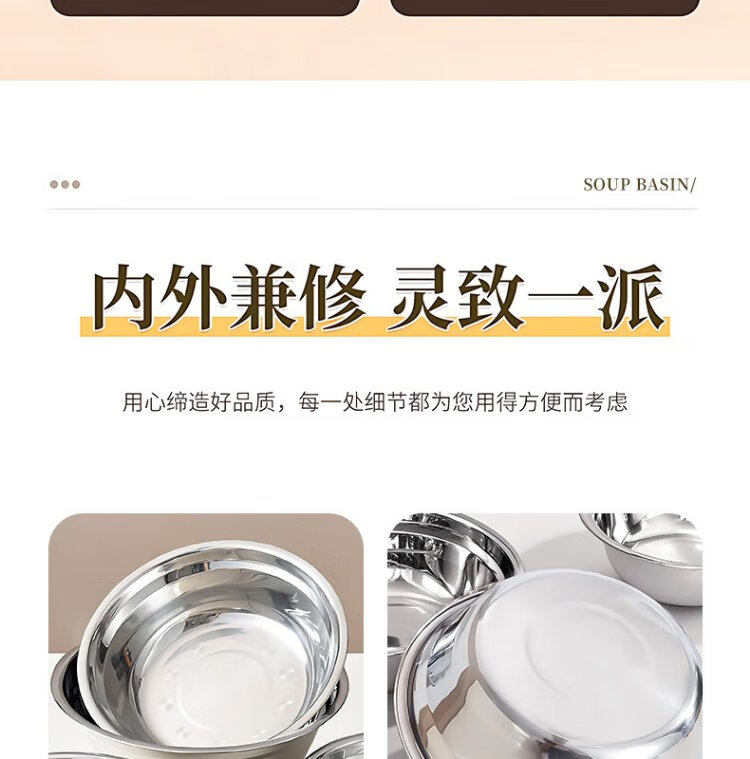 Xingfang stainless steel basin thickened flat bottom soup basin kitchen egg beating and basin washing vegetable baking basin 26 cm